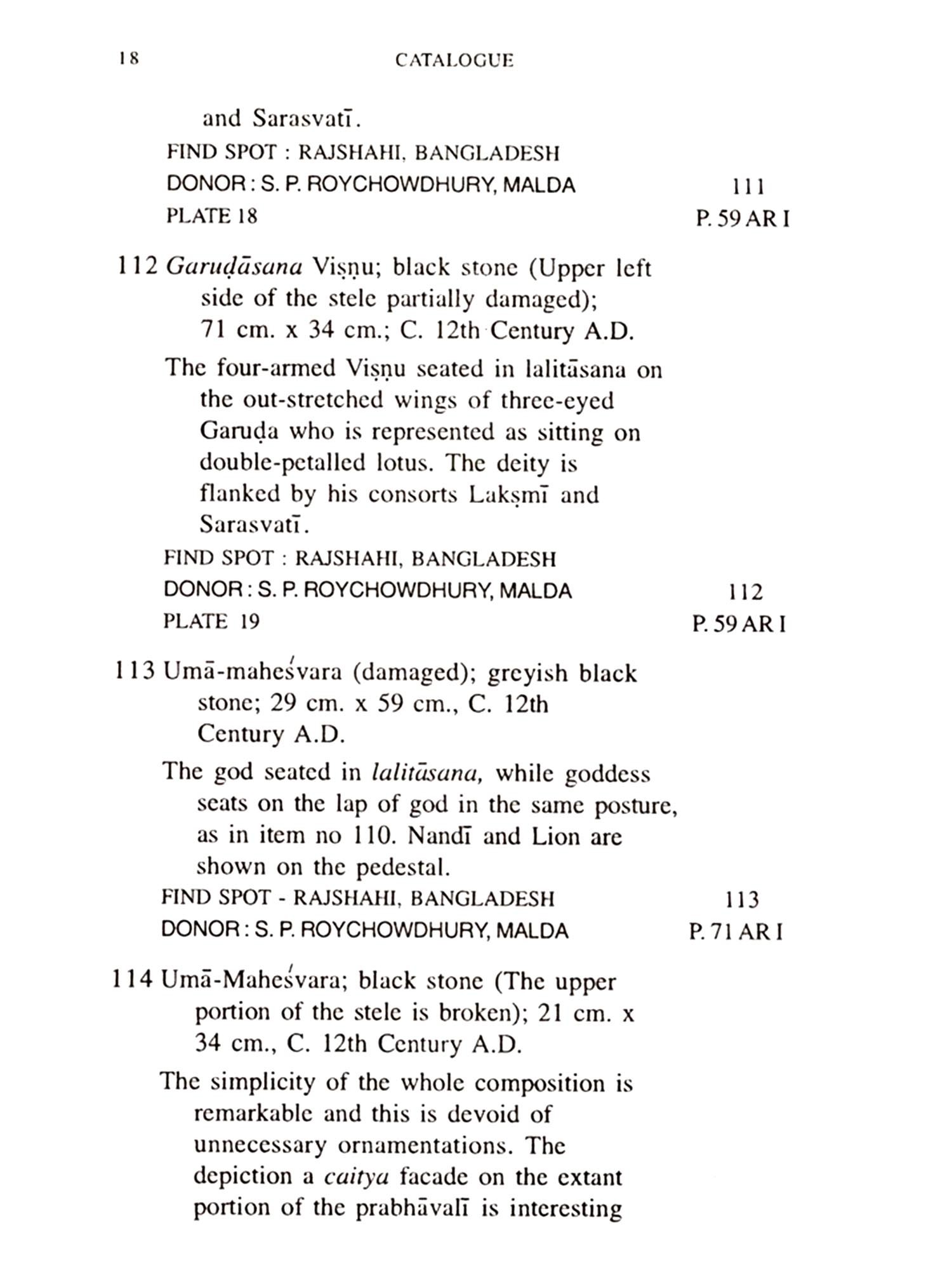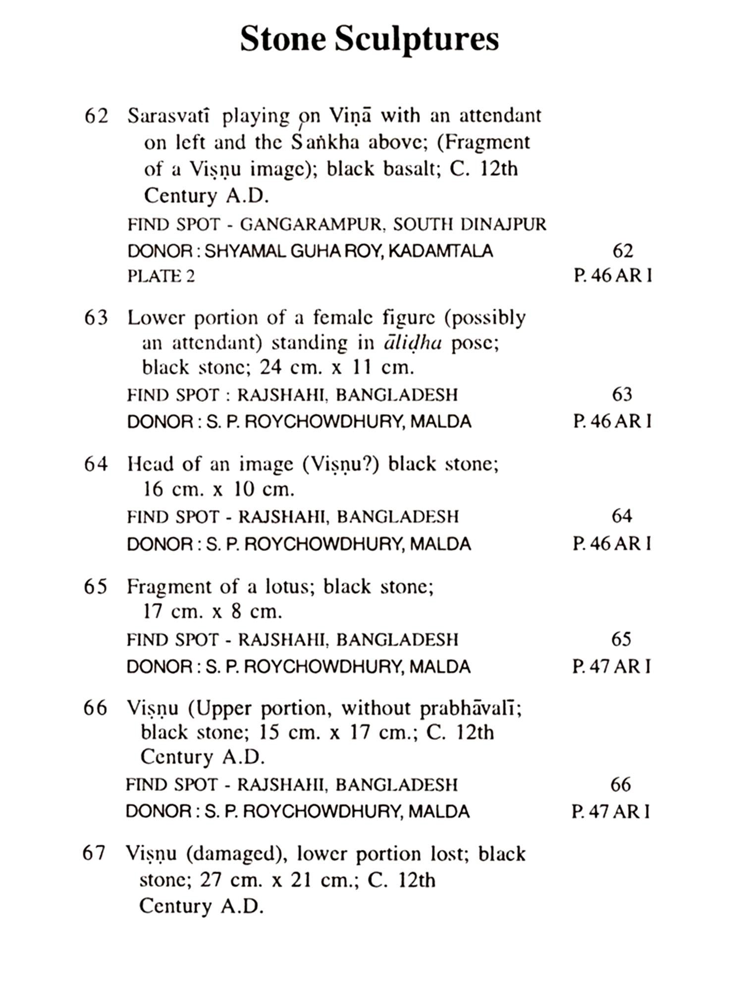 The Catalogue, Part 1 of the Akshaya Kumar Maitreya Museum North Bengal University was published in 1981. Since then a large number finds have been acquired by the Museum, the most outstanding of these have come from one generous donor Mr. Santipriya Roychowdhury of Malda. This has necessitated the publication of a new Catalogue, i.e. Catalogue, Part II from the Museum. I am beholden to the Museum authority for entrusting me the task of preparing the Catalogue of Sculptures and related materials acquired by the Museum so far.
