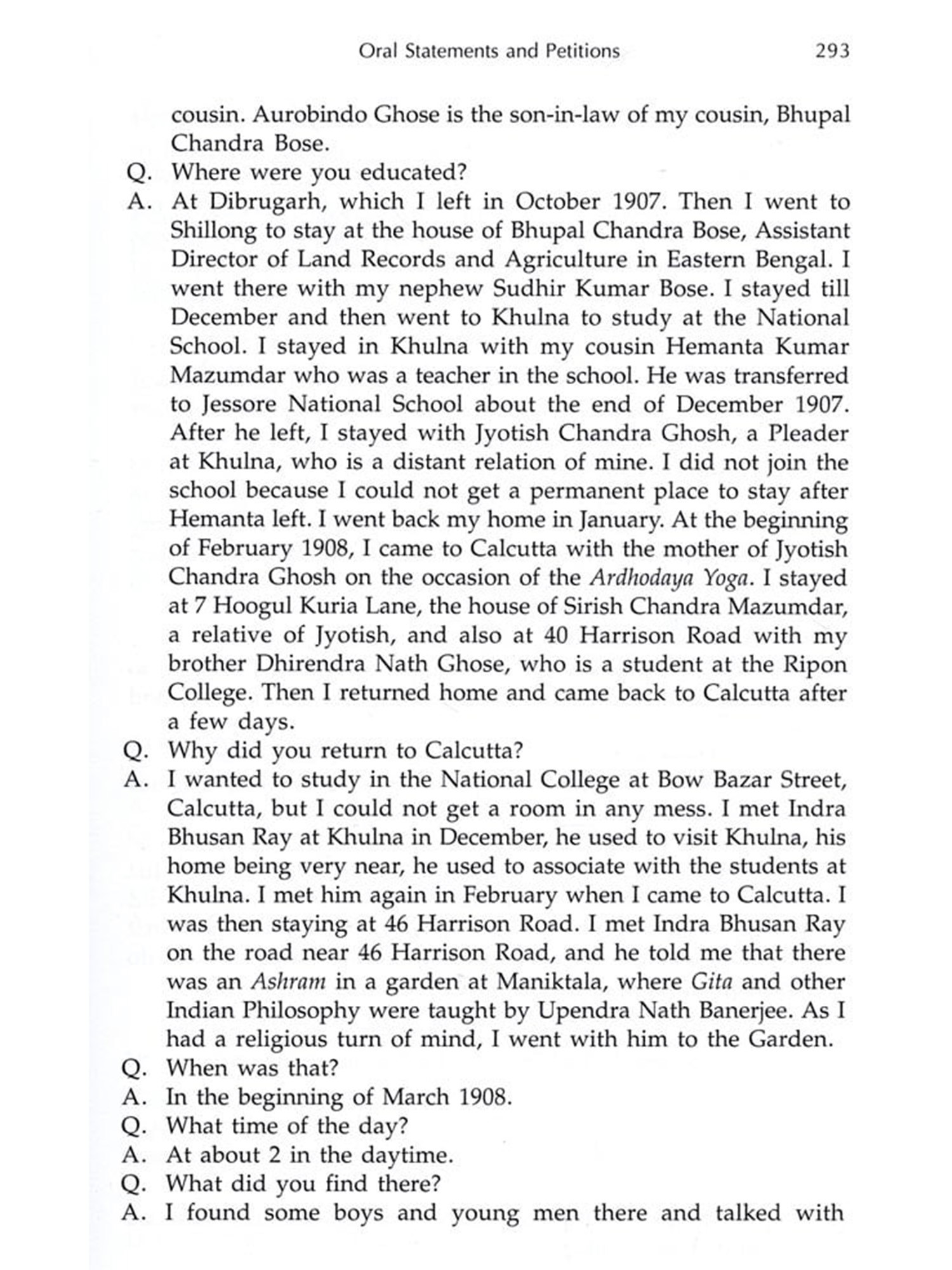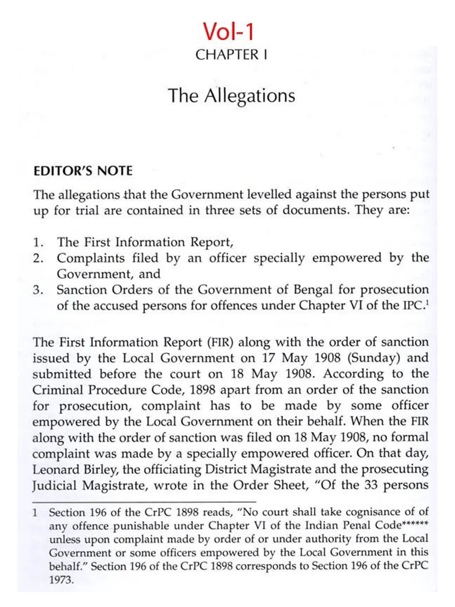 The museum and the library of the Sri Aurobindo Institute of Culture, Tollygunge, Kolkata have a plethora of unauthenticated copies of the Trial records which serve as an excellent back-up, and the library has a good collection of literature on pre-independence revolutionary movement. I took the help of both.