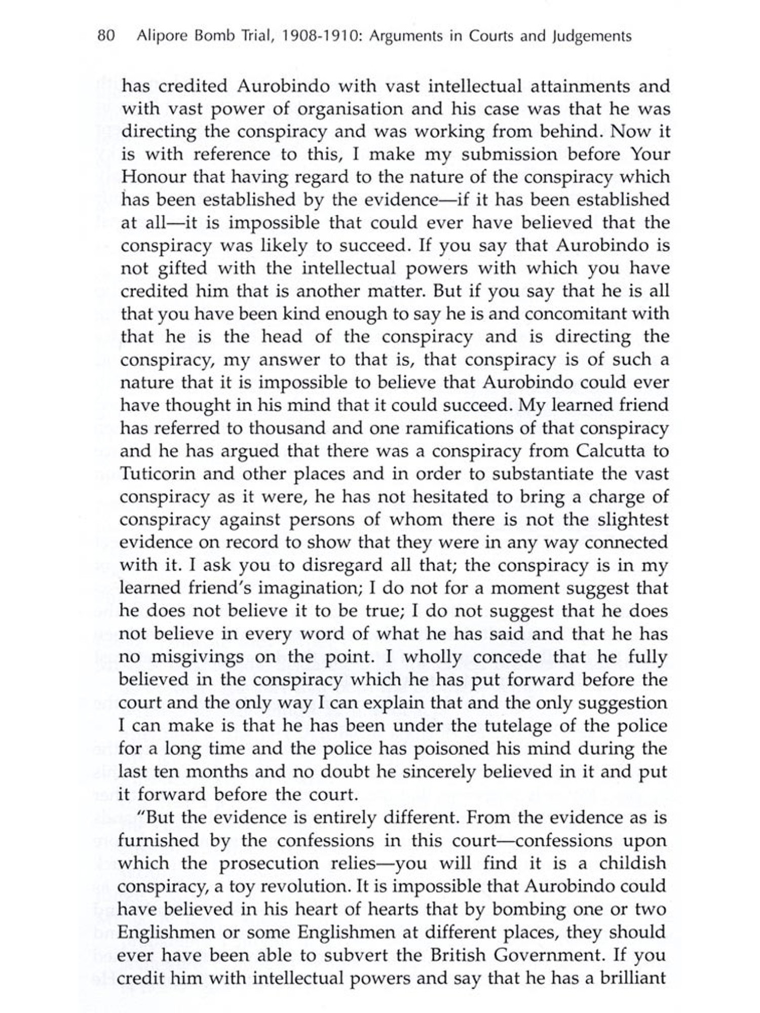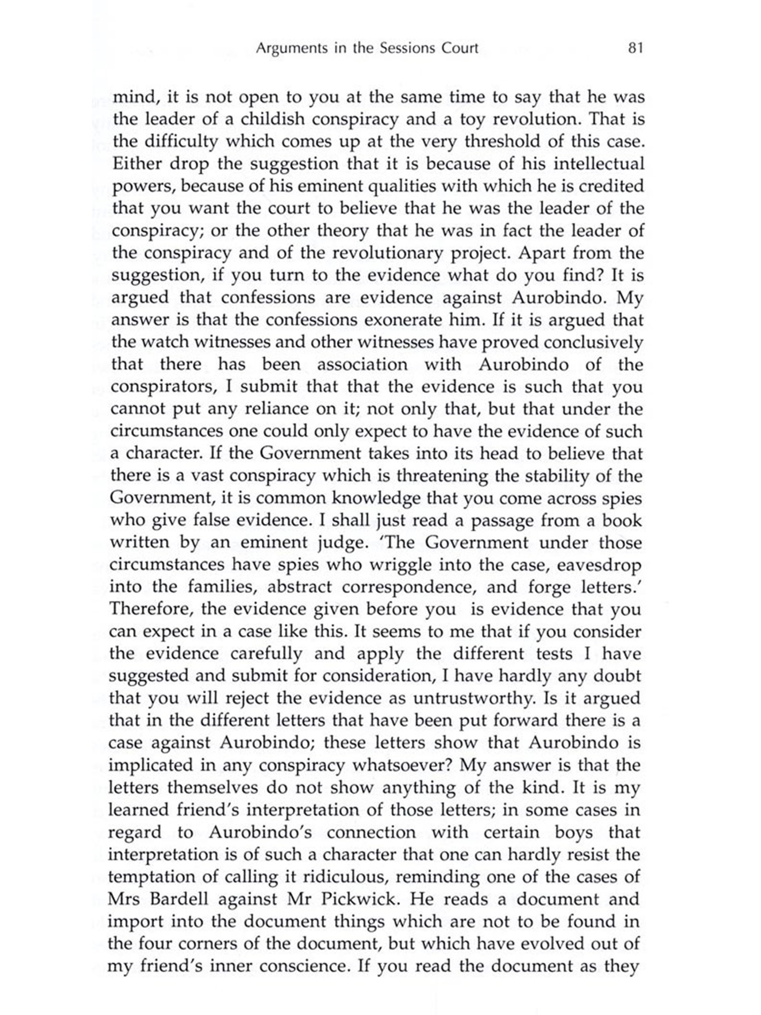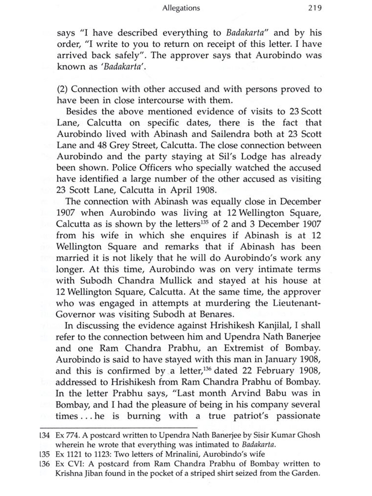 As a matter of fact, I had gone through some of the authenticated copies of the documents produced in course of the Trial among the records of the Intelligence Branch, West Bengal, in early 1990's when I was compiling and editing the secret reports and notes. A few of the documents such as letters of Sri Aurobindo, Bal Gangadhar Tilak and other contemporary leaders and paper clippings, reports on Aurobindo were printed in Volume IV (pp.520-749) of Terrorism in Bengal, the six-volume compilation, published in 1995. Eventually, Prof Mazumdar accepted the suggestion of a comprehensive compilation and editing of the records.