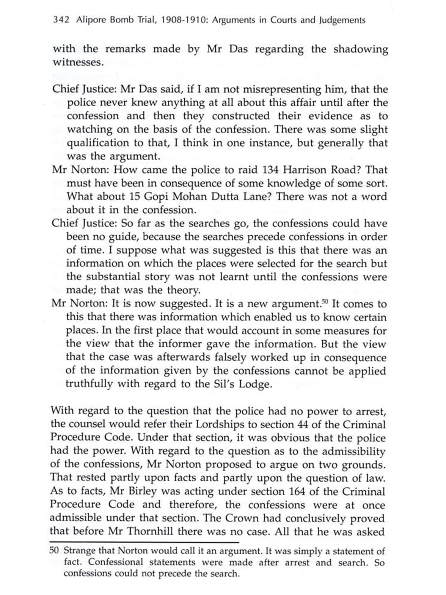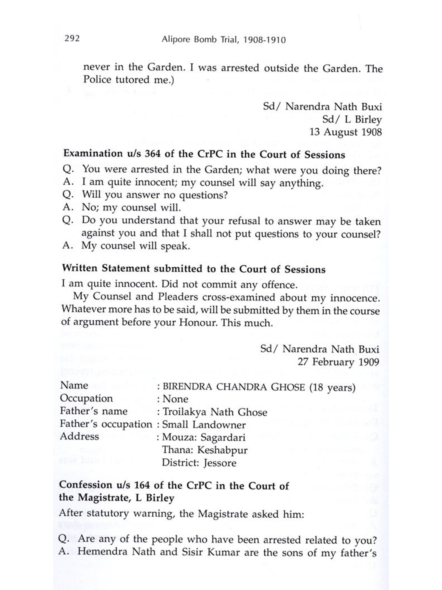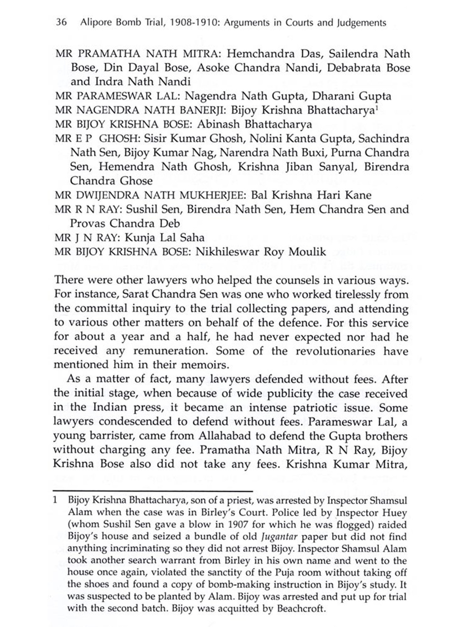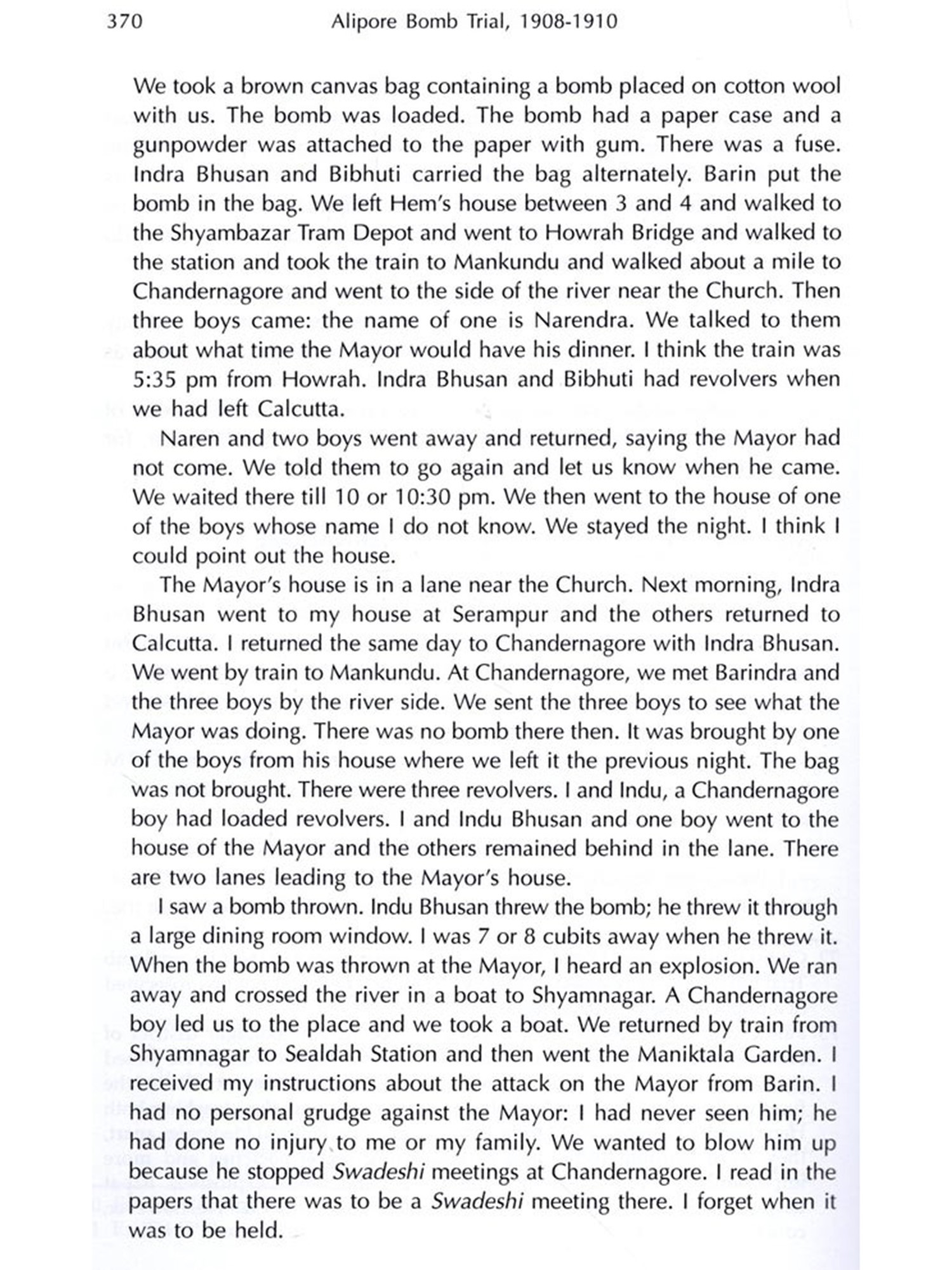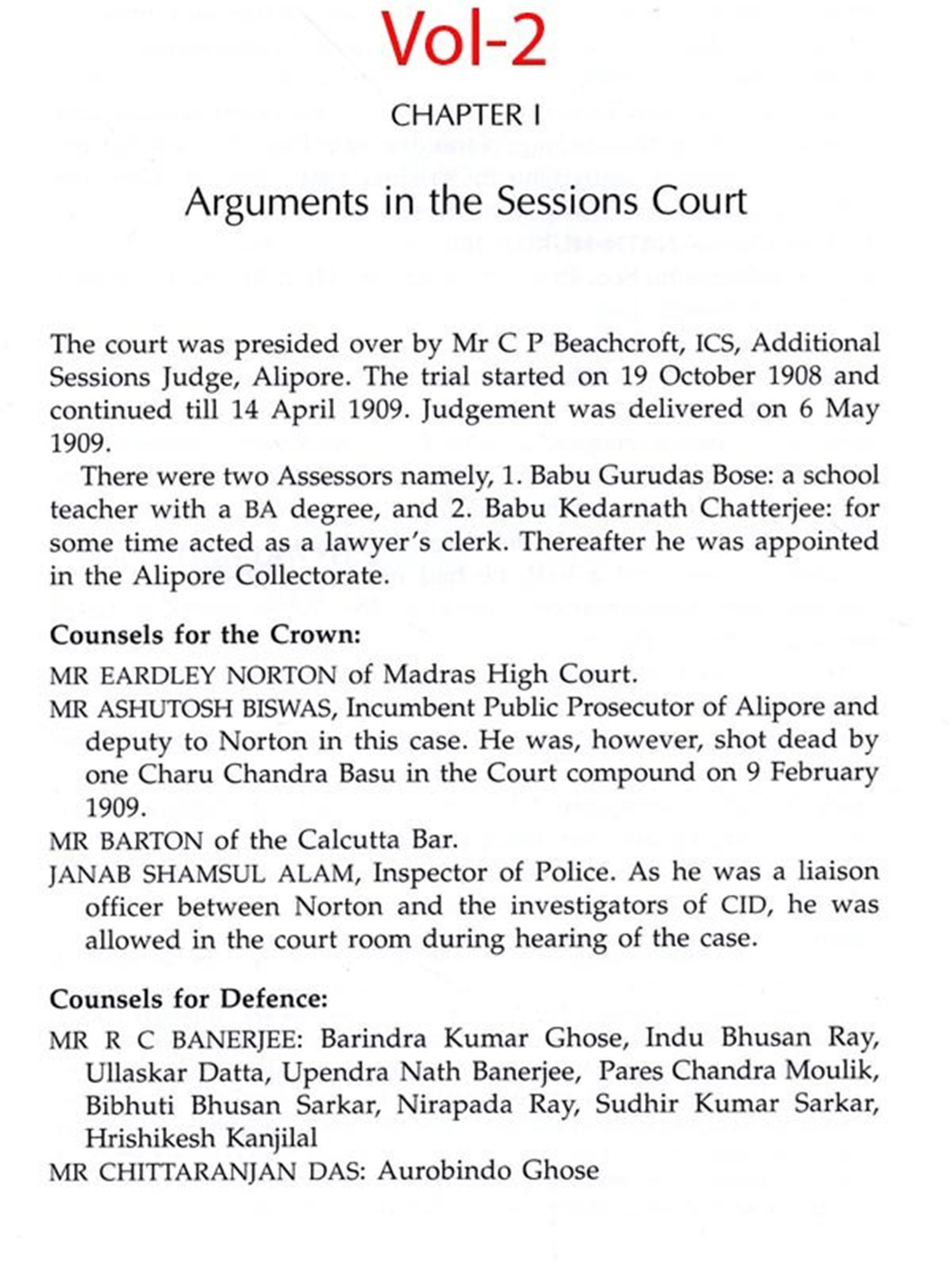 One day in December 2007, at Visva-Bharati, Santiniketan Prof Swapan Mazumdar, then Director, Rabindra Bhavan, asked me if I could edit the judgements of the Alipore Bomb Trial, 1908-1910, as Sri Aurobindo Institute of Culture, Kolkata, would like to publish them on the occasion of the centenary of the Trial. They would help me with the copies of the judgements and some other supporting documents. I was willing to do the job; but I told Prof Mazumdar that while the judgements in this case, as also in other such cases, are important as the final outcome of the Trial, but their historical value is limited, as they focus only on proving the culpability with the help of assorted facts sanitised by the admissibility provisions of the Evidence Act. The thoughts and ideas which inspired the acts of violence leading to the Trial were patriotism, nationalism, a pervasive spirit of self-sacrifice and above all, a strong aspiration for freedom from colonial rule. But these issues were not relevant during any trial in a colonial court. Therefore, instead of the judgements alone if all the materials, letters, documents, booklets, leaflets both in manuscript and printed copies etc found in course of police actions like search and seizure, and verbal statements generated by the administrative and legal processes are carefully shifted, compiled and analysed, then the spirit of the time would be at least partially captured and a much truer picture of the initial stage of the revolutionary terrorist movement in India might emerge.