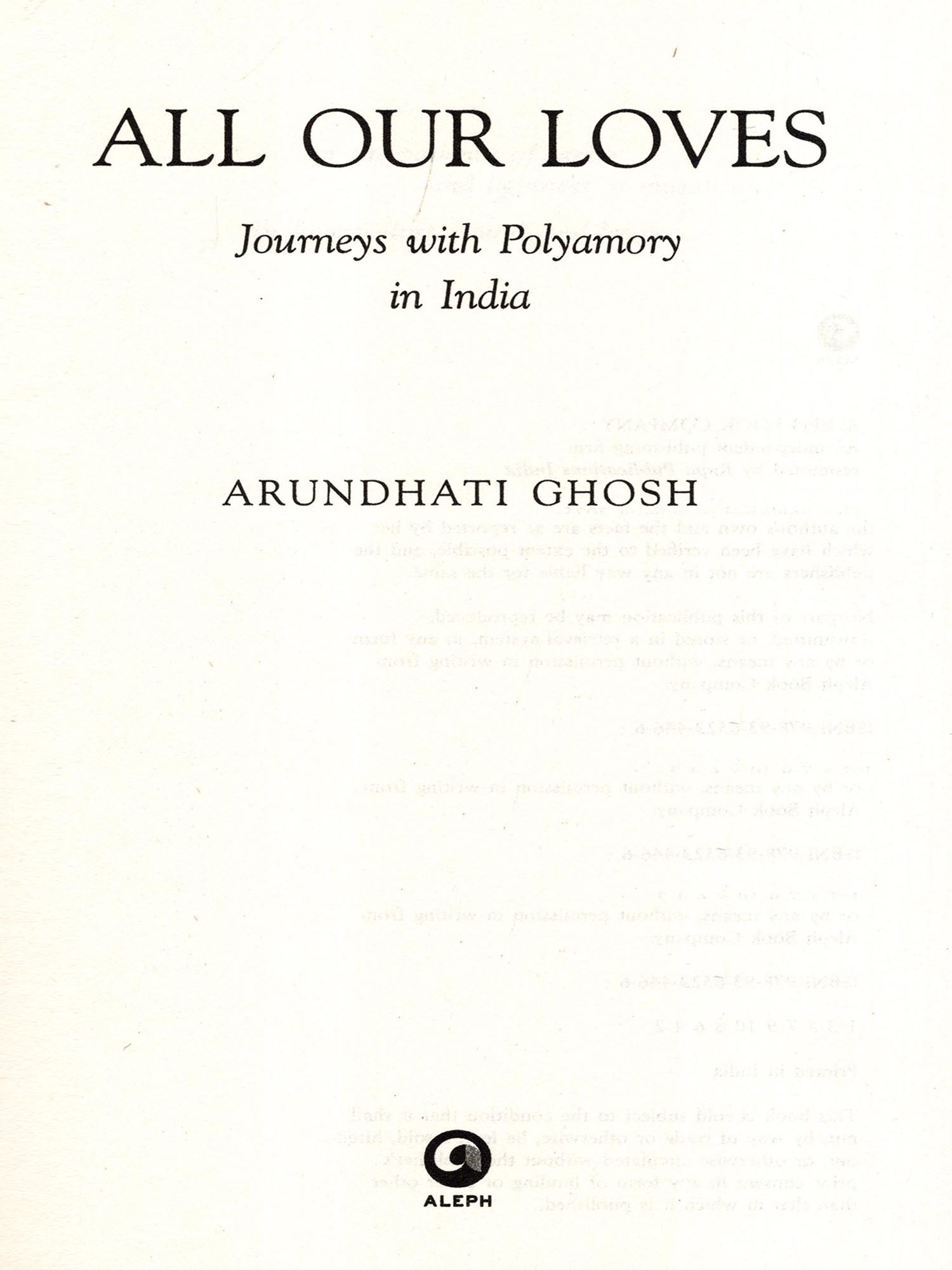 All Our Loves: Journeys with Polyamory in India is an eye-opening book on polyamory-the practice of being in love with or without sexual intimacies with more than one person simultaneously, with the consent of all-in India. For anyone who has ever dreamed of love, sex, and companionship beyond the limits of traditional monogamy, this groundbreaking guide navigates the infinite possibilities that open relationships can offer. As a practising polyamorist, Arundhati Ghosh dispels myths and throws light on the skills necessary to maintain a fulfilling and responsible polyamorous lifestyle-how to honour boundaries; how to resolve conflicts, and define relationships on their own terms; how to divide time among partners; how to foster honest intimacy; how to find community and navigate break-ups, jealousy, and living arrangements; how to practise safe sex, raise a family; and much, much more.