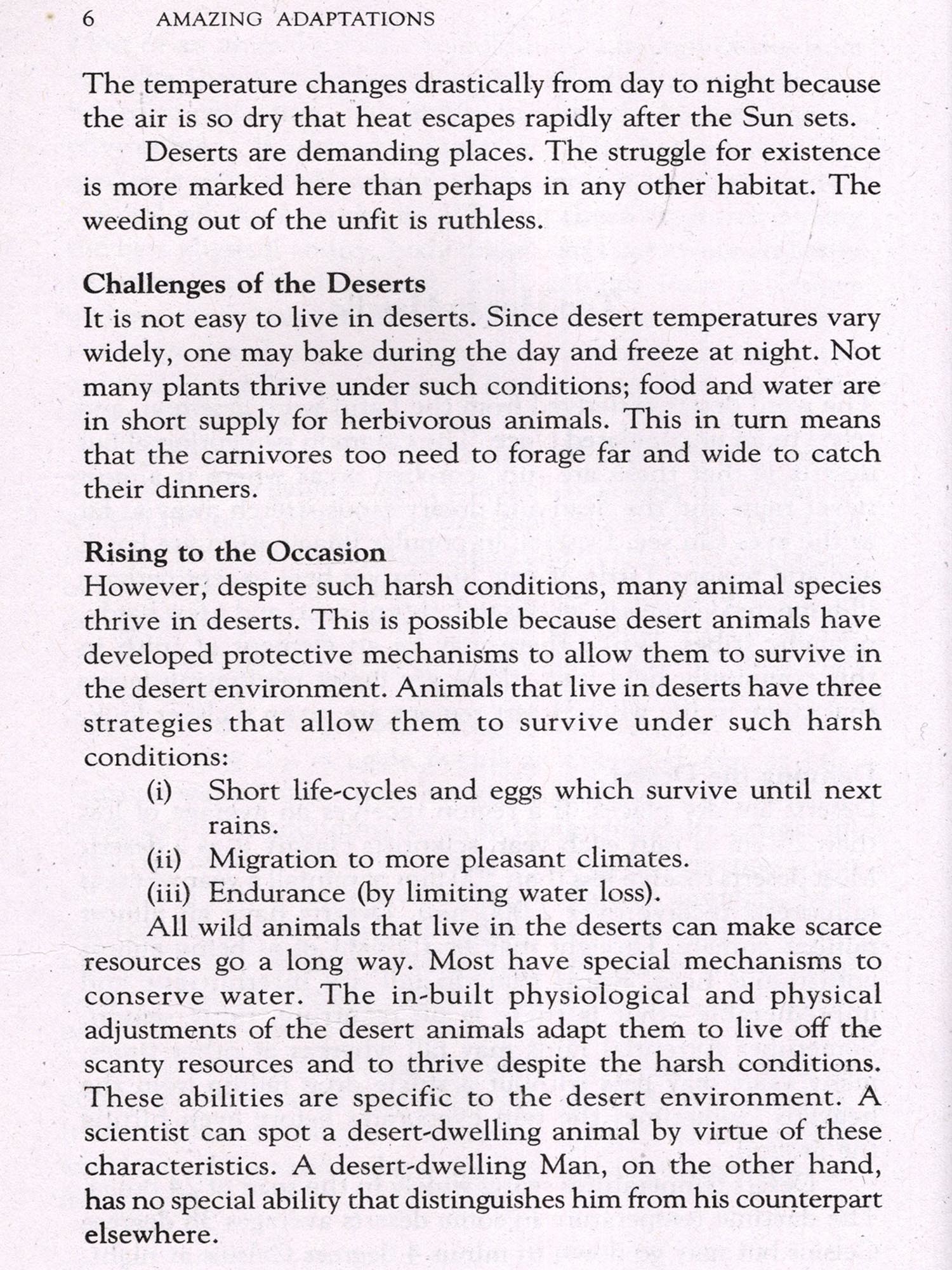 However, it is when we strip human beings of the powers that Science & Technology bestows and force them to occupy the same natural habitats that animals do; that we realise how puny we, humans, really are, and how inadequate are our survival skills. Our survival largely hinges on our ability to create artificial conditions to suit our requirements. Animals, however, possess natural gifts that allow them to adapt to the environments; and hence, survive Nature even at its harshest. If for nothing else, this should merit our admiration, grudging though it be.