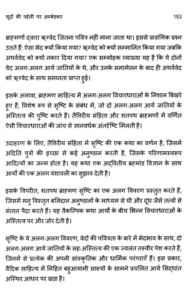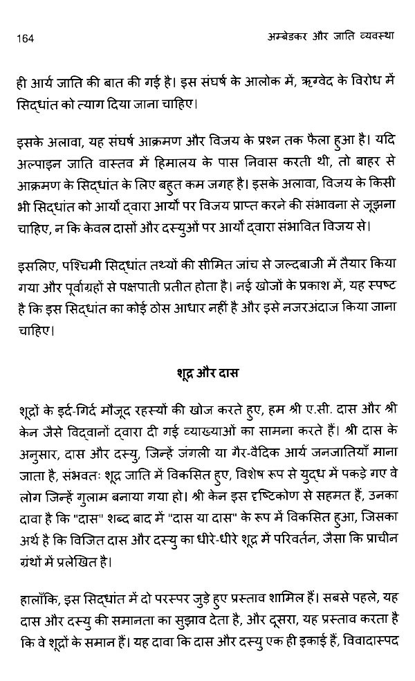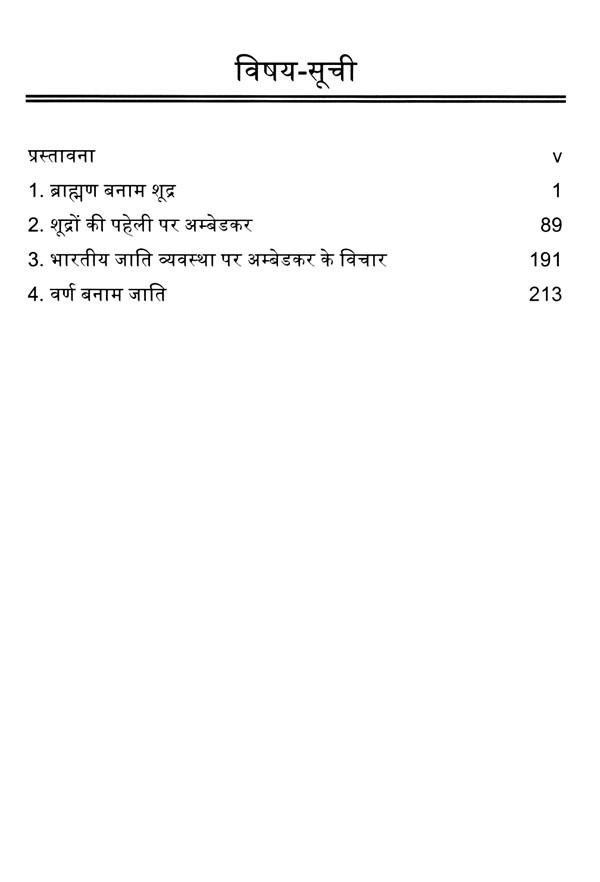 यह पुस्तक डॉ. आंबेडकर के जाति व्यवस्था पर दृष्टिकोण को समझने में मदद करती है, विशेषकर उनके विचारों के माध्यम से भारतीय समाज में जातिवाद की जटिलता और उसके सामाजिक प्रभावों को स्पष्ट करती है। इसमें ब्राह्मणों और शूद्रों के बीच के संघर्ष, आंबेडकर के जाति व्यवस्था पर दृष्टिकोण, और भारतीय समाज में जातिवाद के खिलाफ उनके संघर्ष को प्रमुखता से पेश किया गया है। पुस्तक में जाति व्यवस्था की संरचना, उसकी भूमिका और आंबेडकर द्वारा इसे समाप्त करने के लिए किए गए संघर्ष की गहरी चर्चा की गई है।