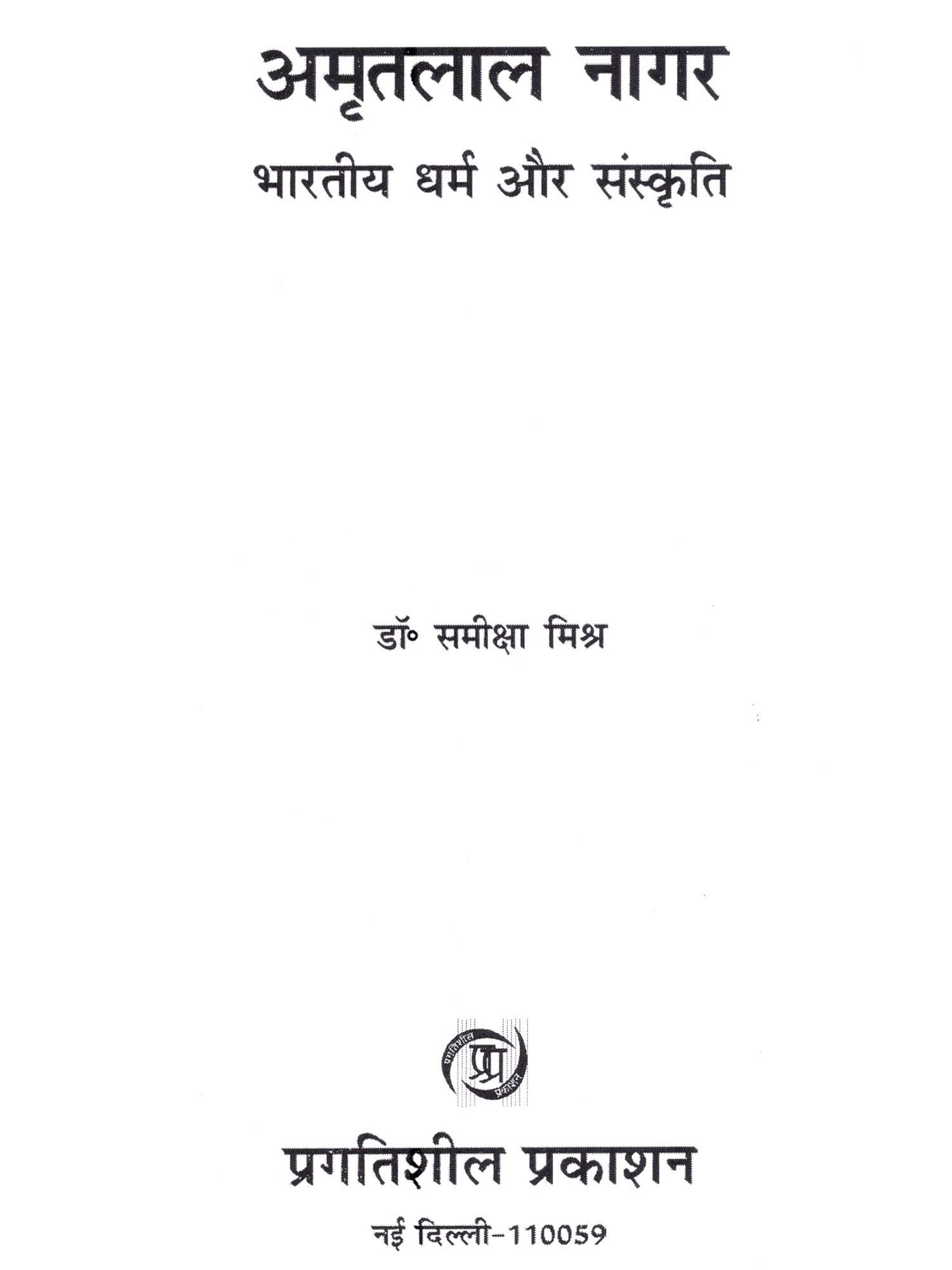 अमृतलाल नागर (भारतीय धर्म और संस्कृति): Amritlal Nagar (Bhartiya Dharm aur Sanskriti)