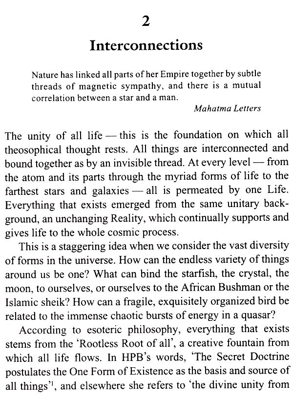 Therefore, I have organized this book around some major themes, overarching concepts, that keep reappearing, particularly in The Secret Doctrine. I have tried to explain these grand ideas and where possible to back them up with modern know-ledge, especially science. Though the principles themselves are not dependent on any new developments and stand as eternal truths to those who know, it is still helpful to observe them where they coincide with modern thought.