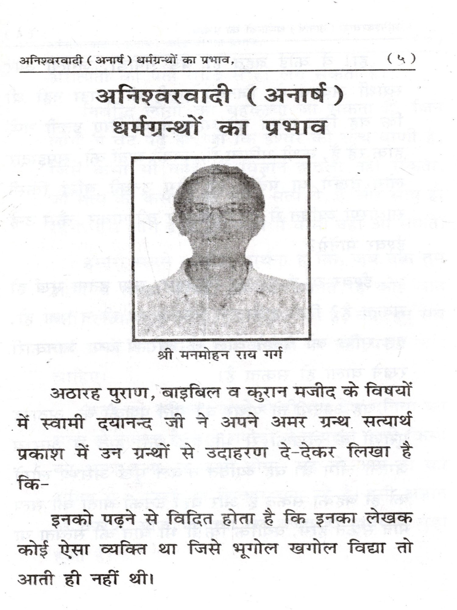 अनिश्वरवादी (अनार्ष ) धर्मग्रन्थों का प्रभाव: Aniswarwadi (Anarash) Dharmgiranthon Ka Prabhav