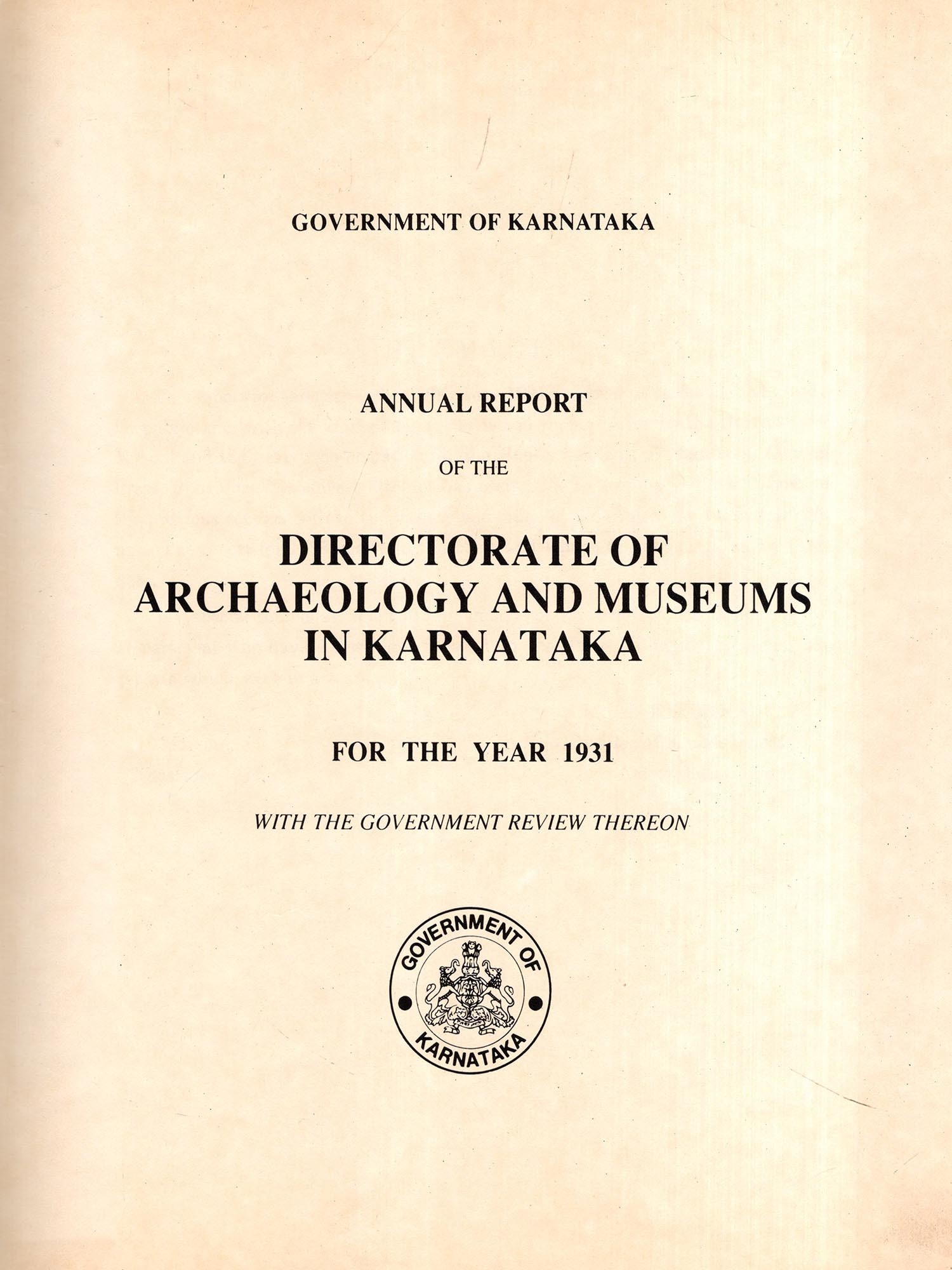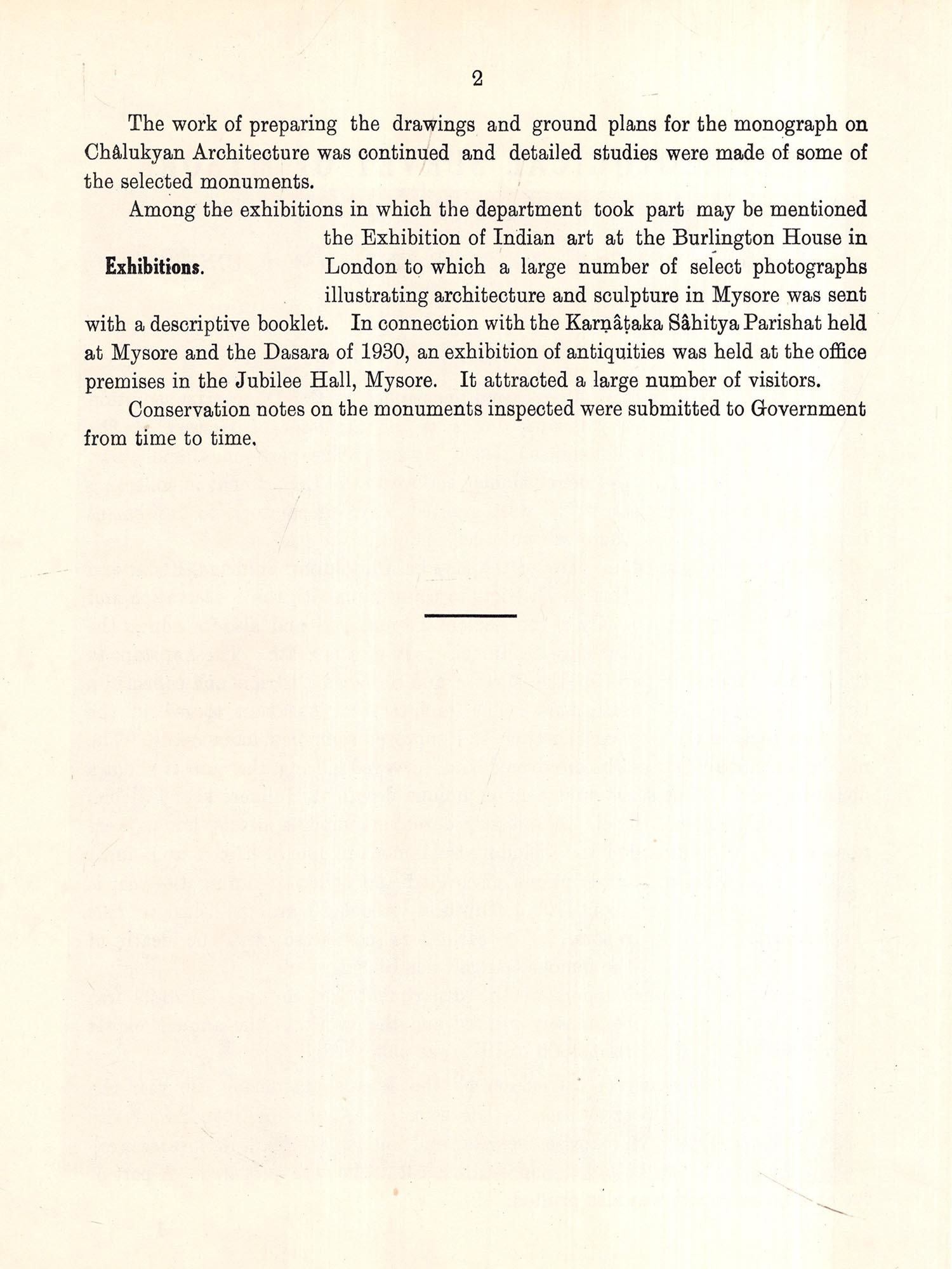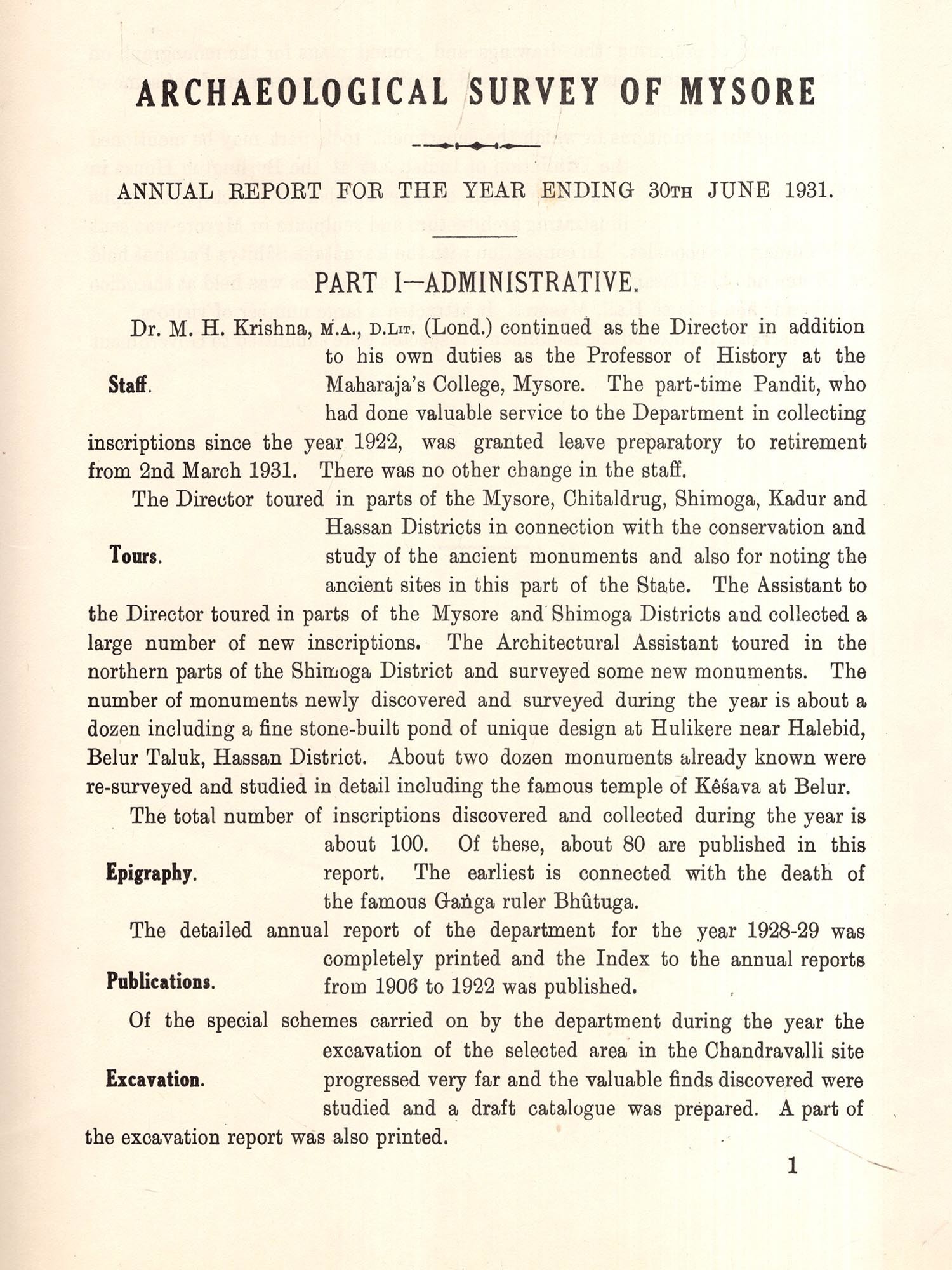 This report for the year ending 30th June 1931 has been printed and made ready for publication with the kind encouragement and support given by the University of Mysore and the bearty co-operation of the Superintendent, Government Central Press, Bangalore. A sincere attempt has been made to keep up to the standard of the previous reports both in the variety and value of the subject matter and in get up. The report for 1982 is also in the Press and I hope to publish it at an early date.