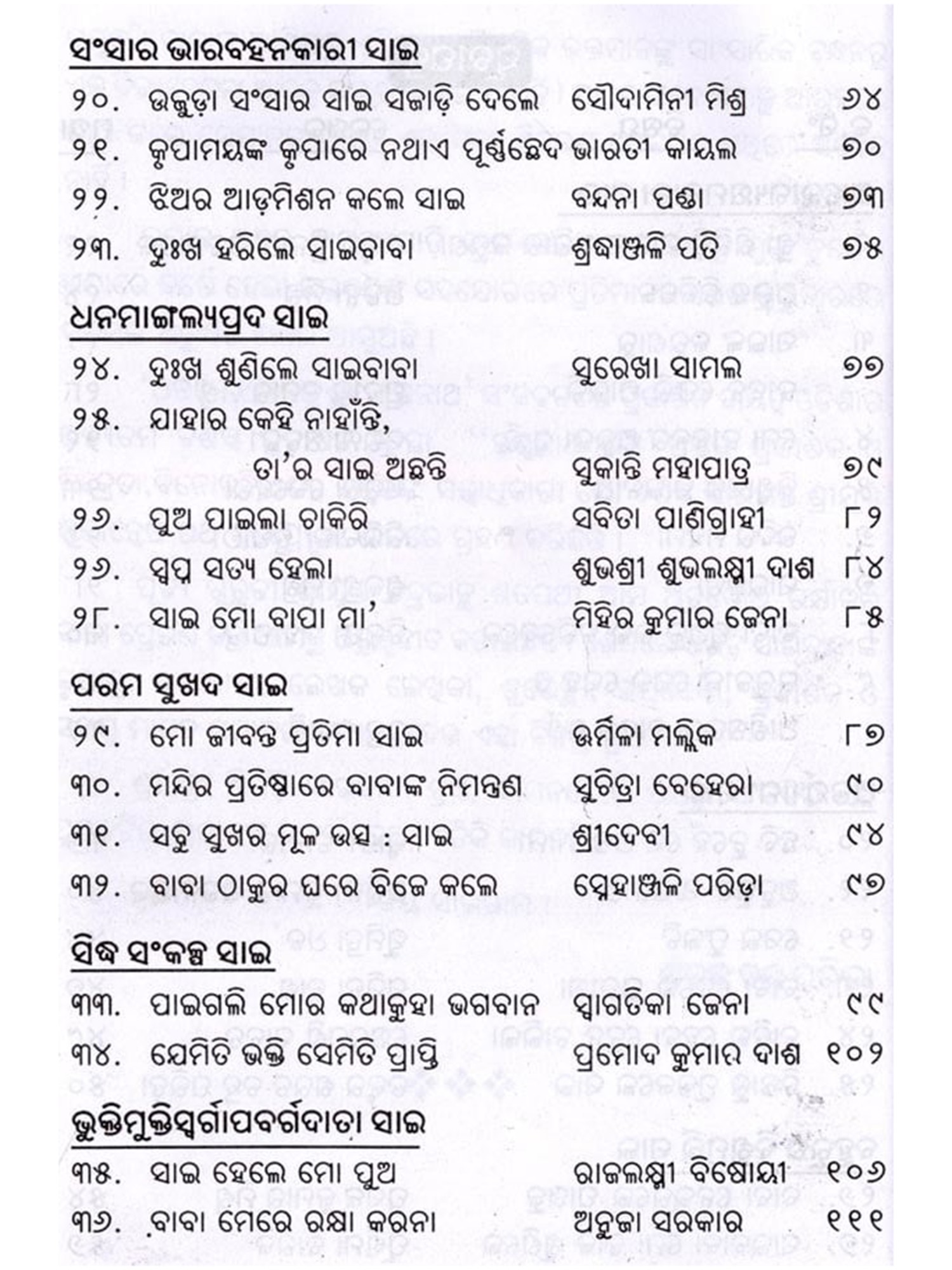 ଶ୍ରୀ ସାଇ ଲକ୍ଷ୍ମୀ କୃପାପ୍ରାପ୍ତି ମନ୍ତ୍ର ଇବାଣୀ ଜ୍ଞାନବାଣୀ ଶ୍ରୀ ସାଇ ଗୀତା ସାର ଶ୍ରୀ ସାଇକବଚ- Sri Sai Laxmi Krupa Prapti Mantra: Gyanabani/Saibani (Sri Sai Gita Sara/Sri Sai Kabacha in Oriya)