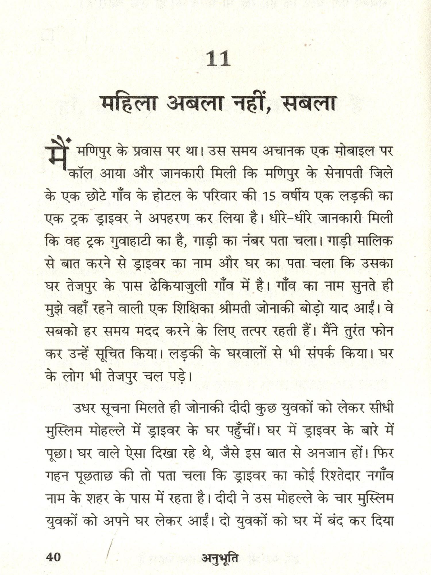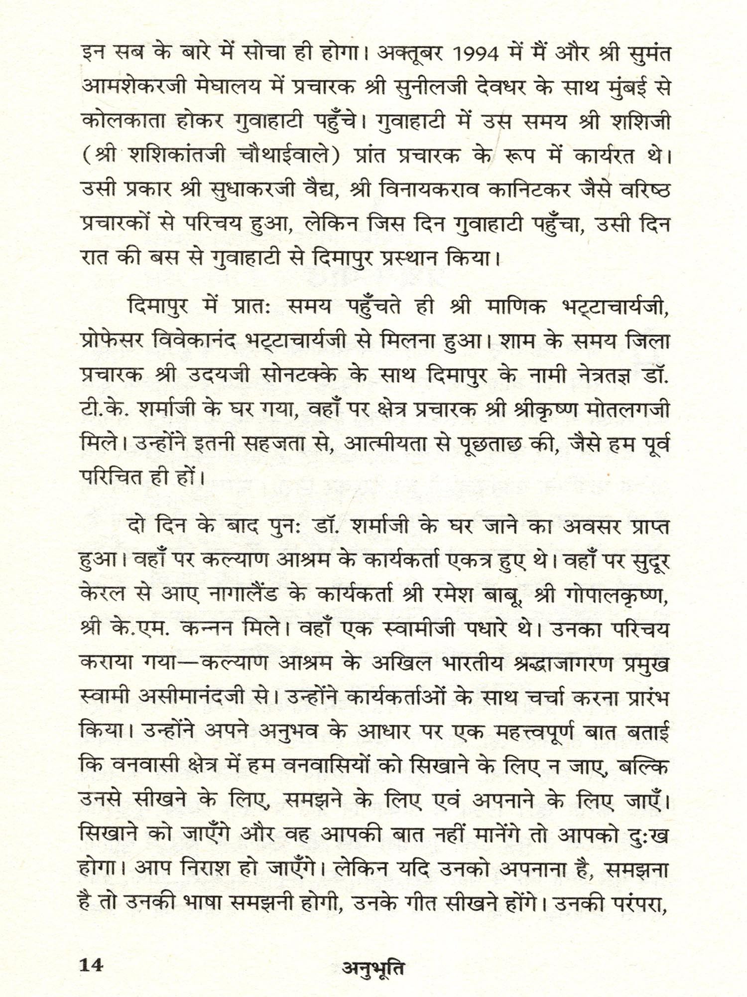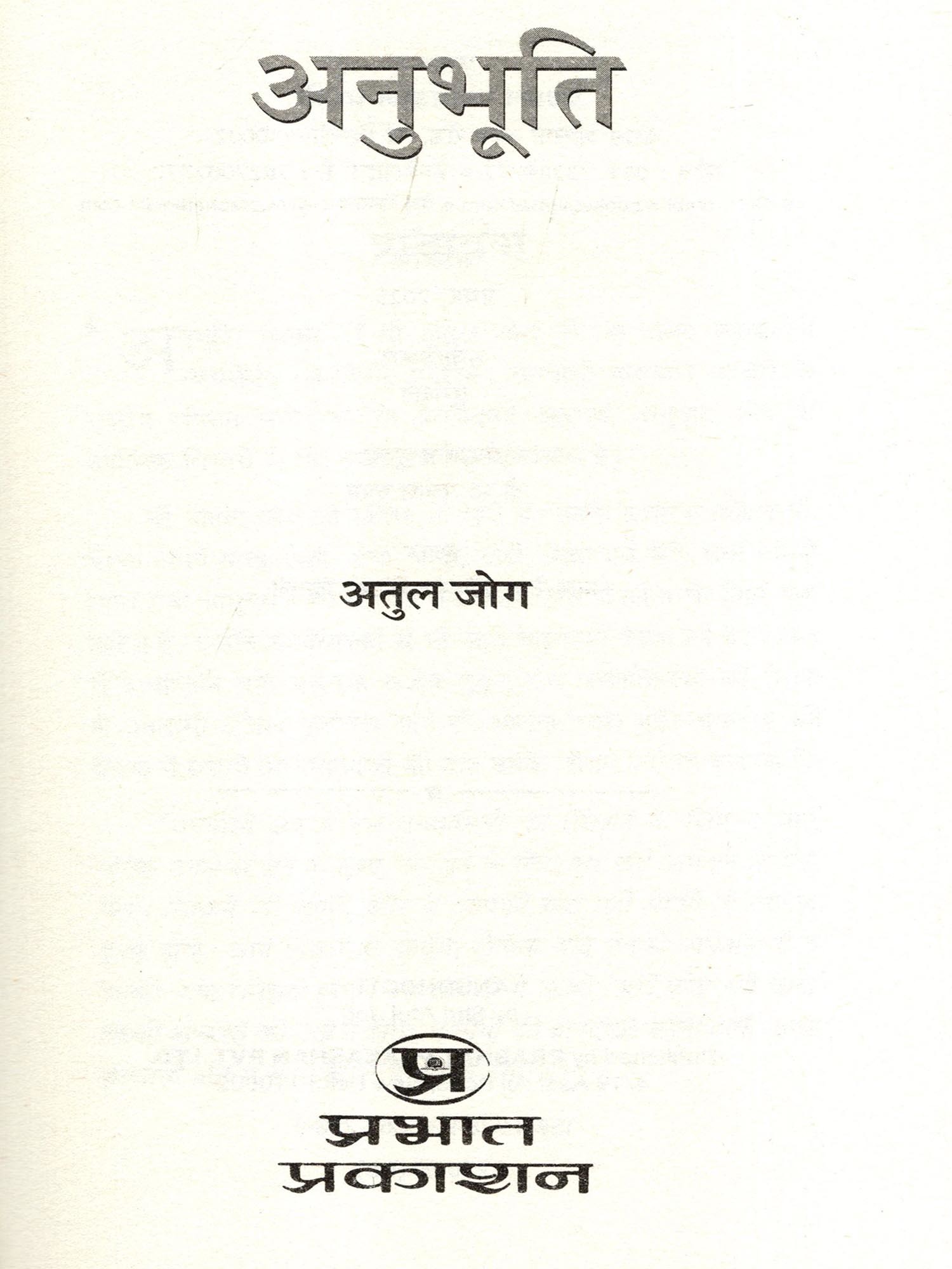 अनुभूति' पुस्तक में श्री अतुल जोग जी का अपने परिवार में स्वयंसेवक से लेकर प्रचारक, वनवासी कल्याण आश्रम के राष्ट्रीय संगठन मंत्री तक के प्रेरणादायी अनुभव, अनुभूति, मन के आत्मिक विचारों से भरा हुआ एक आत्मविश्वास है।"
