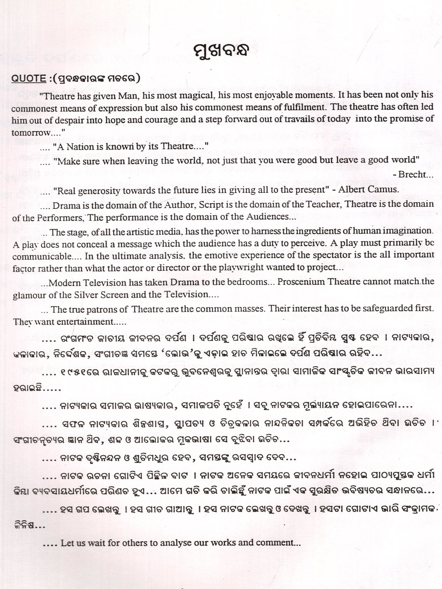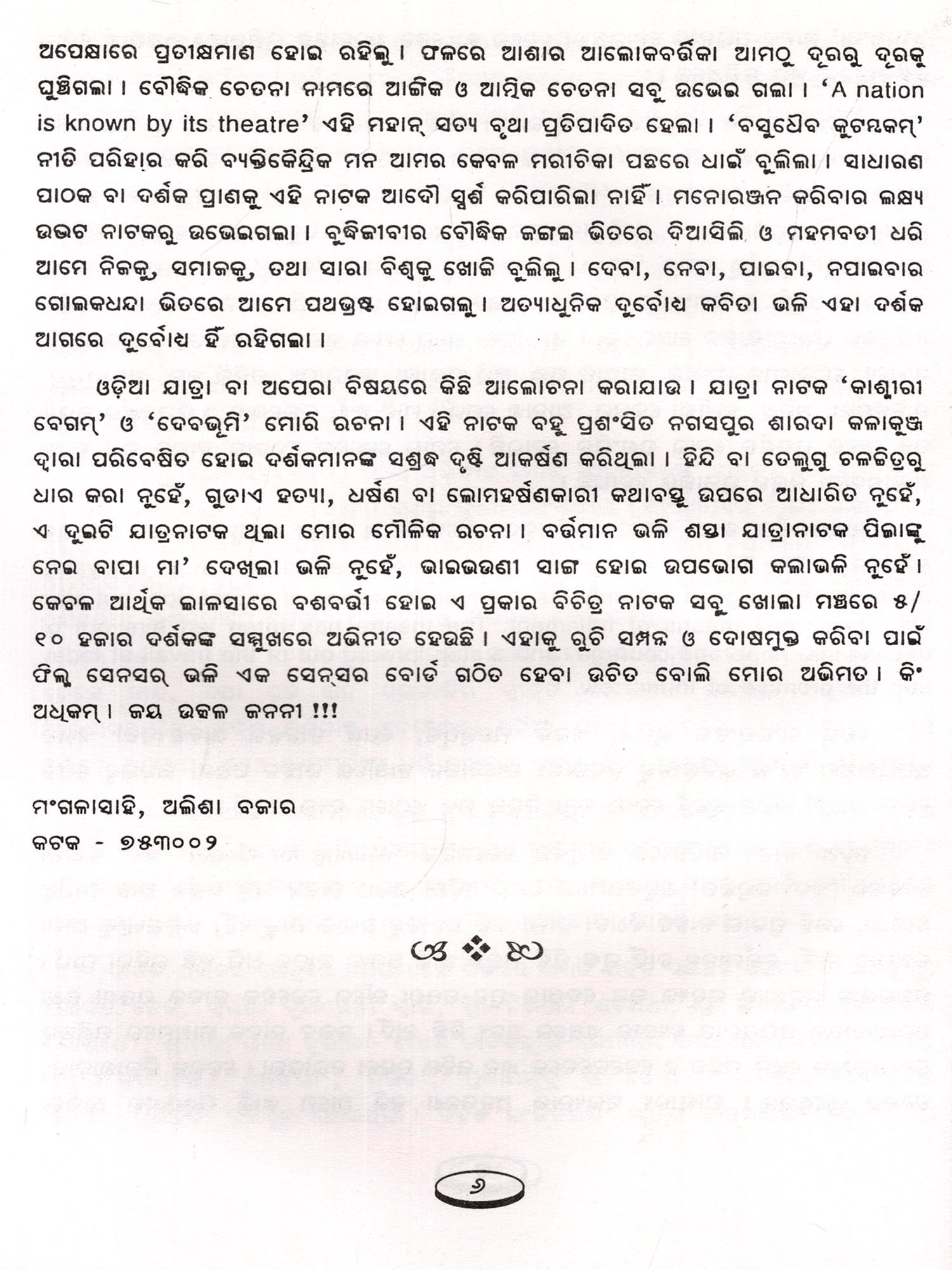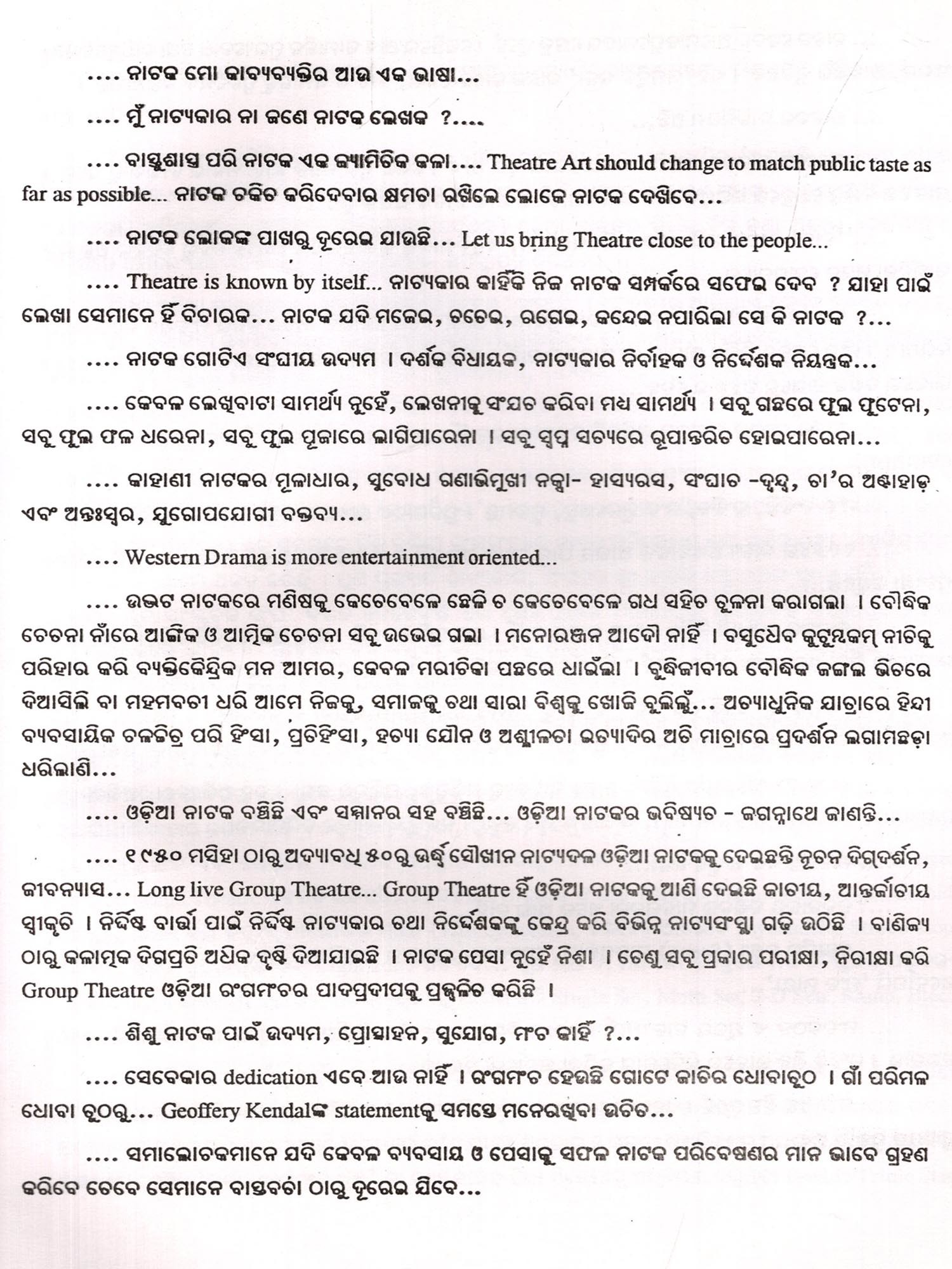 ଓଡ଼ିଆ ନାଟକ ଓ ରଙ୍ଗମଞ୍ଚ: Odia Natak - O - Rangamancha (Oriya)