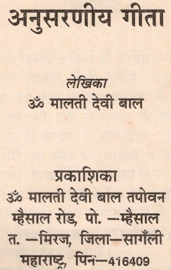 अनुसरणीय गीता: Anusaraneey Geeta (An Old and Rare Book)