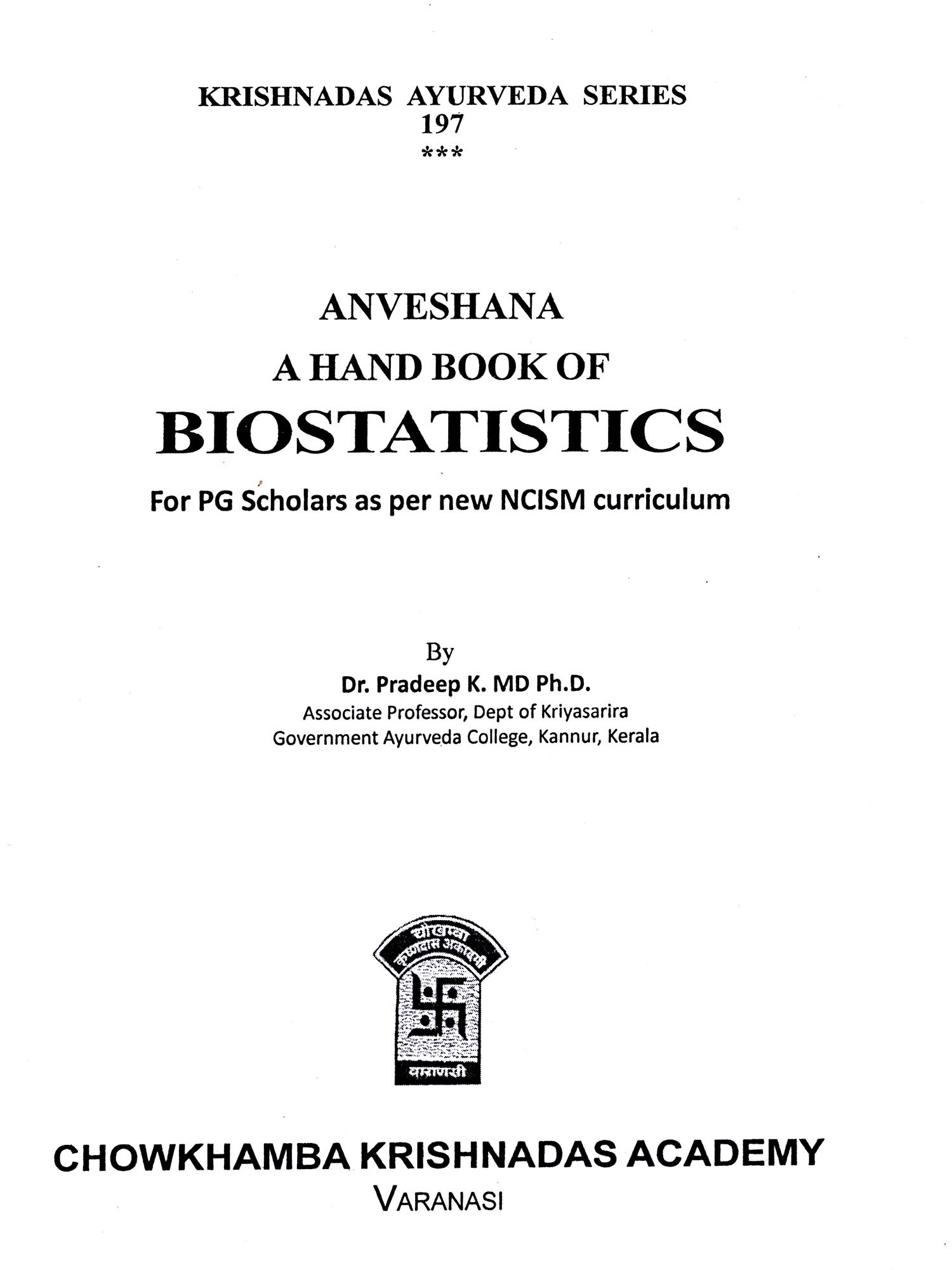 It gives me immense pleasure to write the foreword for Anveshana: Handbook of Biostatistics, a timely and valuable contribution to the field of Ayurvedic education and research.