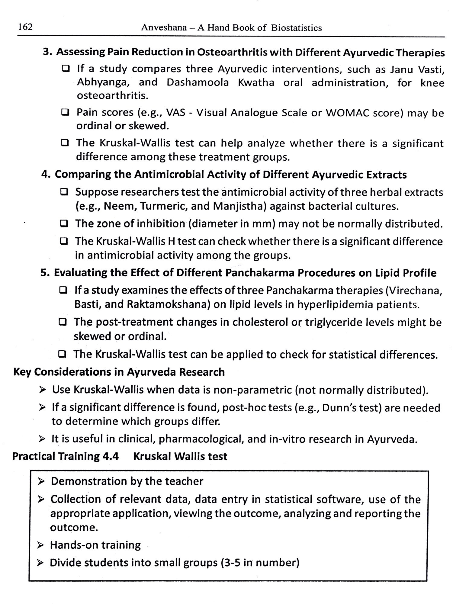 This handbook does not merely serve as a compilation of statistical techniques; rather, it is an invitation to Ayurvedic scholars to embrace the language of science without losing the soul of tradition. Each chapter is designed with clarity and relevance, drawing upon real-world examples from Ayurvedic practice and research.