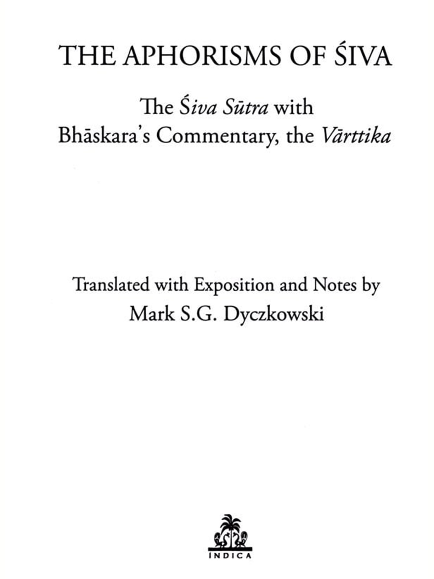 The Aphorisms of Siva: The Siva Sutra with Bhaskara's Commentary, the Varttika