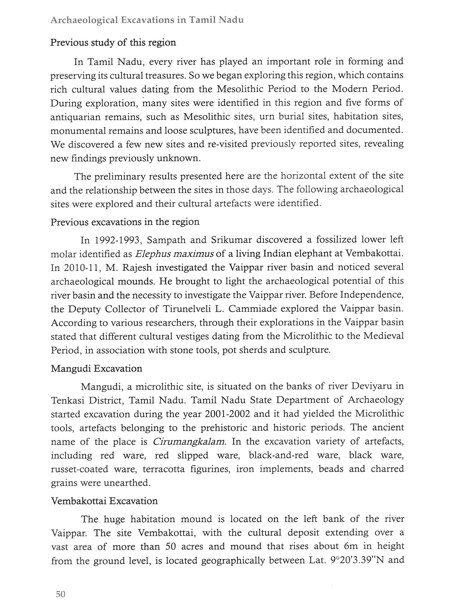 I congratulate all the Directors of Excavations who earnestly synthesised their findings and placed them before the academicians and the public for their observations. My heartfelt thanks to all the team members who were involved in the excavations 2024-2025. For the first time, the Tamil Nadu State Department of Archaeology has brought such preliminary reports of all excavated sites before going to the next season of excavation. I wish to congratulate the editors K.Rajan, R.Sivanantham, and V.P. Yathees Kumar, who consolidated the entire data and shaped the preliminary report, Archaeological Excavations in Tamil Nadu.