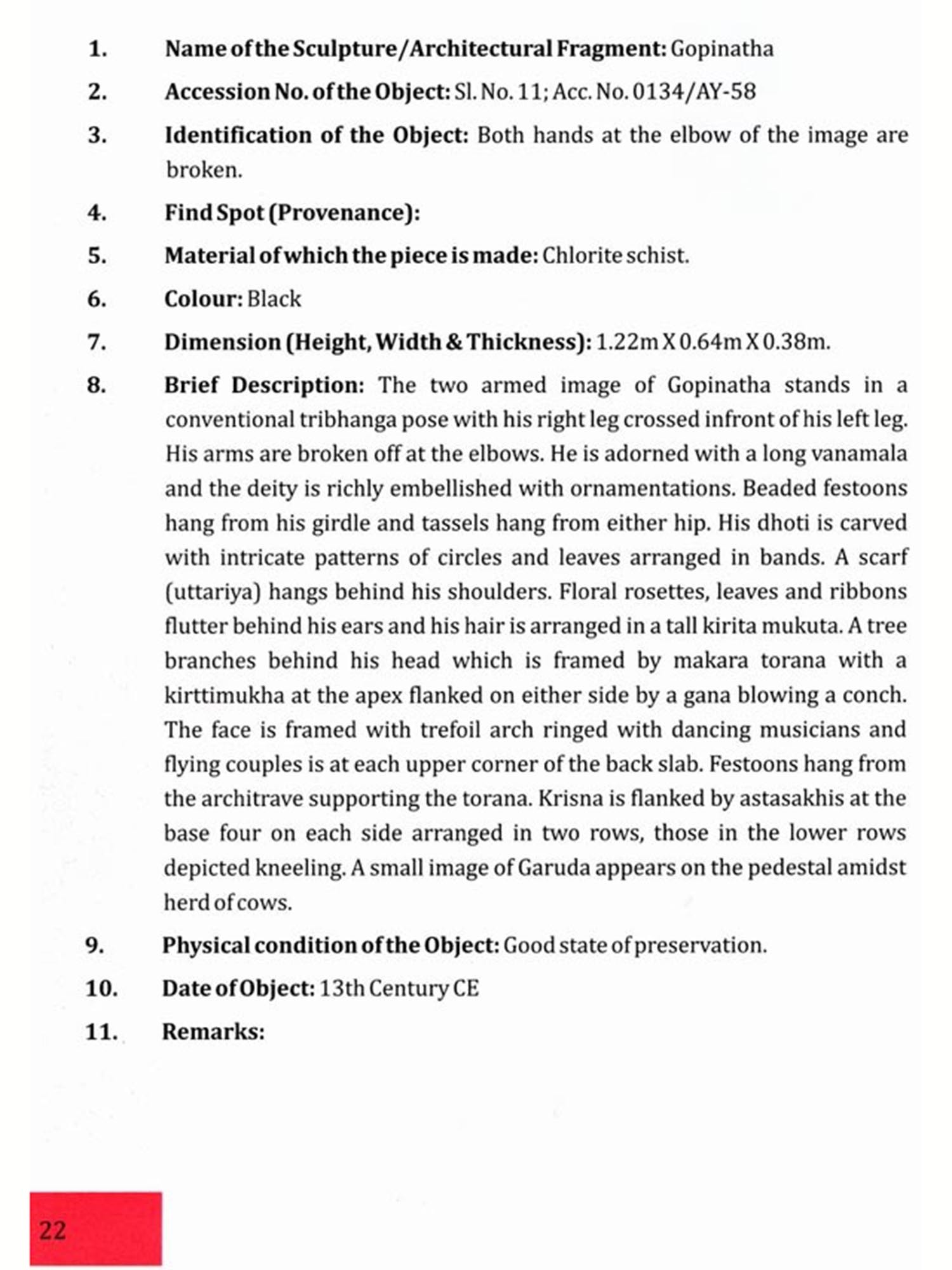 The study of the surviving images in the museum isessential forreconstructing a more comprehensive picture of iconographic traditions of Hindus, Buddhist and Jainas of ancient Odisha and increase our overall knowledge of iconography of Odishan art as a whole. We hope that our efforts will cater to the need of the academic world. We are sure that this illustrated compendium can best serve as a source book. It is also hoped that this small endeavour will be beneficial for visitors, scholars in understanding the collection of sculptures of different time and space in the museum in particular and the aspects of the Odishan culture in general.