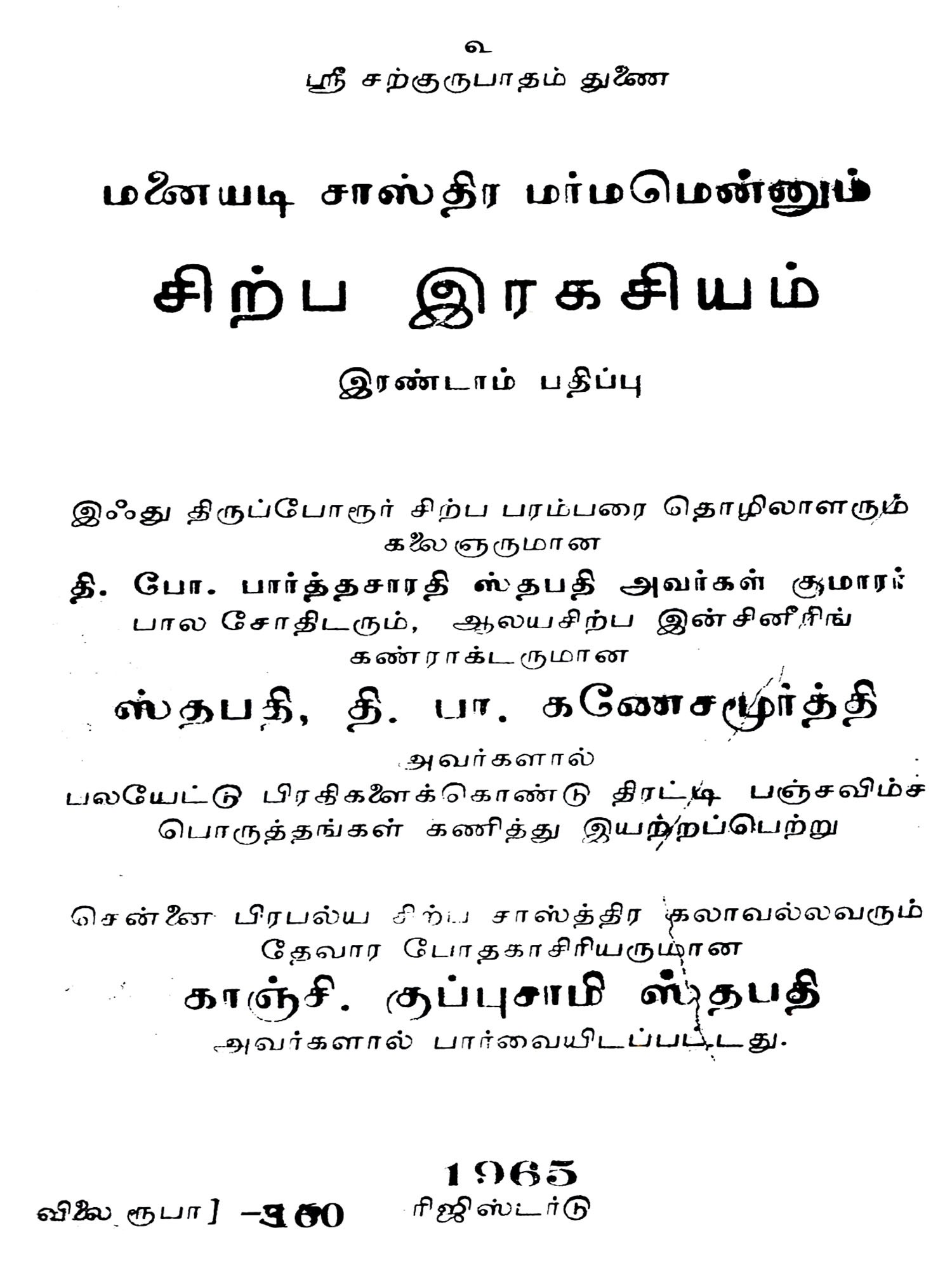 மயன் சிற்பரத்னாகரம் வாஸ்து மனையடி சாஸ்திரம் (மூலமும் உரையும்): Chipalratnagaram Vastu Manayadi Shastra (Tamil)
