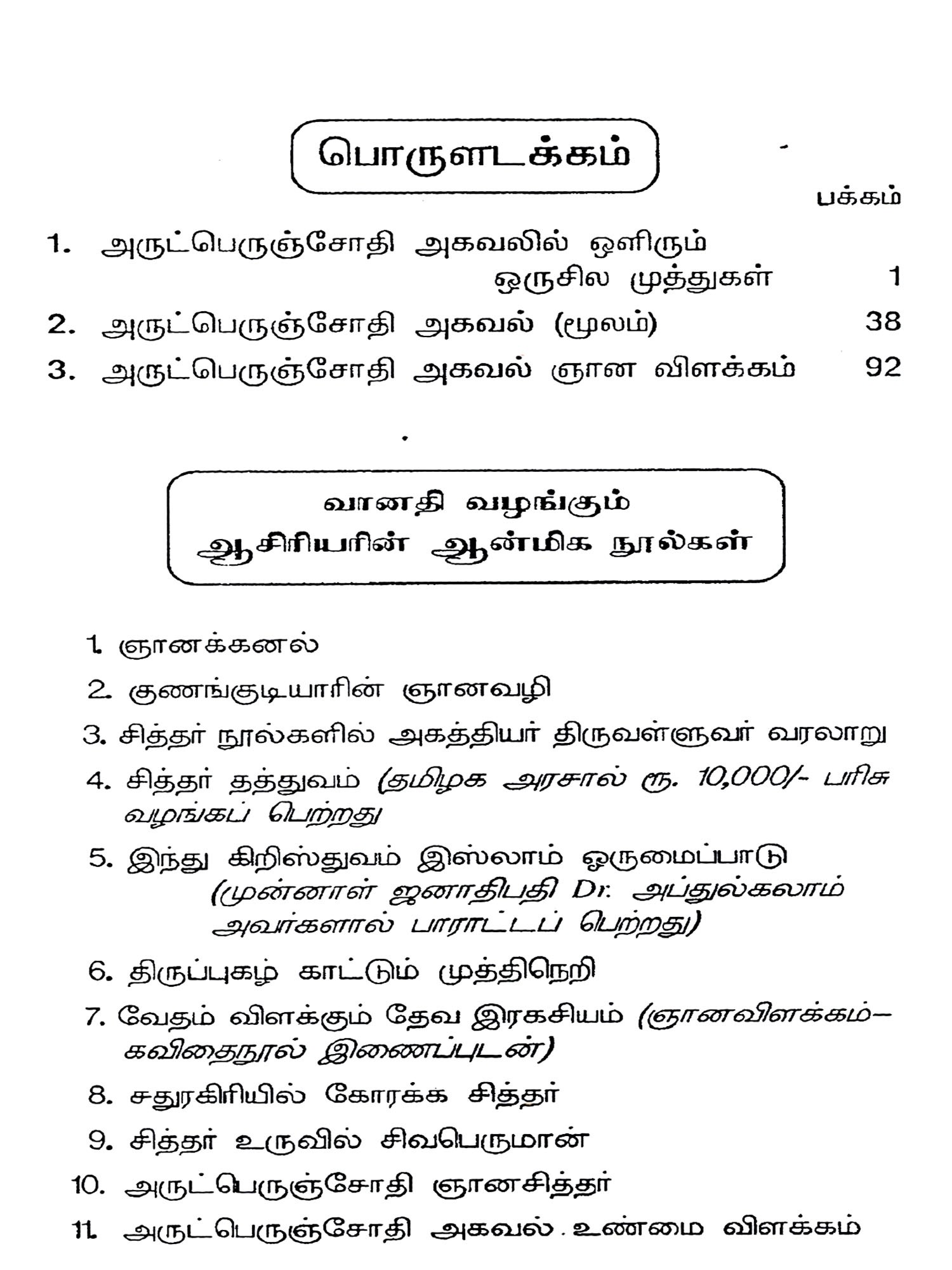 அருட்பெருஞ்சோதி அகவல் ஞான விளக்கம்: Arutperunjothi Agaval Gnana Vilakkam (Tamil)
