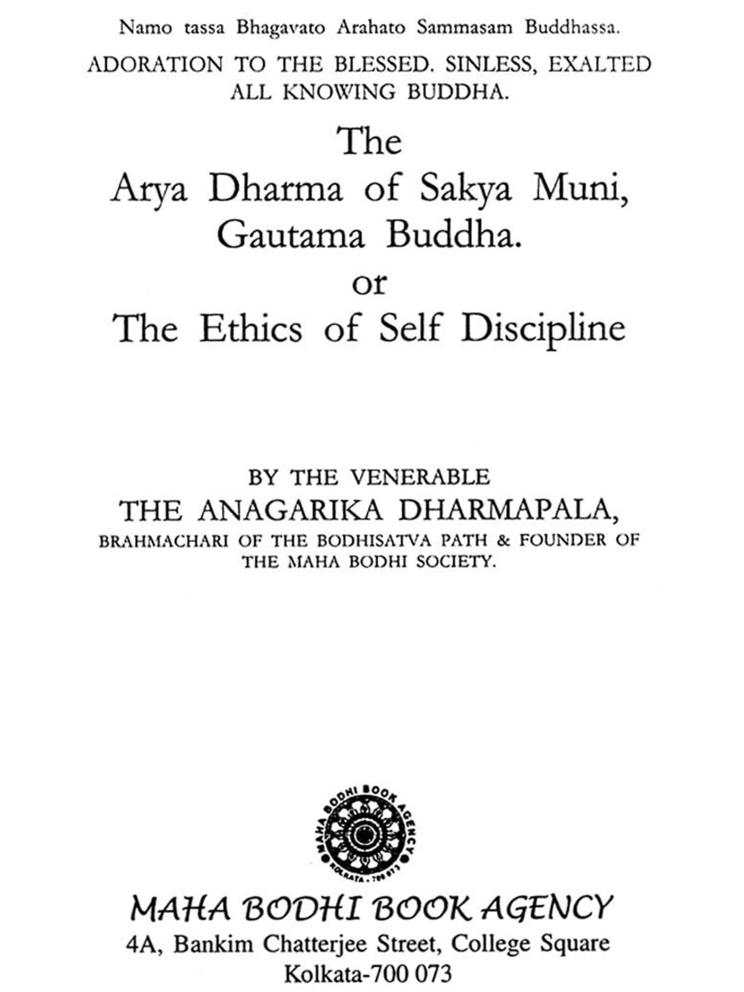 The Arya Dharma of Sakya Muni, Gautama Buddha or the Ethics of Self Discipline