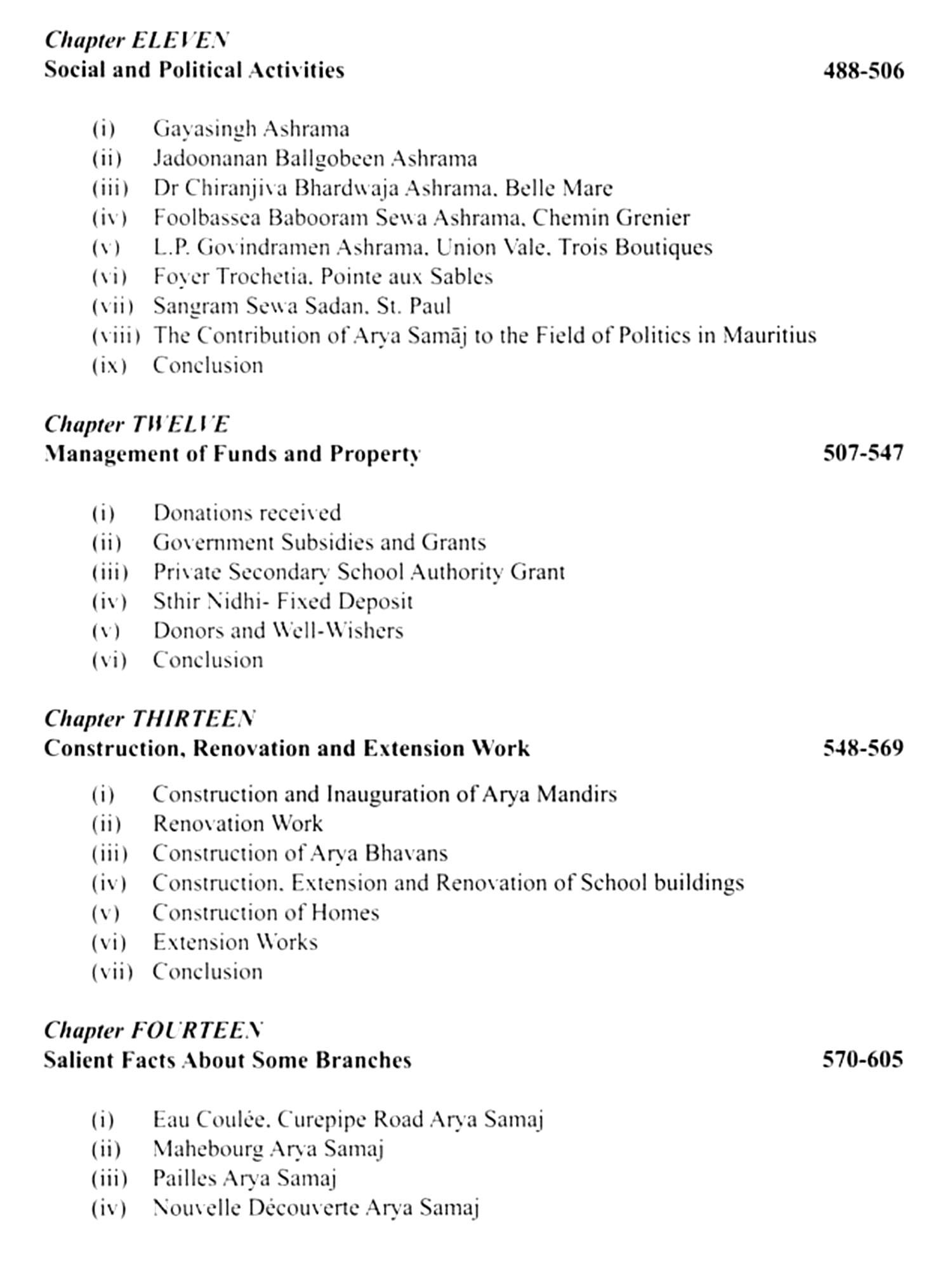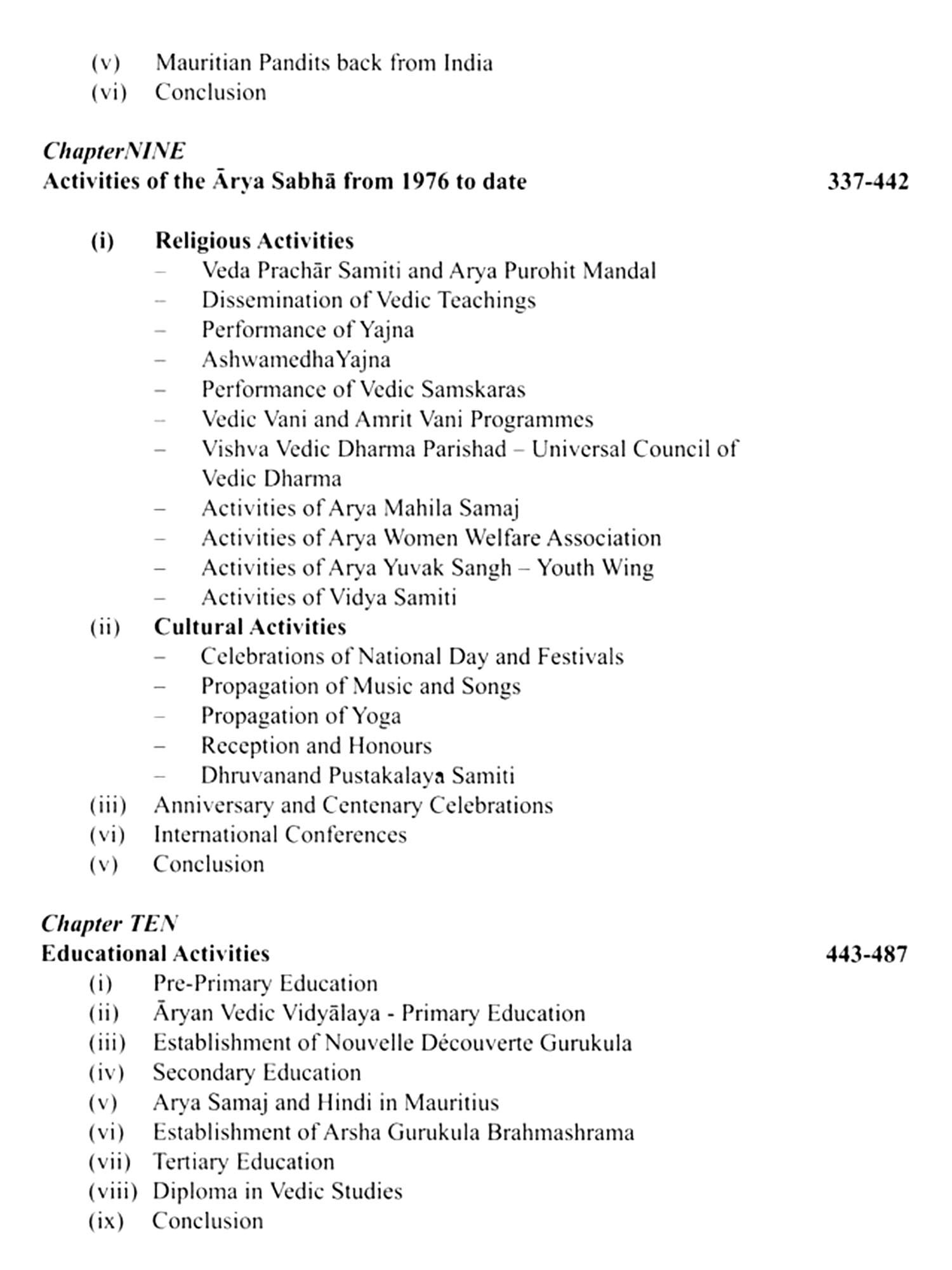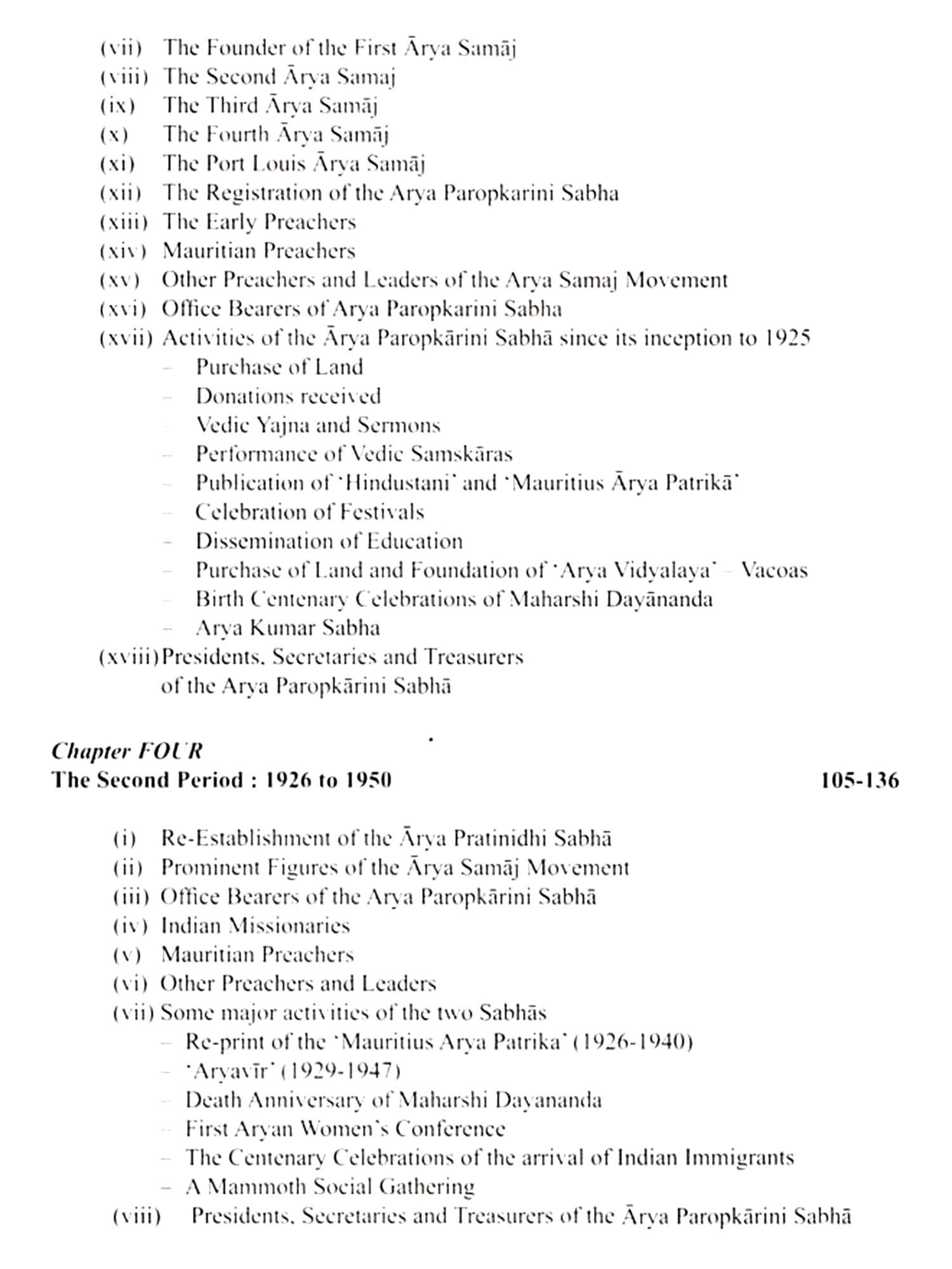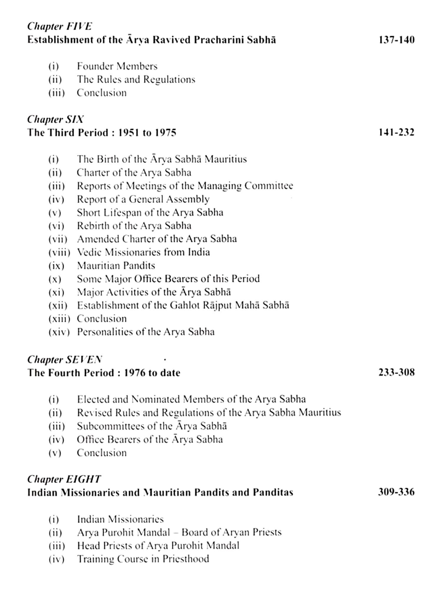 The second part is devoted to the history of the Arya Samaj movement in Mauritius. The 100-years of this dynamic movement are divided into four periods while section three deals with the activities of Arya Samaj in South Africa.