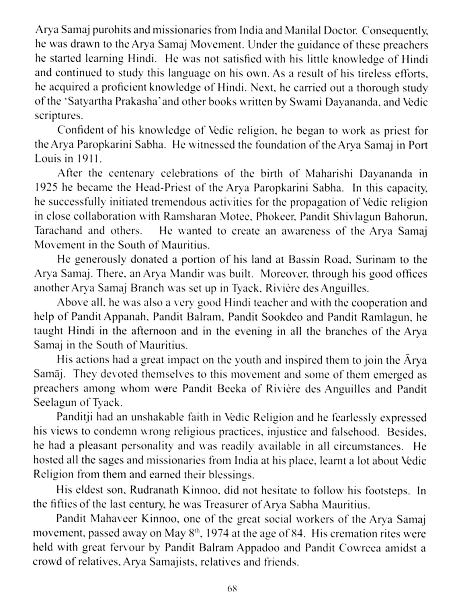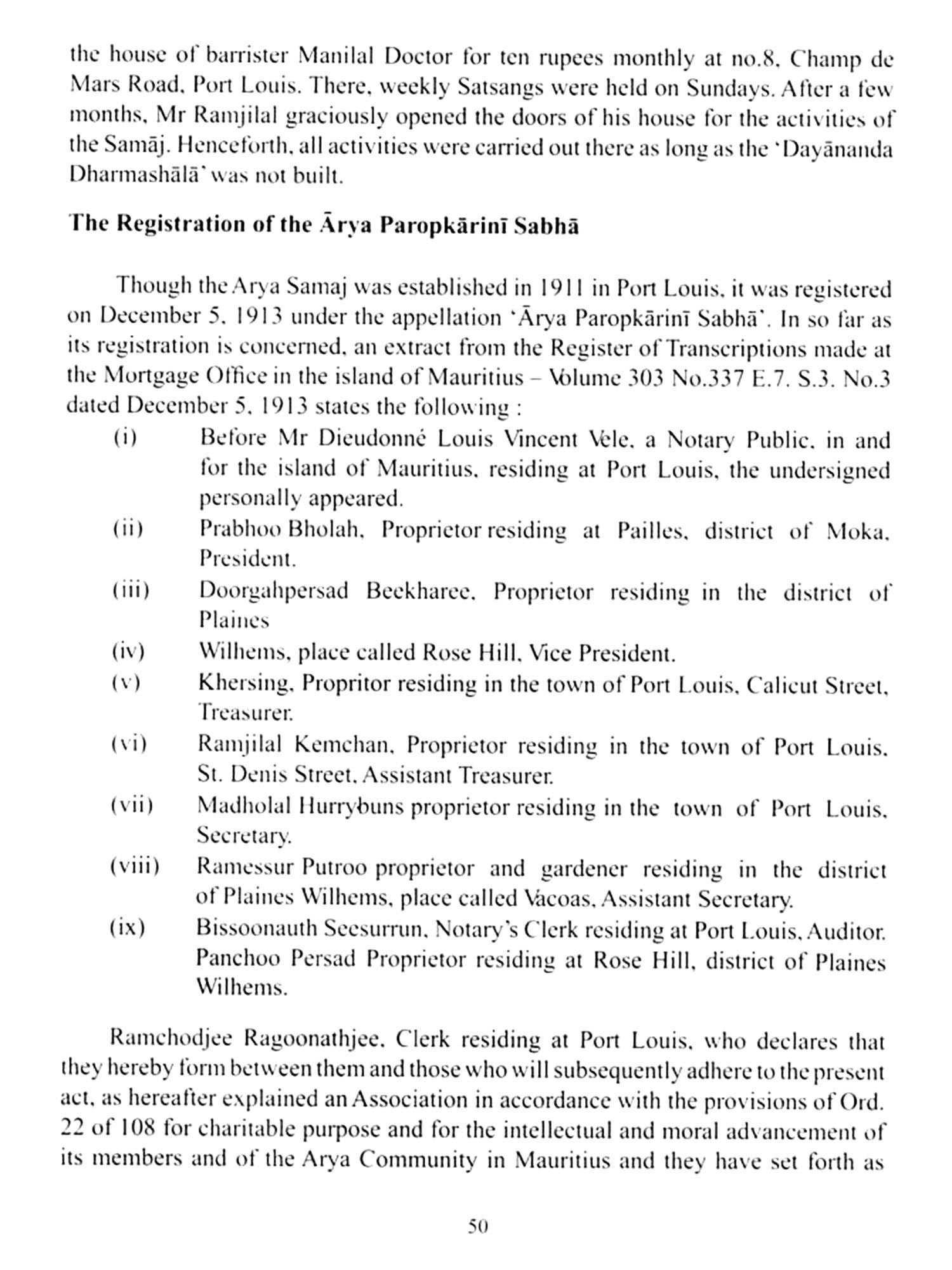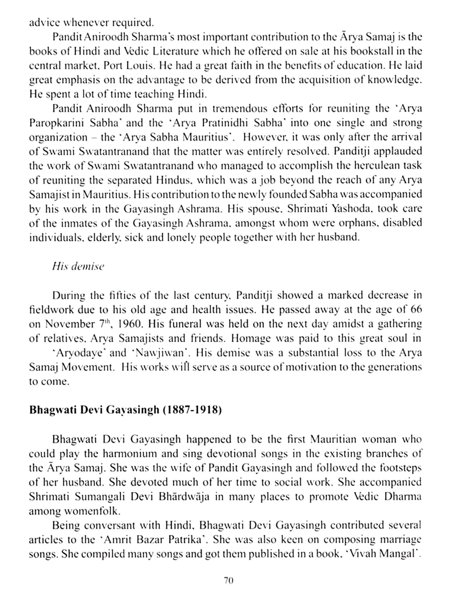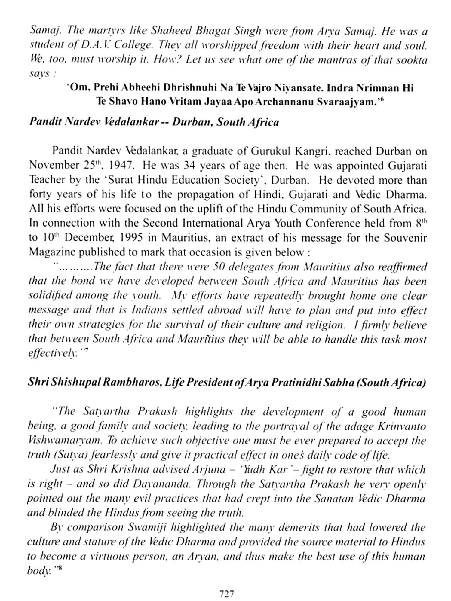 The second part is devoted to the history of the Arya Samaj movement in Mauritius. The 100-years of this dynamic movement are divided into four periods while section three deals with the activities of Arya Samaj in South Africa.