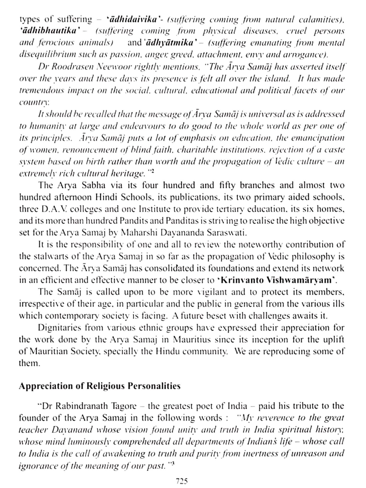 I have, ever since my childhood, been associated with the Arya Samaj movement in Mauritius as well as with the magnum opus of Swami Dayananda Saraswati The Satyärtha Prakäsha which in many ways has been a source of inspiration to me while guiding my path.