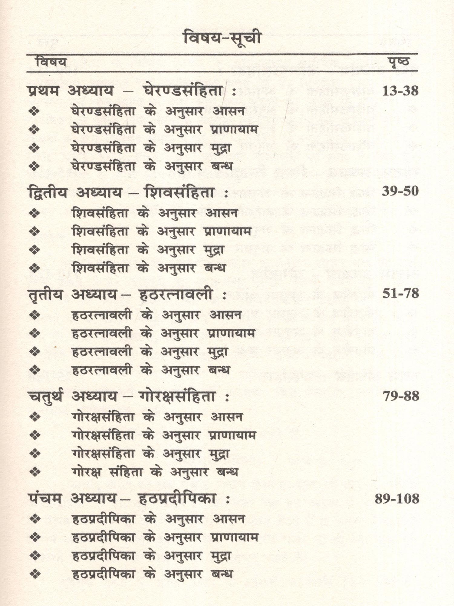 इन सब समस्याओं के ऊपर विचार करने के उपरानत हमने एक ऐसी पुस्तक का निर्माण करने का प्रयास किया है जिसमें हठयोग के प्रमुख आठ ग्रन्थों के अनुसार आसन, प्राणायाम, मुद्रा, बन्ध आदि के नाम एवं विधियाँ विश्वसनीय हों। इस पुस्तक के अन्तर्गत हठयोग विषय के मुख्य ग्रन्थों से इस सामग्री को संकलित किया गया है। पुस्तक का संकलनकार्य करते समय इन सभी विषयों का विशेष ध्यान रखा गया है कि योग के जिन साधनों की चर्चा हम कर रहे हैं, वे पूरी तरह से हठयौगिक ग्रन्थों के आधार पर हों। विद्यार्थीगण सम्पूर्ण आश्वस्तता के साथ इस ग्रन्थ का अध्ययन करके UGC NET, GRF, Ph-D प्रवेश परीक्षा सफलता प्राप्त कर सकते है। विद्यार्थीगण आठ हठयौगिंक ग्रन्थों का अध्ययन करके केवल इस पुस्तक का अध्ययन करके उपर्युक्त परीक्षाओं में सफल हो सकते हैं। आशा है मेरा यह प्रयास योग-जिज्ञासुओं एवं सामान्य जन के लिए बहुपयोगी सिद्ध होगा।