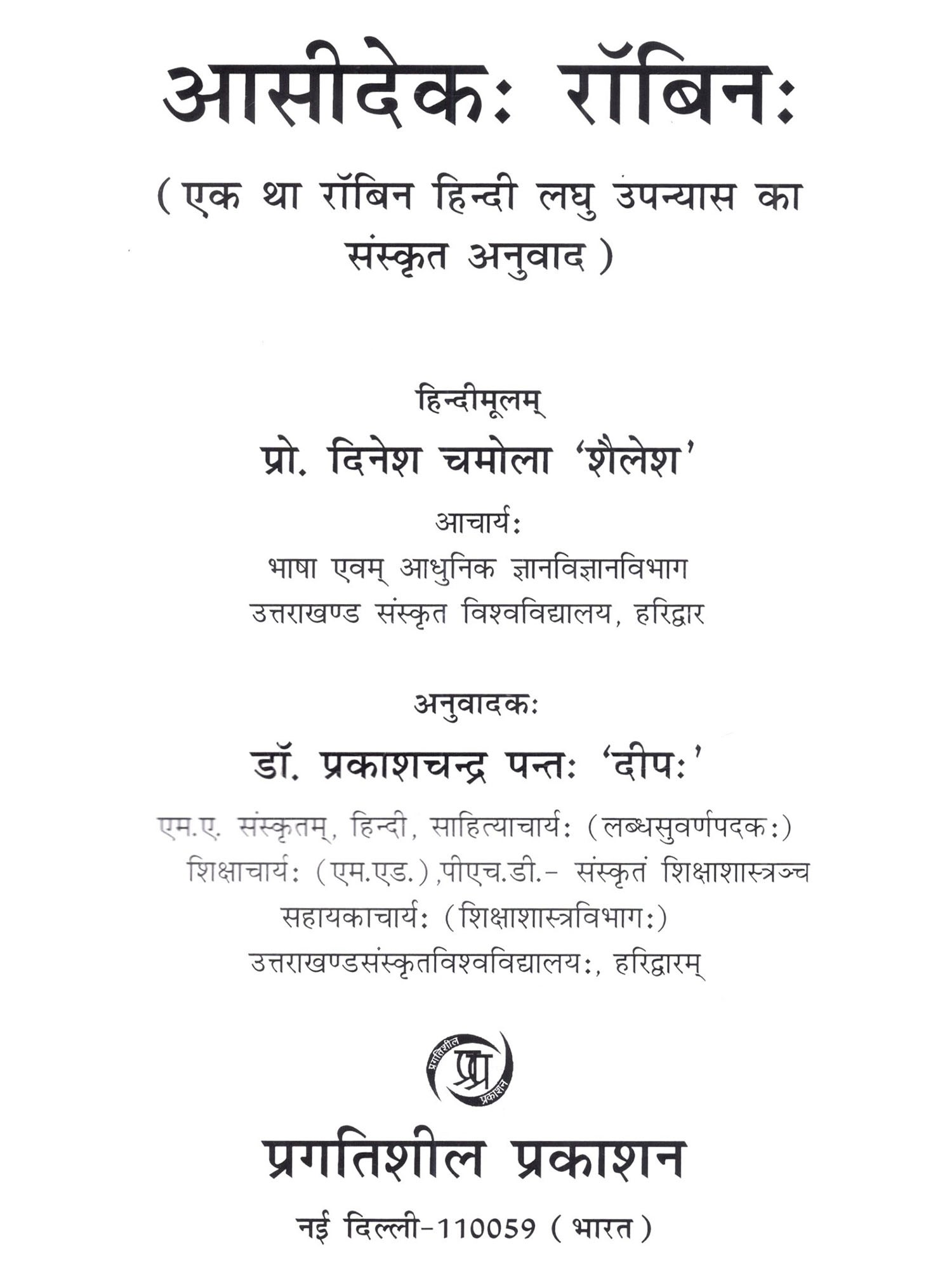 आसीदेक रॉबिन: Aseedeekah Robin (Sanskrit translation of the Hindi Short Novel Ek Tha Robin)