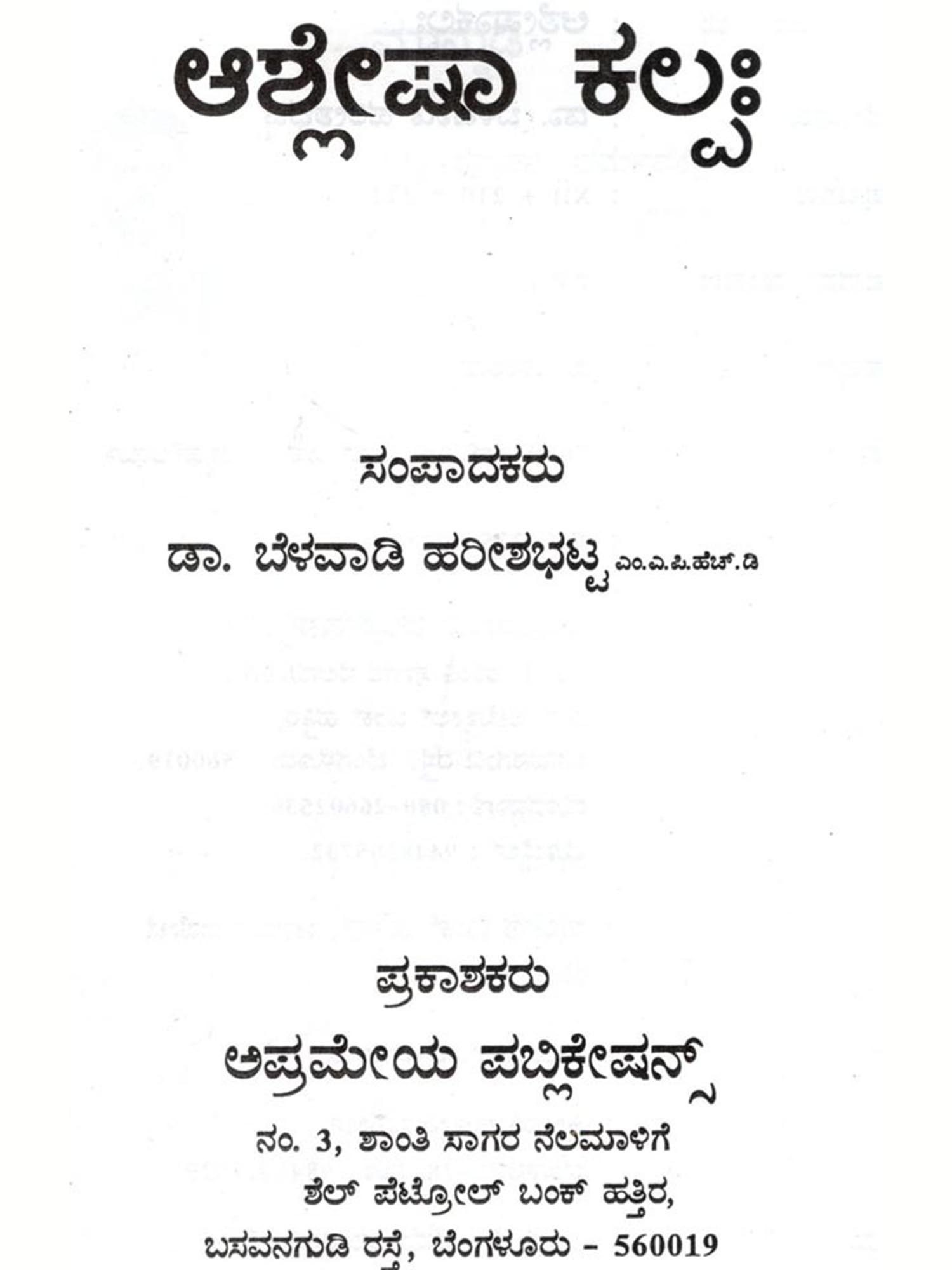 ಆಶ್ಲೇಷಾಬಲಿಃ, ಸರ್ಪಬಲಿ: ಕಾಲಸರ್ಪಯೋಗಶಾಂತಿಃ- Ashlesha Balihi, Sarpa Balihi and Kalasarpa Yoga Shanthihi (Kannada)