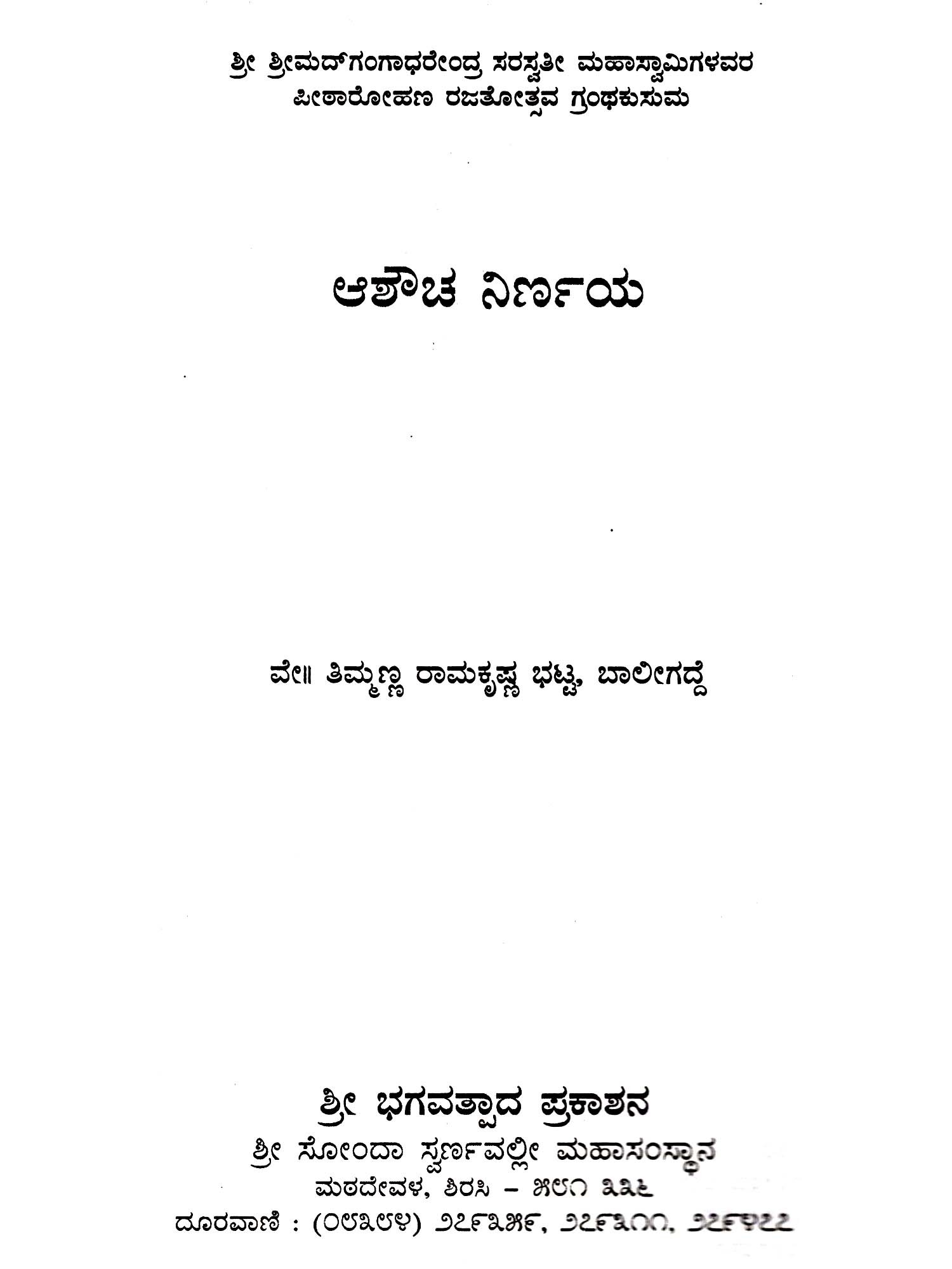 Shri Bhagavatpada Prakashan, Bangalore (Swarnavalli)