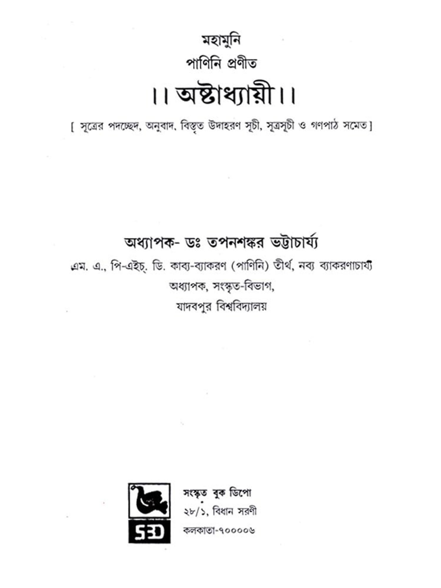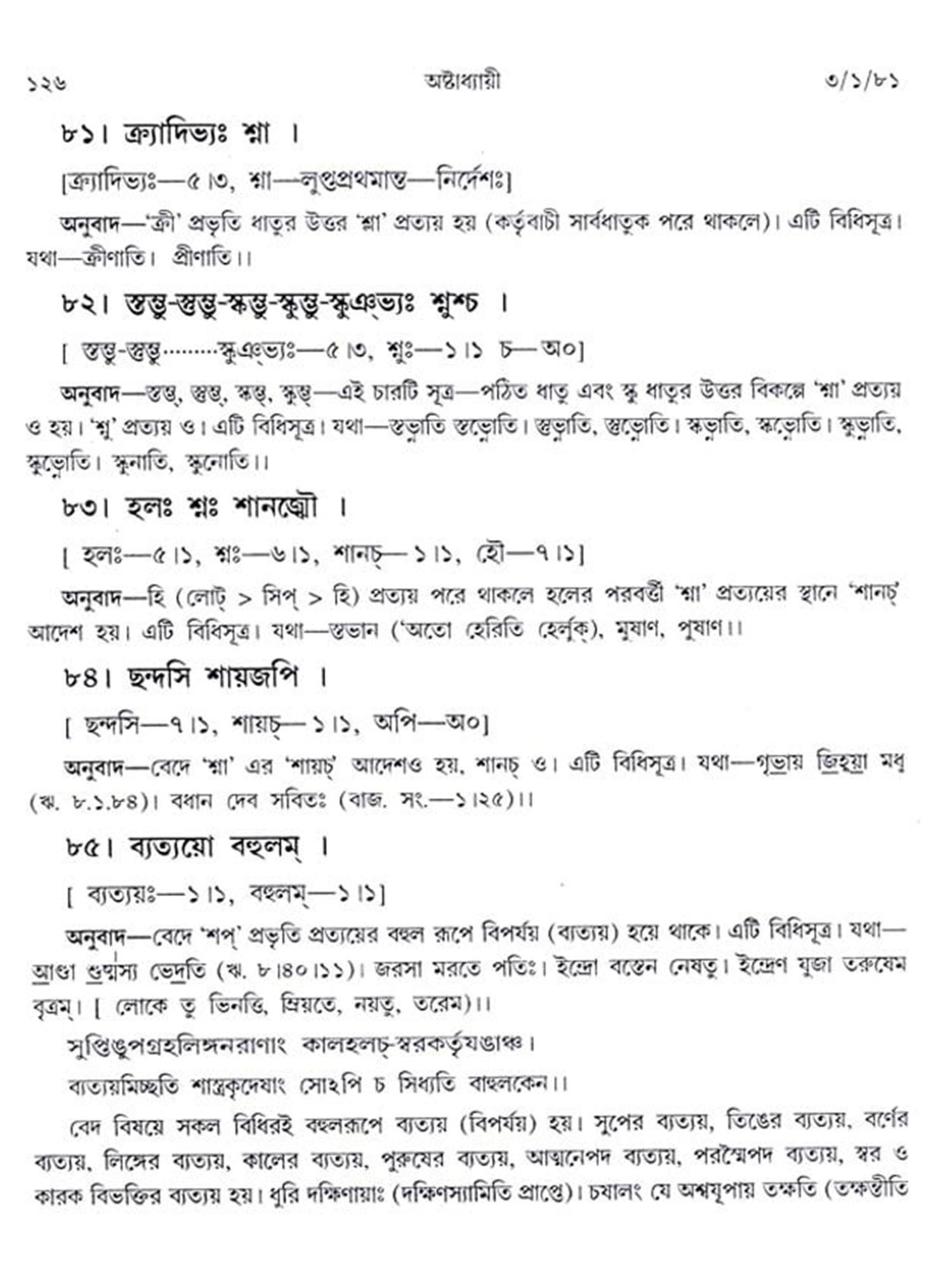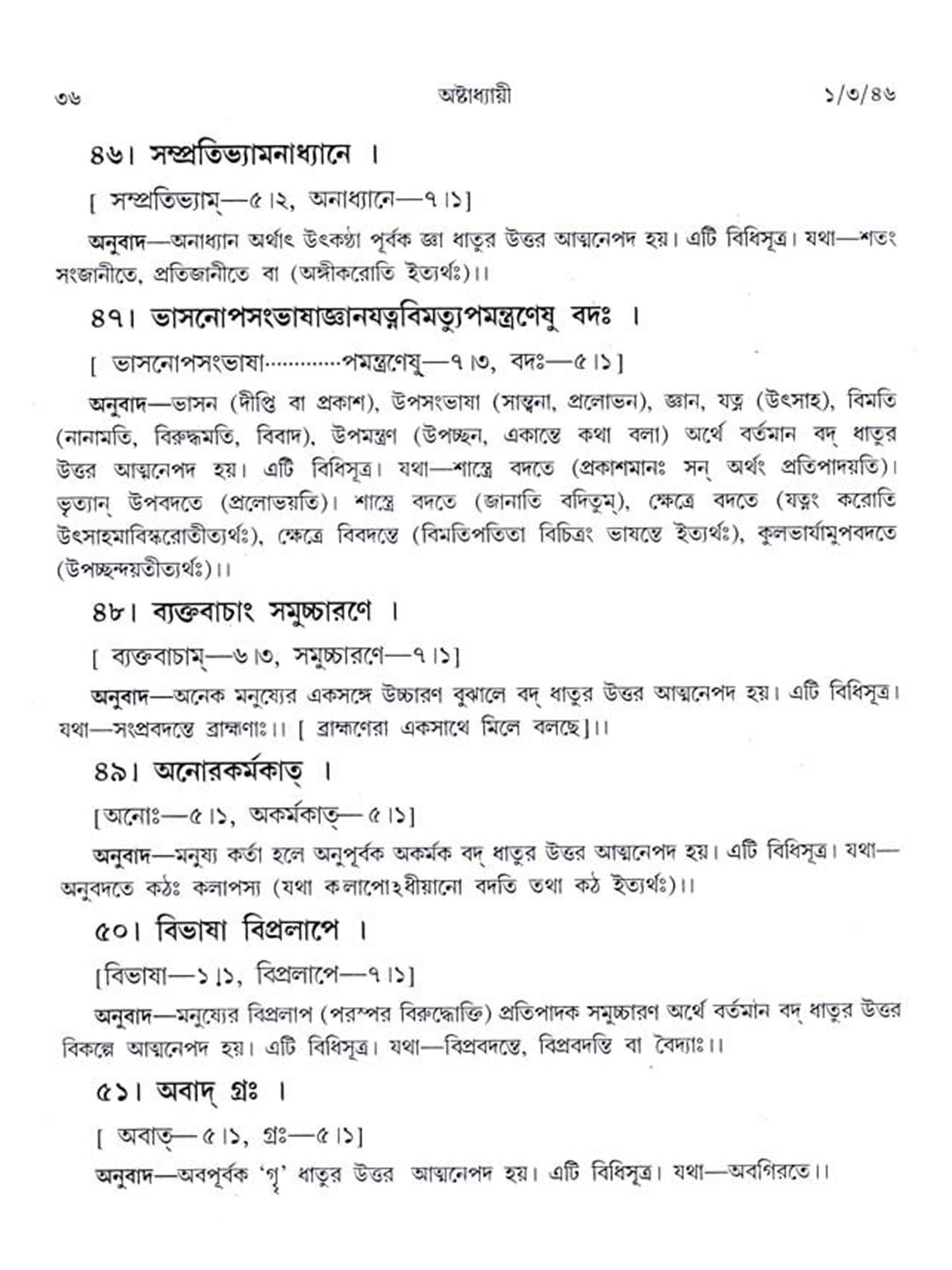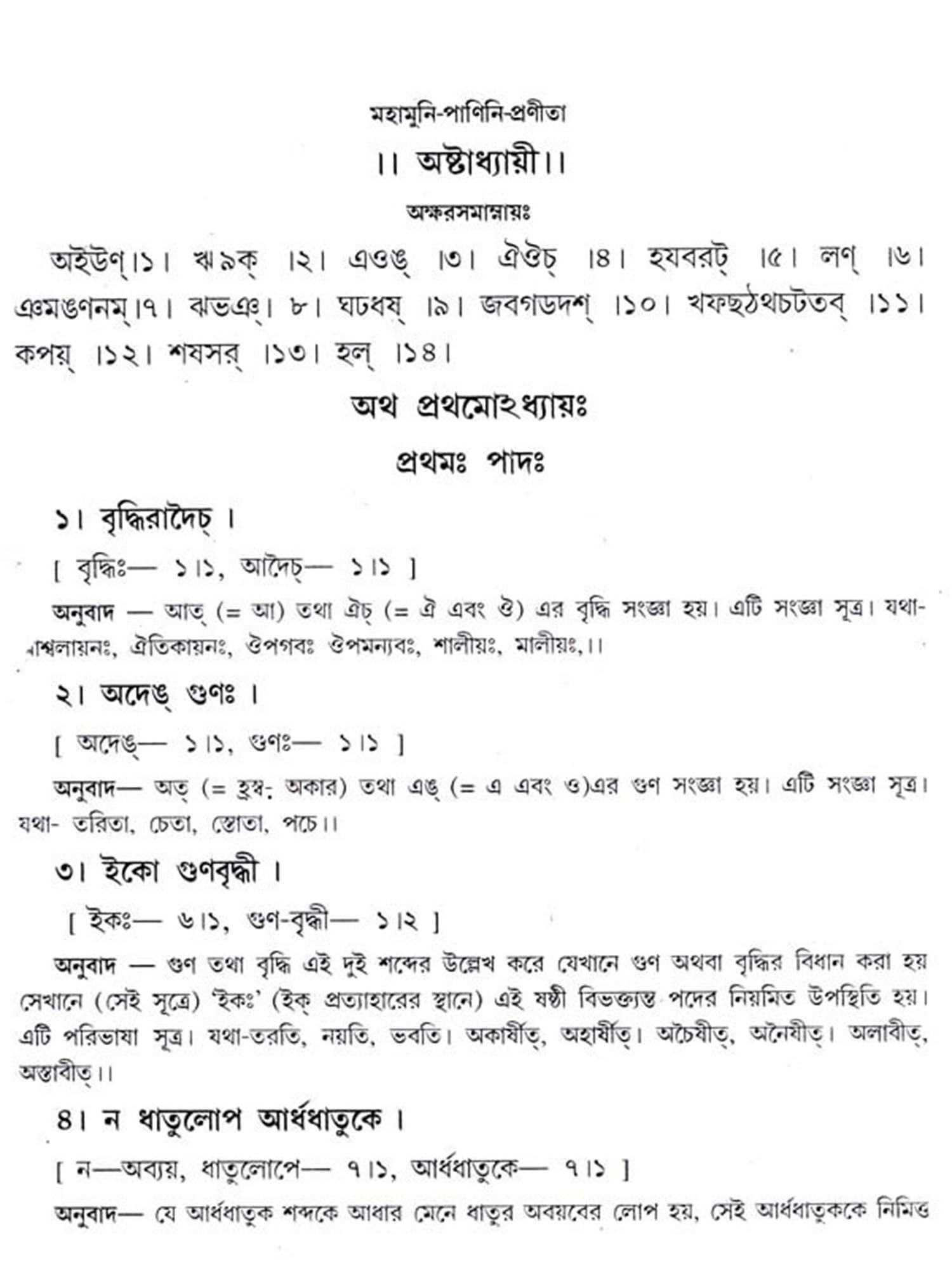 অষ্টাধ্যায়ী: Ashtadhyayi- Panini with Probha or "the Light" (Bengali)