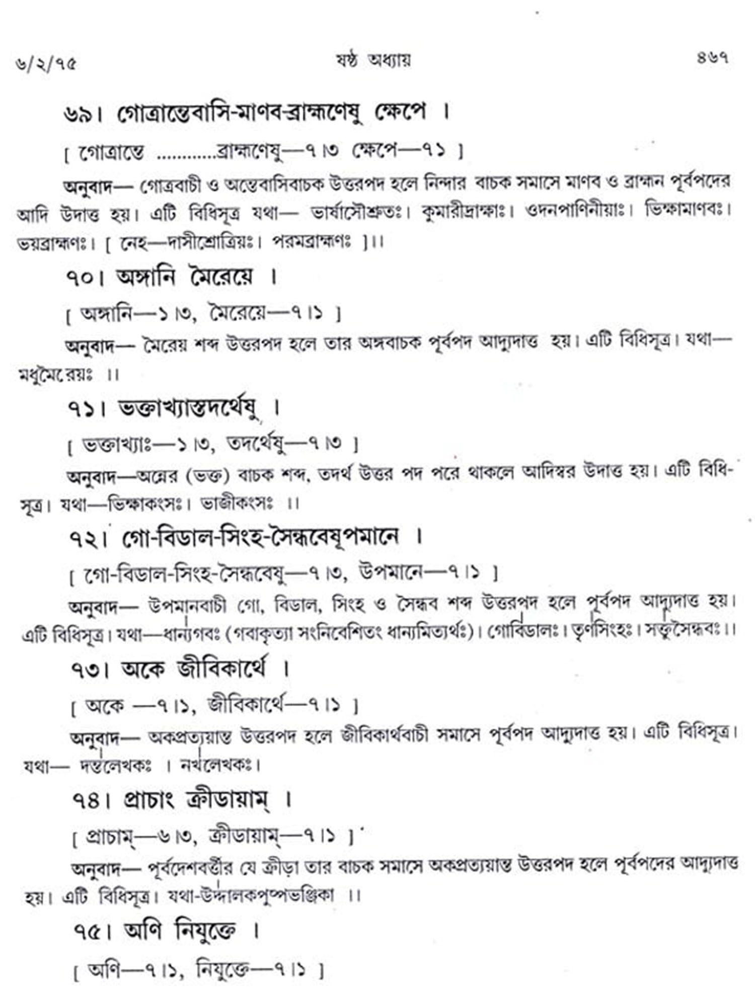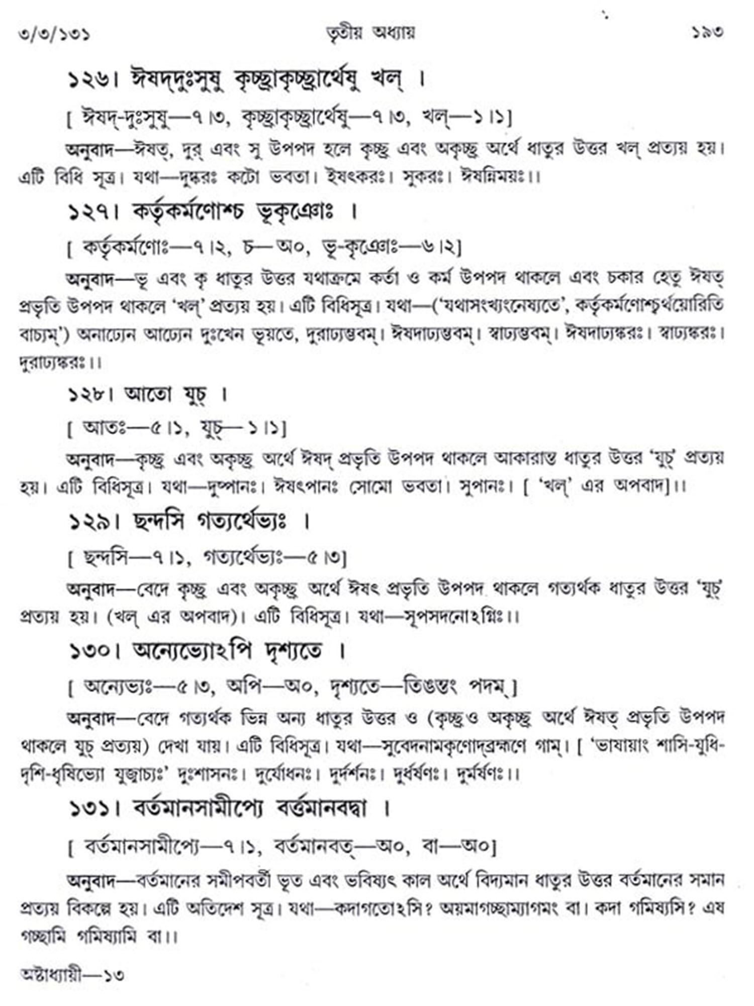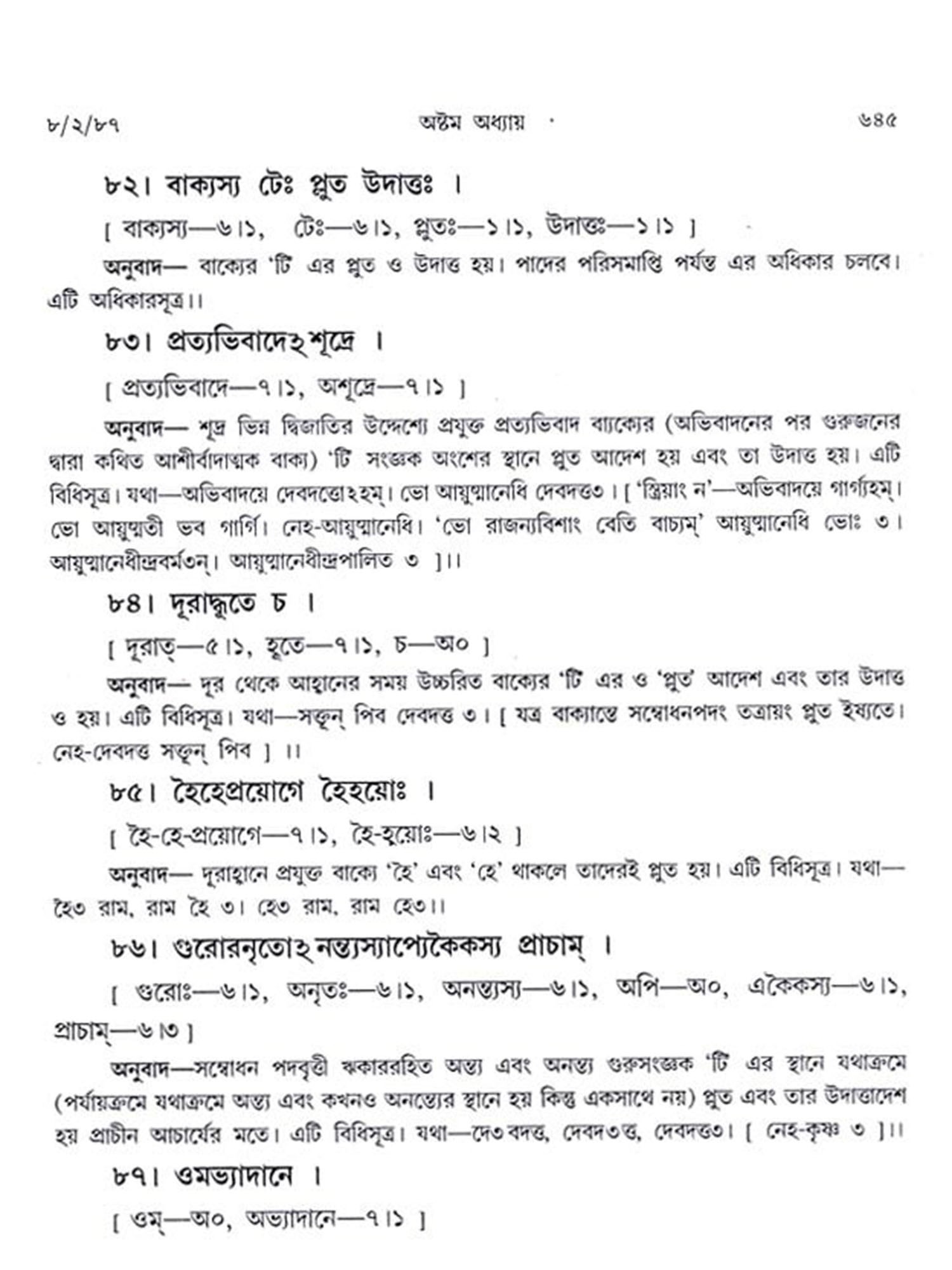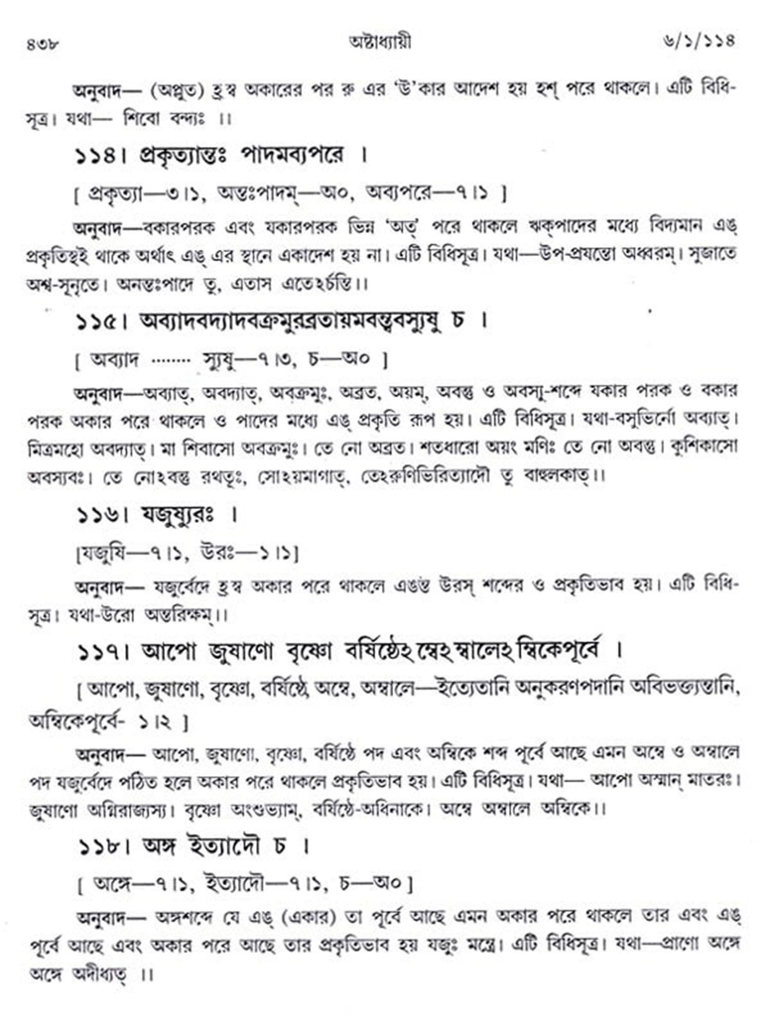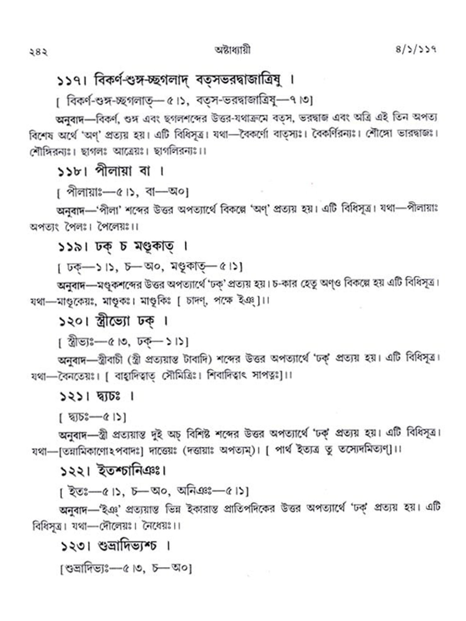 অষ্টাধ্যায়ী: Ashtadhyayi- Panini with Probha or "the Light" (Bengali)