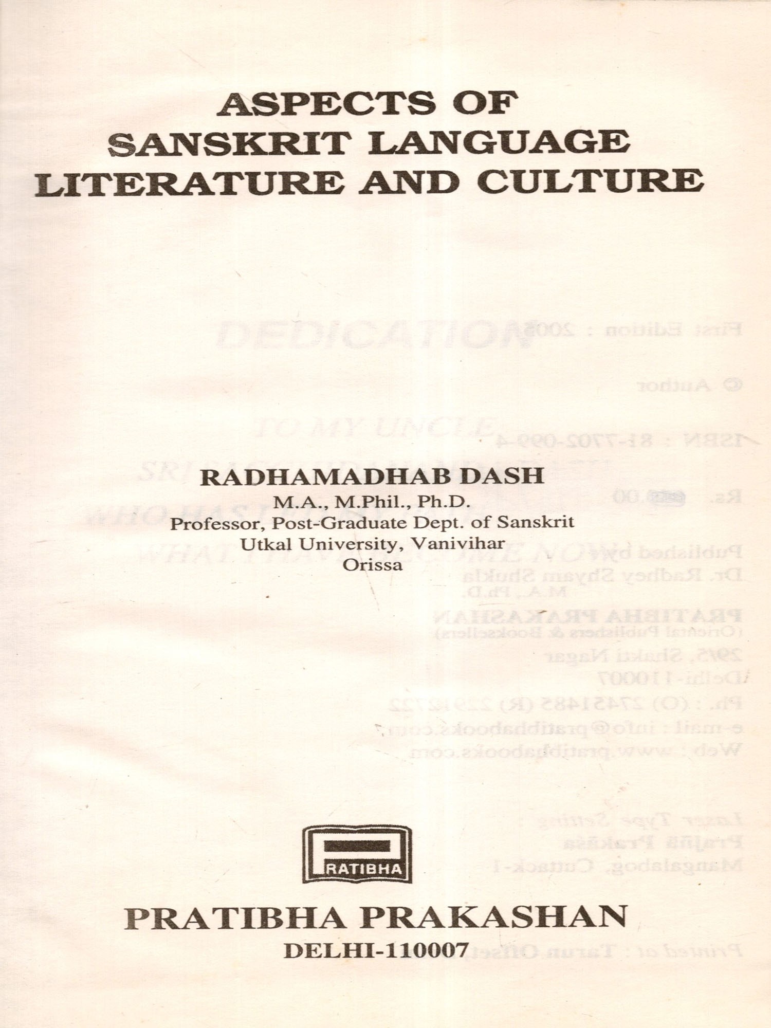 Professor Radhamadhab Dash is an outstanding scholar in Sanskrit. A specialist in Grammar, his scholarship extends to the wider fields of Vedic, Yogic and classical literatures, linguistics and techniques of language teaching as well as to the generalised areas of sociology, ethics, Indology and Indian culture. The present volume which bears the usual stamp of his wide interests is a collection of twenty-one well-chosen research papers presented by him on different occasions at various learned bodies and subsequently published in journals of repute. Theme-wise, they all pertain to important aspects of language, literature and culture fields that are correlated and overlapping. The serial arrangement of the papers under six specified sections spells out the thematic link that holds them together.