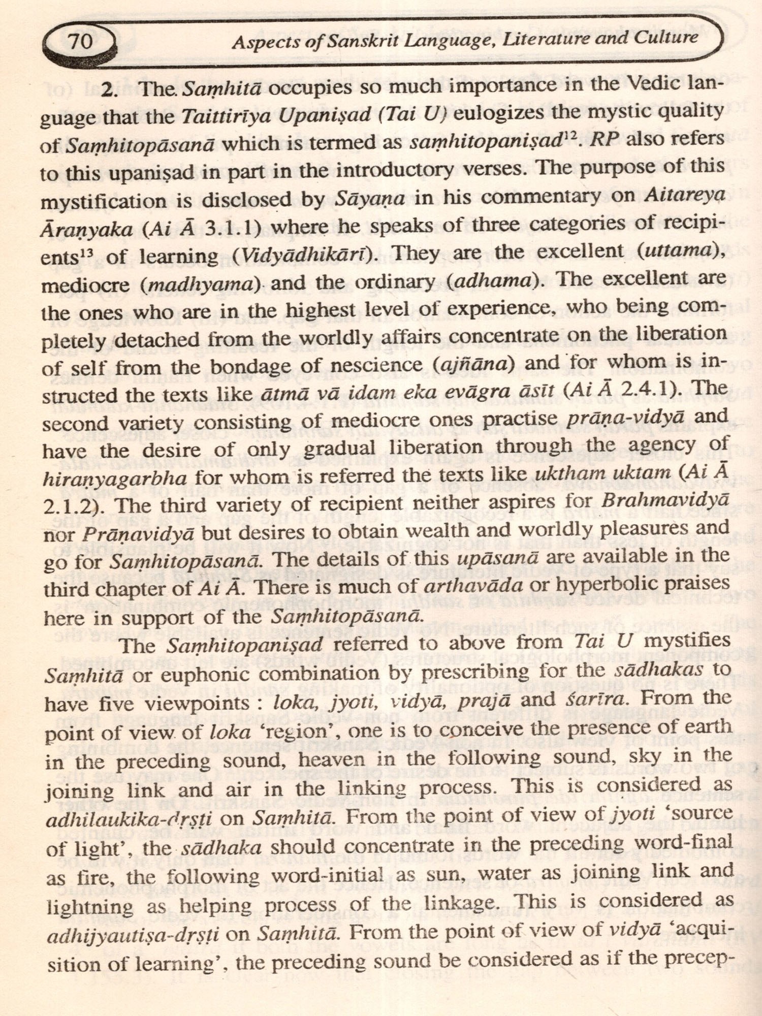 The interdisciplinary approach in the modern literary research is proved to be very useful in discovering and reassessing the essence of the ancient literary creations as in Sanskrit which has successful preserved the ancient heritage of our country. Therefore, my sustaining effort in research writing has always been to find out relevance of Sanskrit in the light of the related modern subjects such as History, Culture; Linguistics in its several branches such as Structural, Comparative, Historical Linguistics as well as Psycholinguistics. Socio-linguistics, Stylistics; Yogic Science and so on. Though all these re-search papers, once presented in seminars and conferences at different times during last twenty-three years, have been published in different journals of repute and some in special research volumes, those periodical and occasional publications hardly reach the scholars for their appreciation due to the obvious limitation of their circulation. Therefore, I thought it befitting to bring out a volume containing twenty-one chosen papers from among them with the title Aspects of Sanskrit Language, Literature and Culture as suited to the contentional orientation of all of them. The papers are classified un-der the following thematic sections though at times themes overlap among themselves. They are (I) Śrauta and Smärta Tradition, (II) Essay on Classical Poetry, (III) Systematics of Sanskrit Grammar, (IV) Language Components and their Socio-cultural Settings, (V) Systems of Sanskrit Grammar: Comparative Approach, and (VI) Essence of Sanskrit Expressions and Teaching Techniques of Sanskrit.