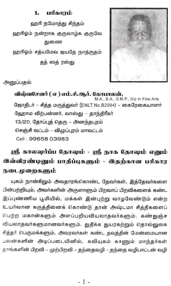 சோதிட வினாவிடை- A Catechism in Astrology (Tamil)