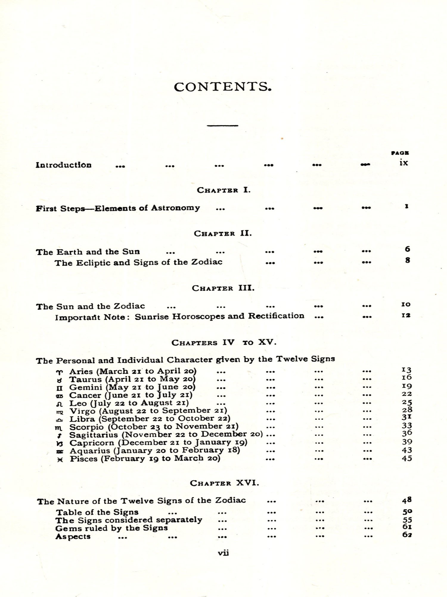 Reason, thought, and experience, constitute the basis upon which the system adopted in this work is built. The ripened fruit of many years' toil and practice is here offered to those who are sufficiently thirsty for the knowledge that Astrology brings to mankind, the main object of the present publication being to satisfy the demand made by growing students for more light.