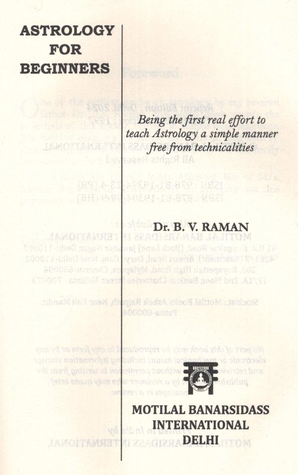 The sale of twenty five editions of a book during the life-time of the author is a somewhat somew rare phenomenon in Indian conditions. This bears testimony to the large demand the books on Astrology have when the subject is presented clearly in an easy and intelligible language by experts in the line.