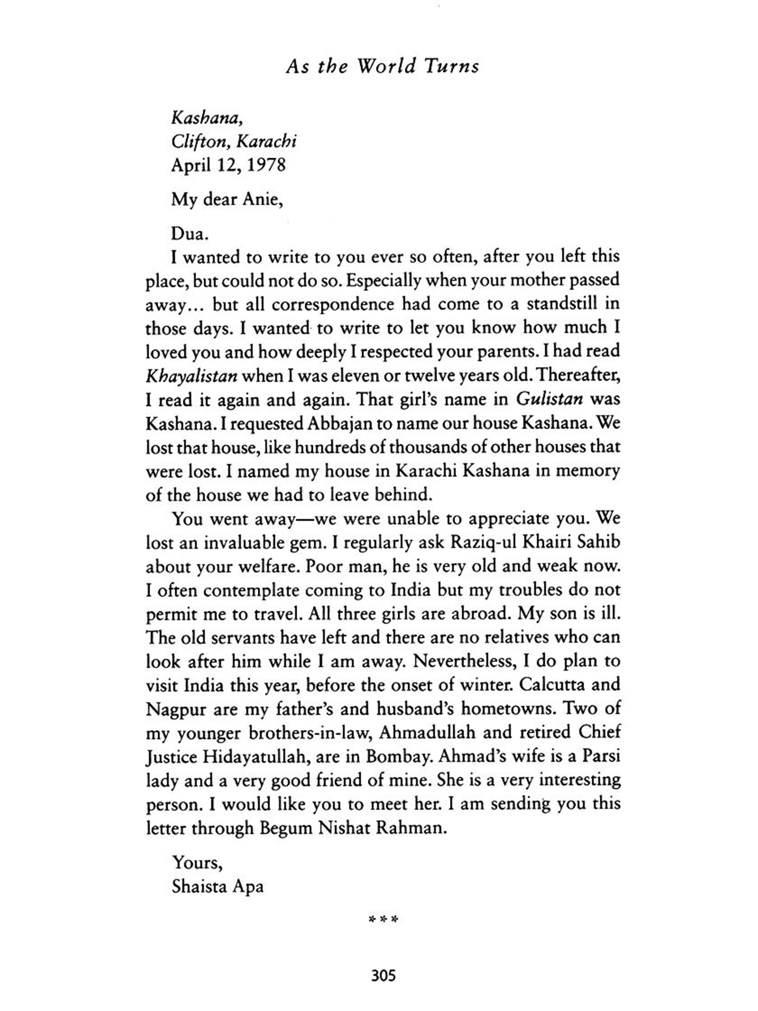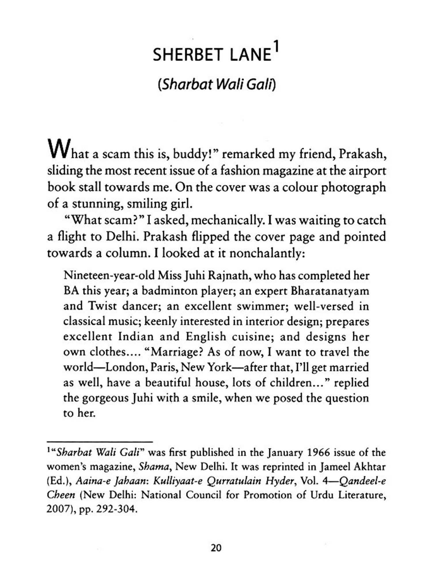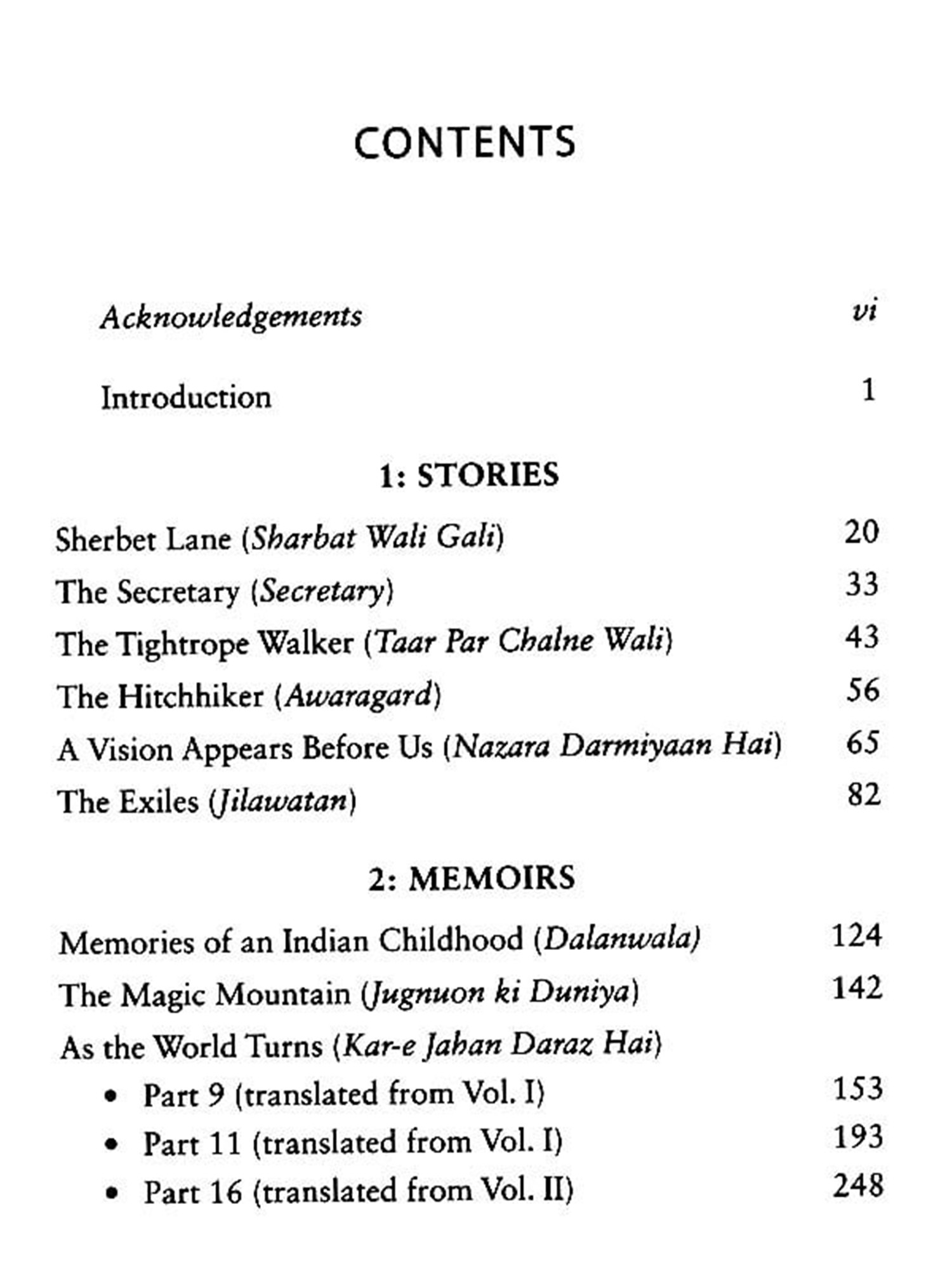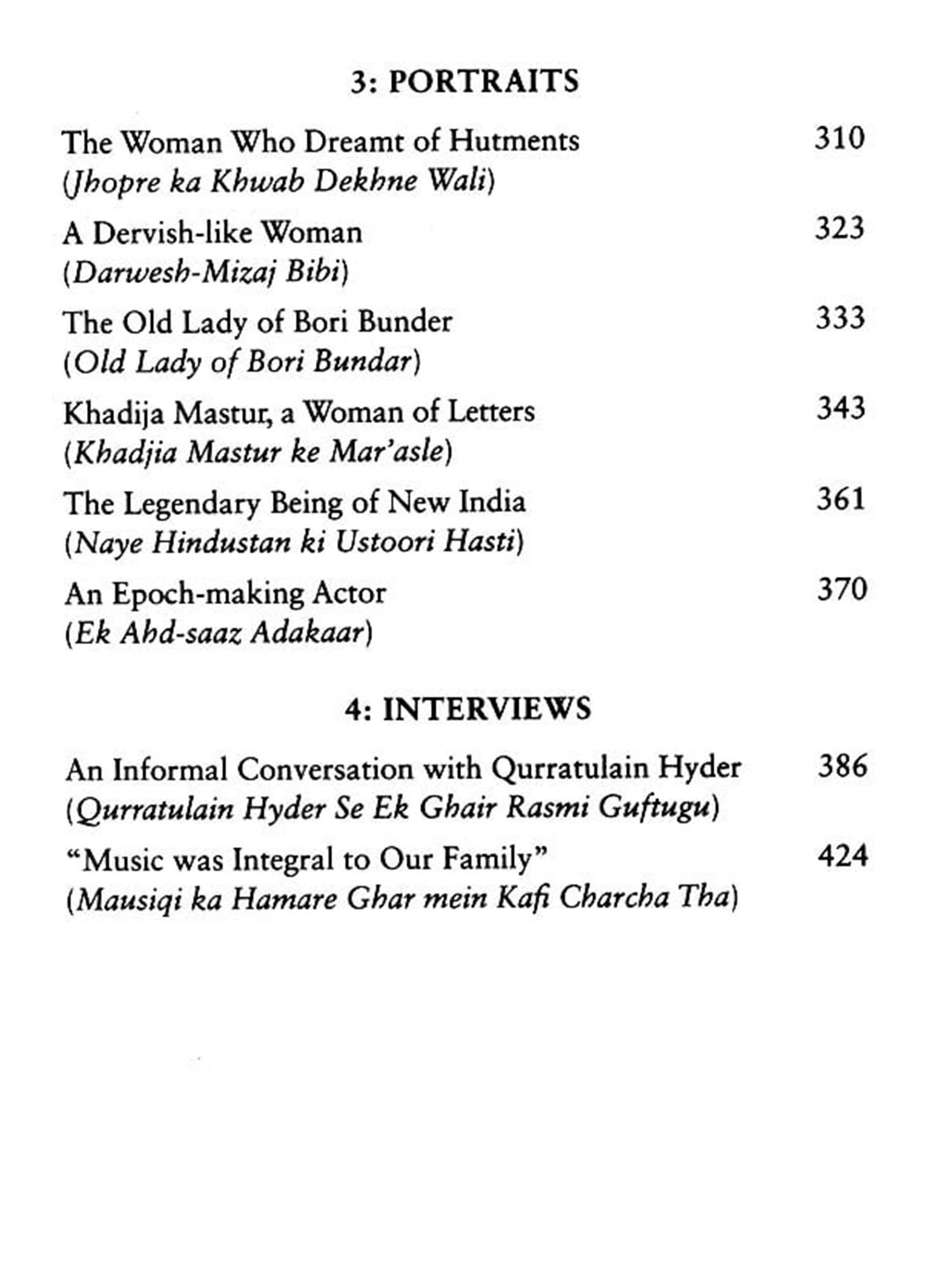 In addition, this book offers newly translated short stories; charming sketches of prominent women, like Hyder's writer-mentors, Rashid Jahan and Anis Kidwai, and the film icon, Nargis; as well as rare, candid conversations with the author, on literature and life.