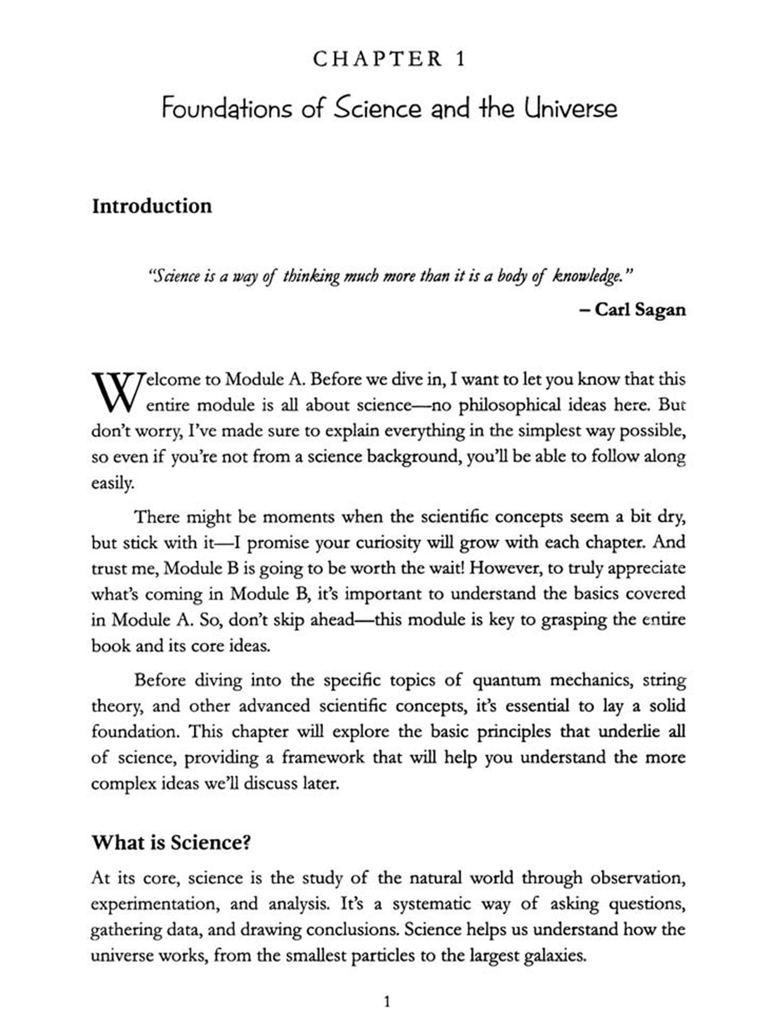 Welcome to an exploration that lies at the intersection of science, W consciousness, and the very nature of reality. This book is not just a presentation of facts, theories, or philosophies; it's a guide to understanding the deeper connections that bind the universe together. Whether you come from a scientific background or are simply curious about the mysteries of existence, this journey is for you.