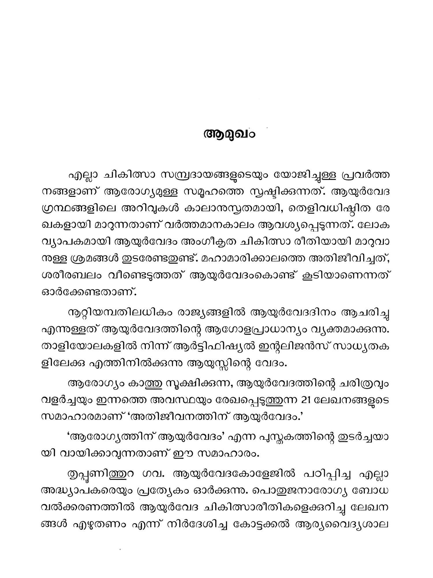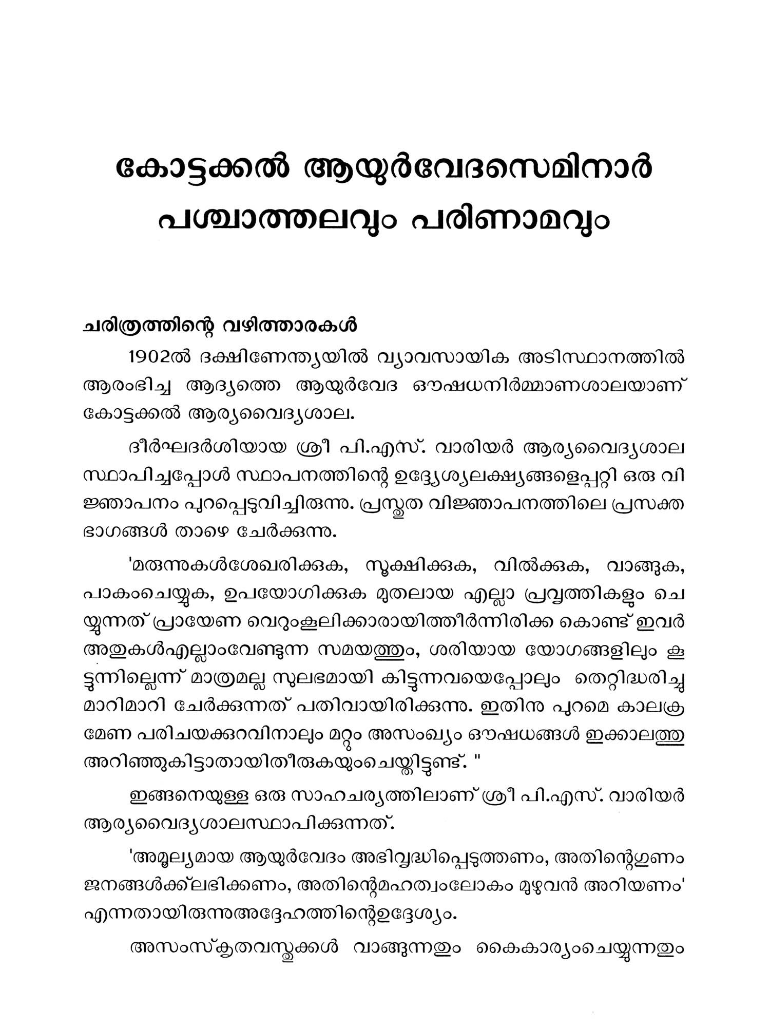 ആയുർവ്വേദത്തിന്റെ പ്രഥമപാഠങ്ങൾ അഷ്ടാംഗഹൃദയത്തിൻ്റെ 14 അദ്ധ്യായം കൂടിയുള്ള സ്വതന്ത്ര വിവർത്തനം- Ayurvedathinte Prathamapadamgal First Lessons of Ayurveda, which is a translation of 14 chapters of Ashtangahridayam (Malayalam)