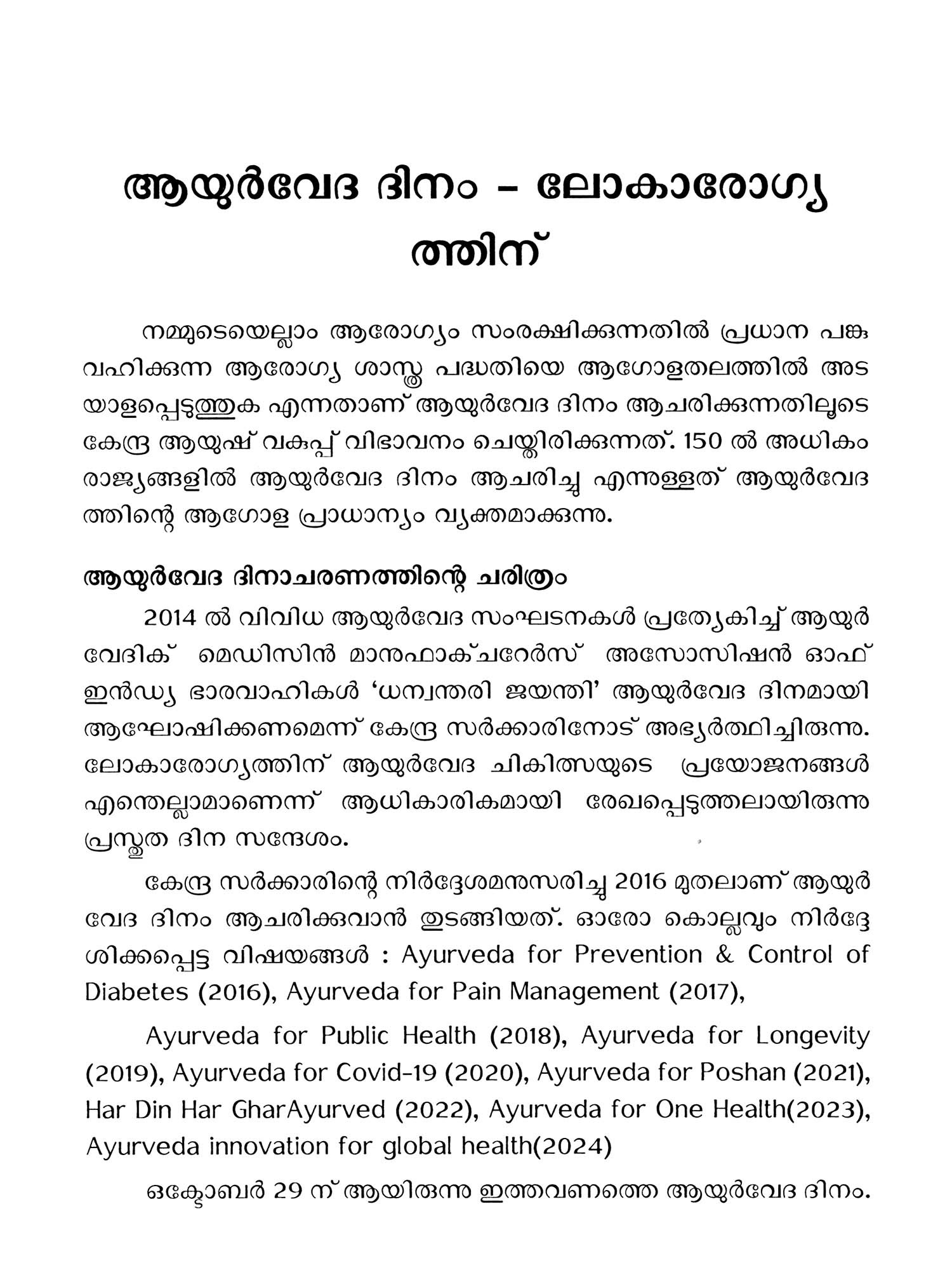 ആയുർവ്വേദ ദിനചര്യ: Ayurvedic Routine (Malayalam)