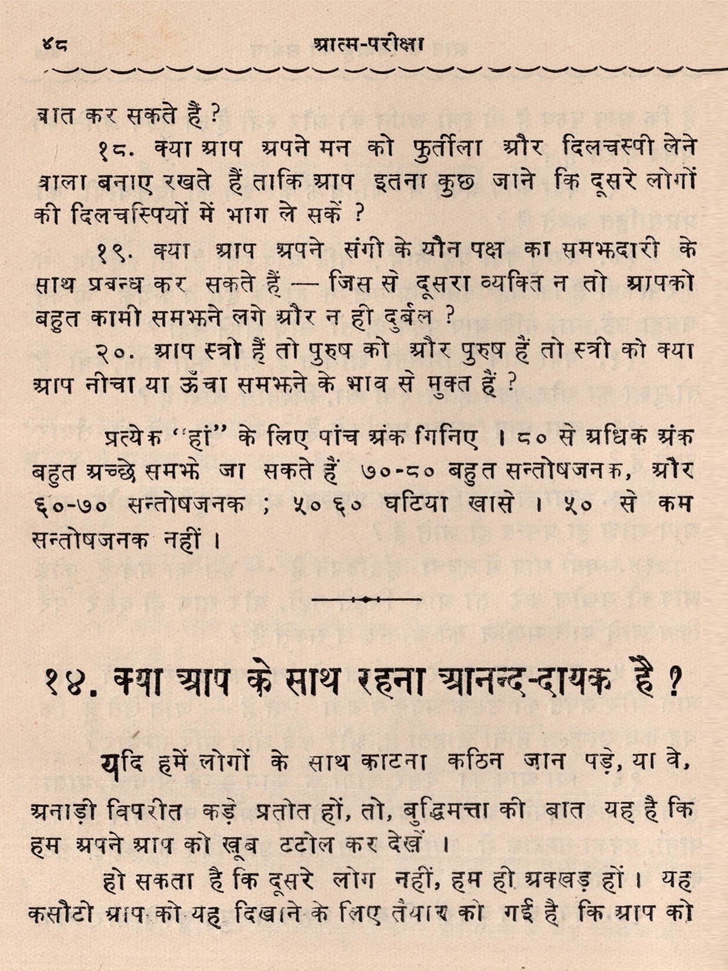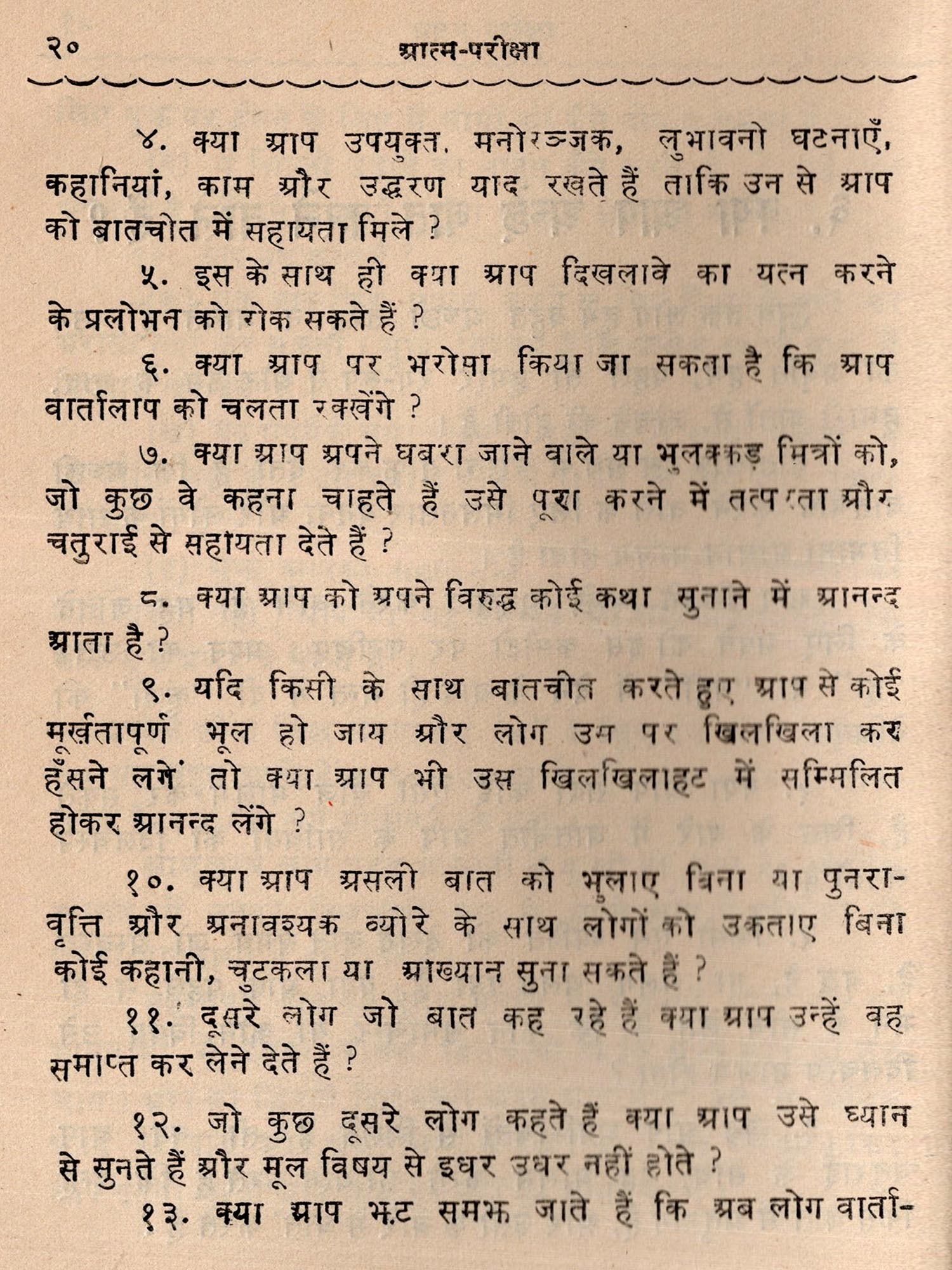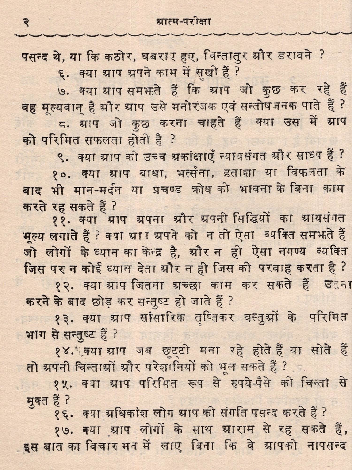 मनुष्य को अपने दोष आप कम दिखाई देते हैं परन्तु निष्कपट भाव से की गईं "आत्म-परीक्षा” से मनुष्य को अपने दोषों एवं त्रुटियों का बहुत कुछ ज्ञान हो जाता है। तब वह उन्हें दूर करने का यत्न भी कर सकता है। इस दृष्टि से यह पुस्तिका जिज्ञासु जनों के लिए बड़ी उपयोगी सिद्ध हो सकती है। मेरी इस बात पर विश्वास करने के पूर्व वे इस के दो एक प्रकरण पढ़ कर देखें। मुझे निश्चय है, वे इसे सागर को गागर में बंद किया पायेंगे ।