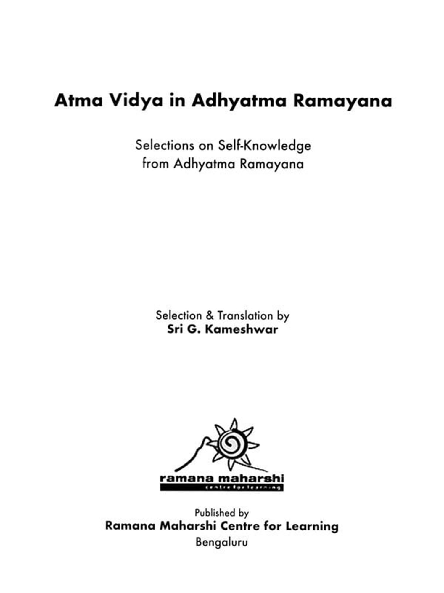 Atma Vidya in Adhyatma Ramayana: Selections on Self-Knowledge from Adhyatma Ramayana