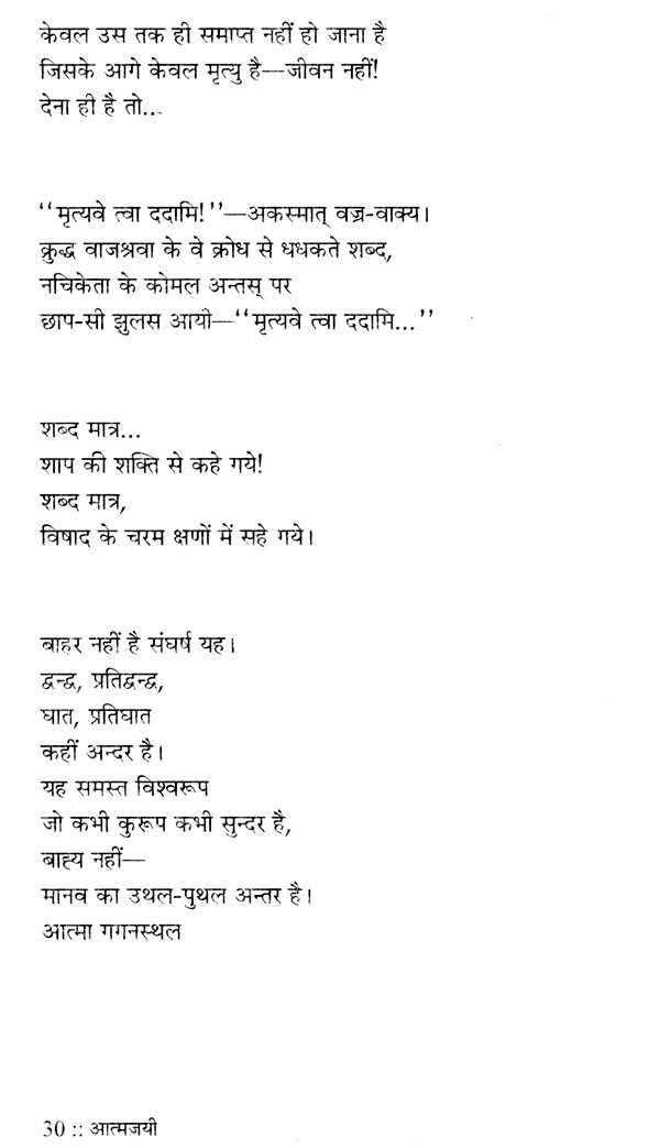 यह आत्महत्या का बिन्दु, जिस तक नचिकेता पहुँचता है, मुझे अत्यन्त महत्त्वपूर्ण लगा- प्राचीन तथा आधुनिक दोनों ही सन्दर्भों में।