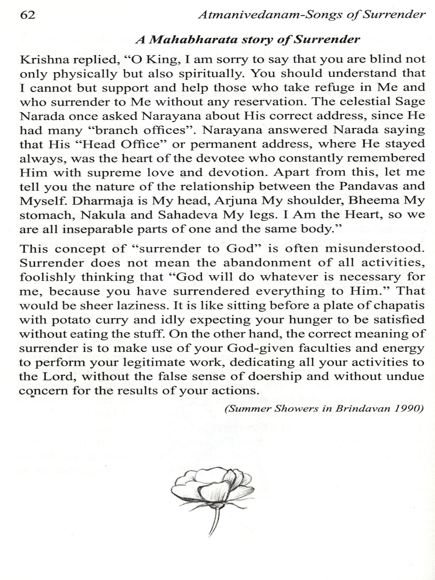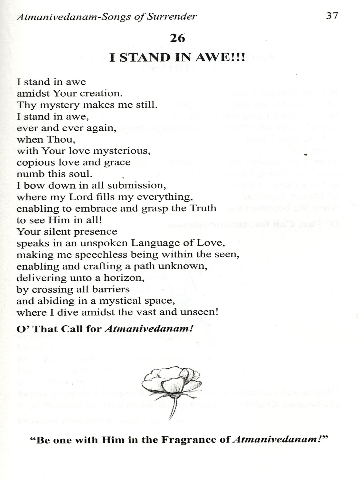 Atmanivedanam is a Flower of Love which is offered at His Lotus Feet with humble gratitude as a Song of Surrender.