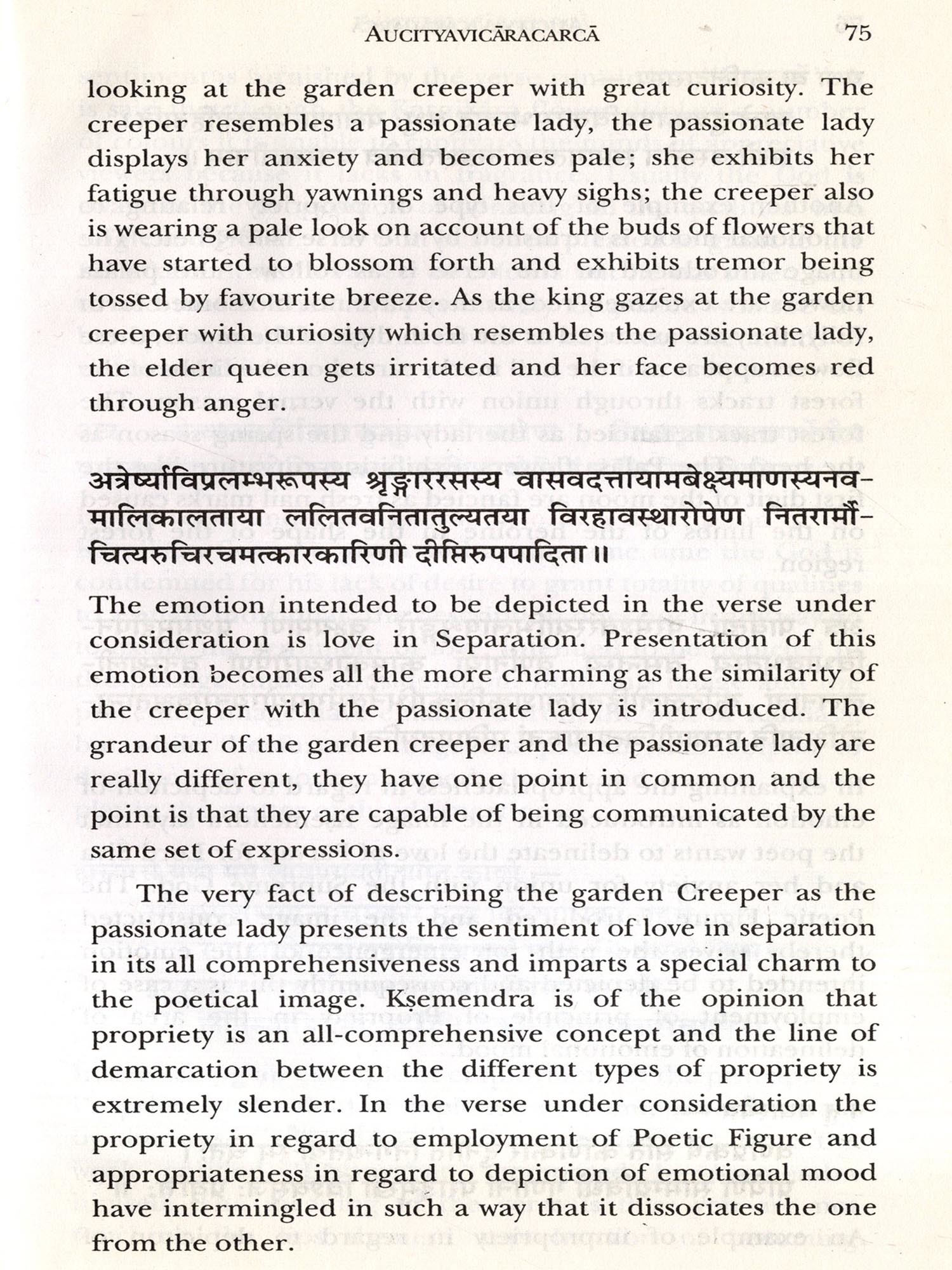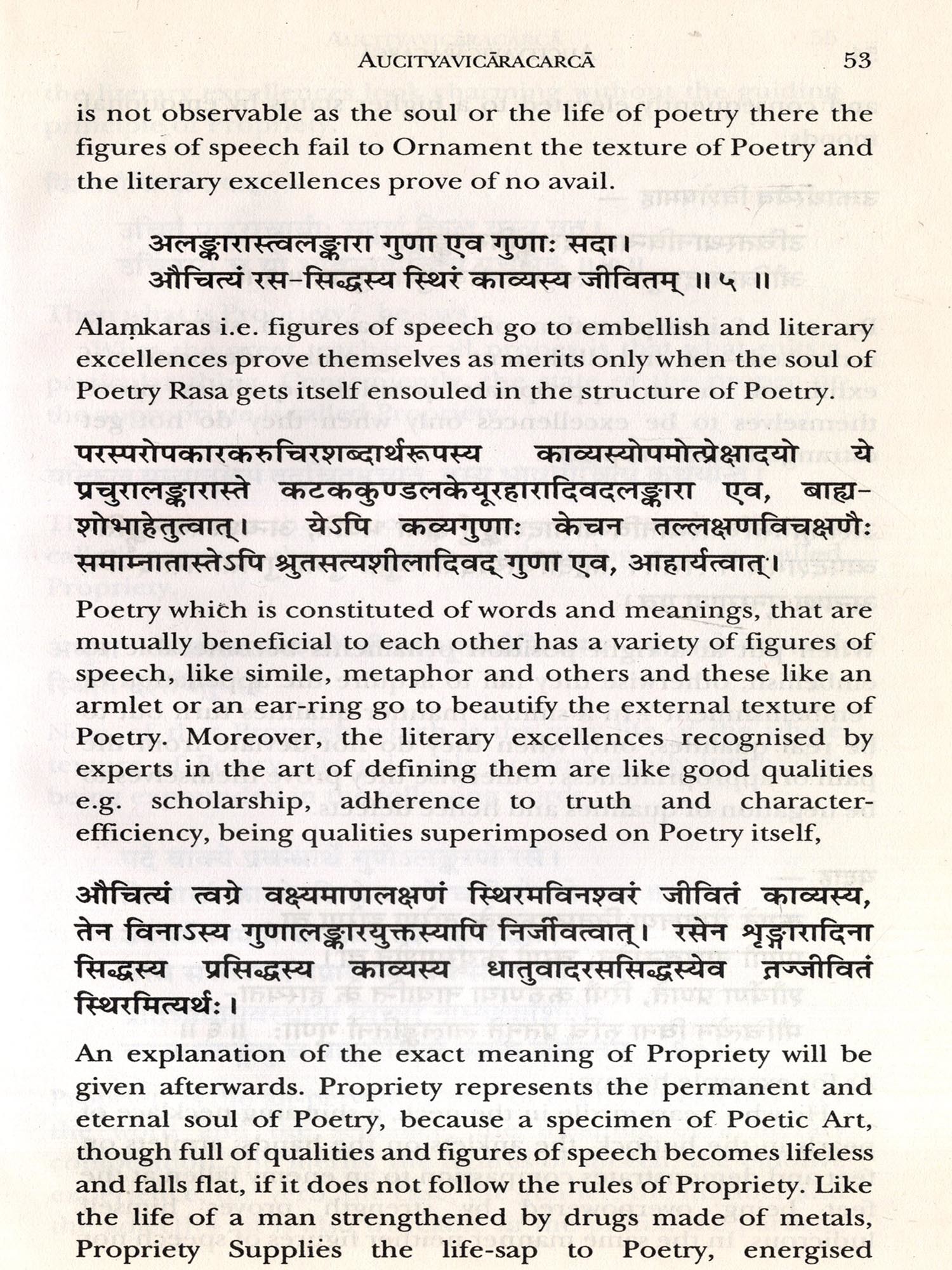 Though Natyasastra of Bharata is regarded as the starting point of the speculations of Sanskrit Poetics it is not that the Indian mind was ignorant of the literary embellishments in the earlier period; rather many of the observations contained in the Vedic literature as also in the Nirukta indicate that not only literary embellishments were known to the Indian mind, but the art of structuring poetical images was also known to them. In a verse contained in the Rig Veda (X. 71.2), the Vedic seer speaks of the necessity of selecting suitable expressions for composition of Poetry and emphatically says that just as grains are to be separated from the chaff by a winnowing machine or a winnowing-plate, similarly chiselled expressions are to be sorted out from ordinary words through application of the poetic intellect, so that the poetic structure can be properly constructed. In another verse (X.71.4), the Rig Vedic seer says that, the inner content of Poetry does not reveal itself to all persons. It is said that some persons though seeing it does not listen to it, -some others though listening to it does not understand it; and yet some one, who though understanding the external sense fail to penetrate deep into the inner content.
