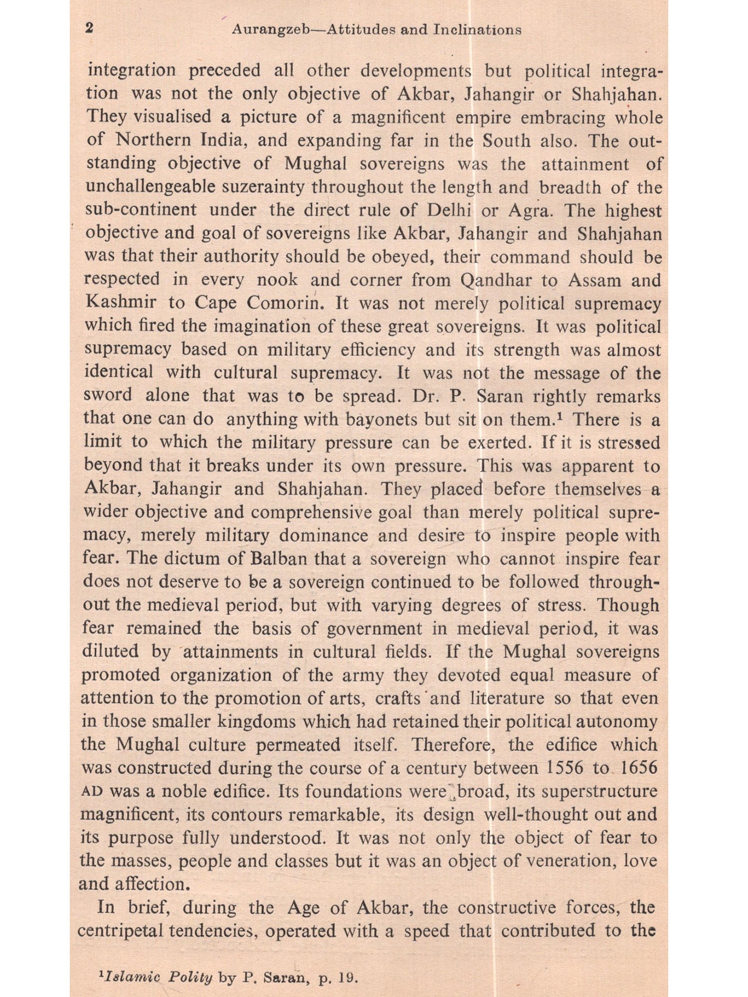 The last of the Great Mughals, Aurangzeb, has been a much misunderstood person. Having climbed the throne after incarcerating his father and annihilating his brothers he presents the picture of a dry, stilted, suspicious, ruthless fanatic. Passions have been roused by his seeming religious bigotry. Debate has long raged as to whether he was a fanatic out to suppress Hindus or a just man trying to run the Empire by putting a stop to centrifugal tendencies which had become rampant. Was he, like any other great predecessor of his, trying to expand and consolidate his Empire? It has generated a great deal of heat and controversy. What, however, we are apt to forget is that, like any other human being. Aurangzeb too was a creature of his environment and upbringing. To understand a man it is necessary to understand his background and his immediate present-how has he learnt to react to any given situation in his childhood and youth and what legacy he has inherited. Granted that Aurangzeb's was a very complex character, yet we can unravel much about his actions, if we carefully analyse the moulding factors in his life. This is what this book is about-in a modest way.