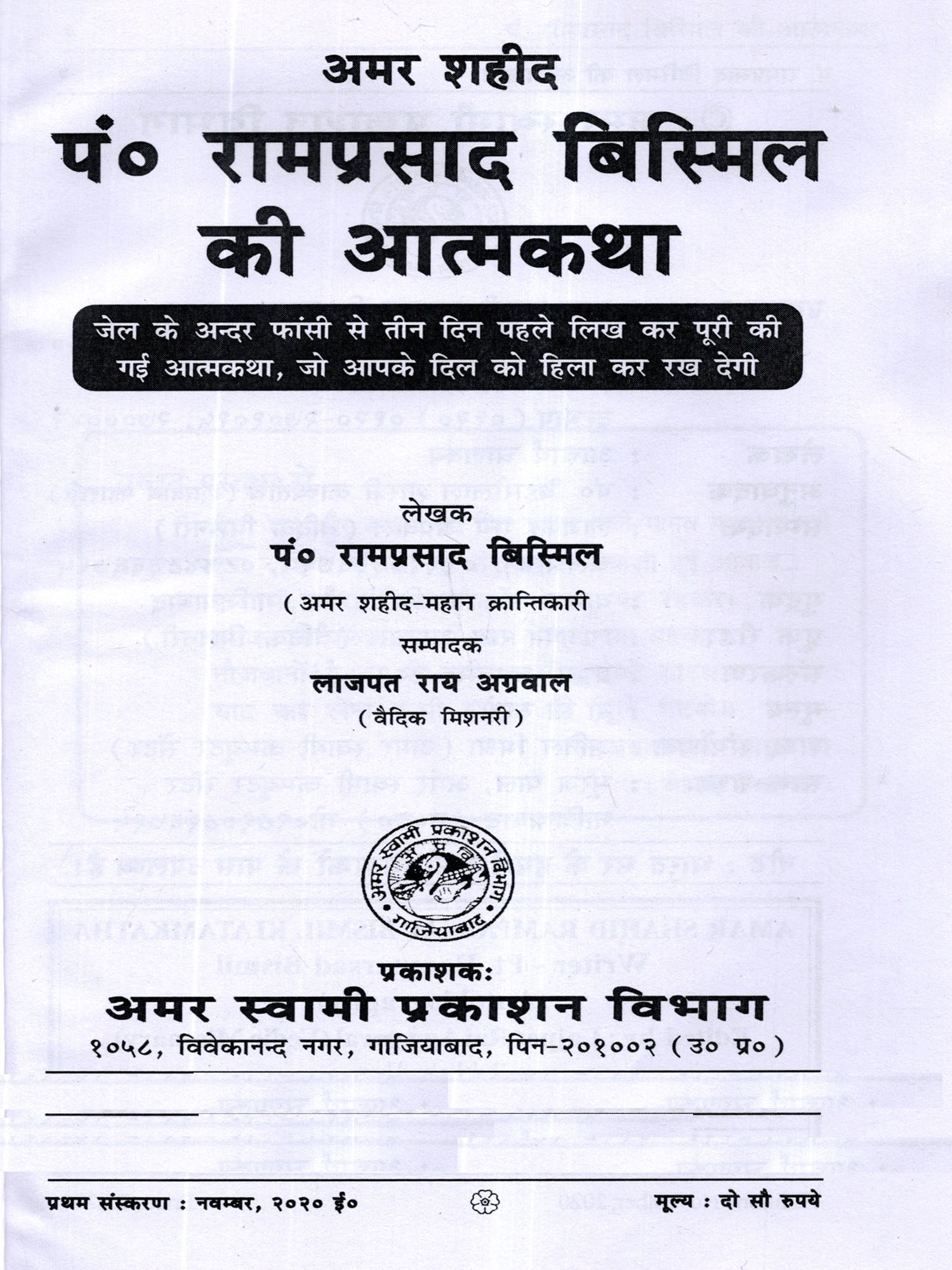 शहीद प० रामप्रसाद बिस्मिल की आत्मकथा: Autobiography of Martyr Pt. Ramprasad Bismil- An Autobiography Written in Prison Three Days Before his Execution will Leave You Heartbroken
