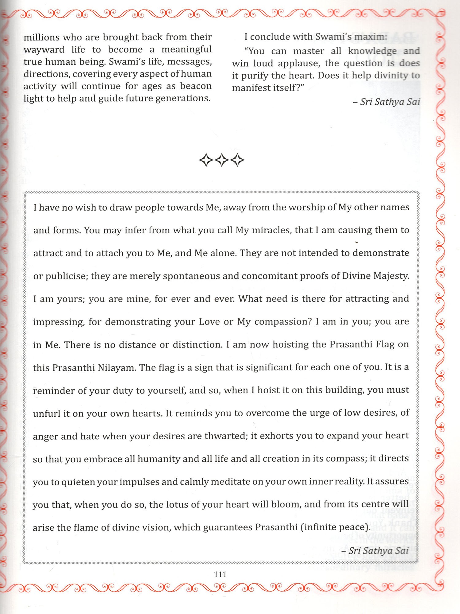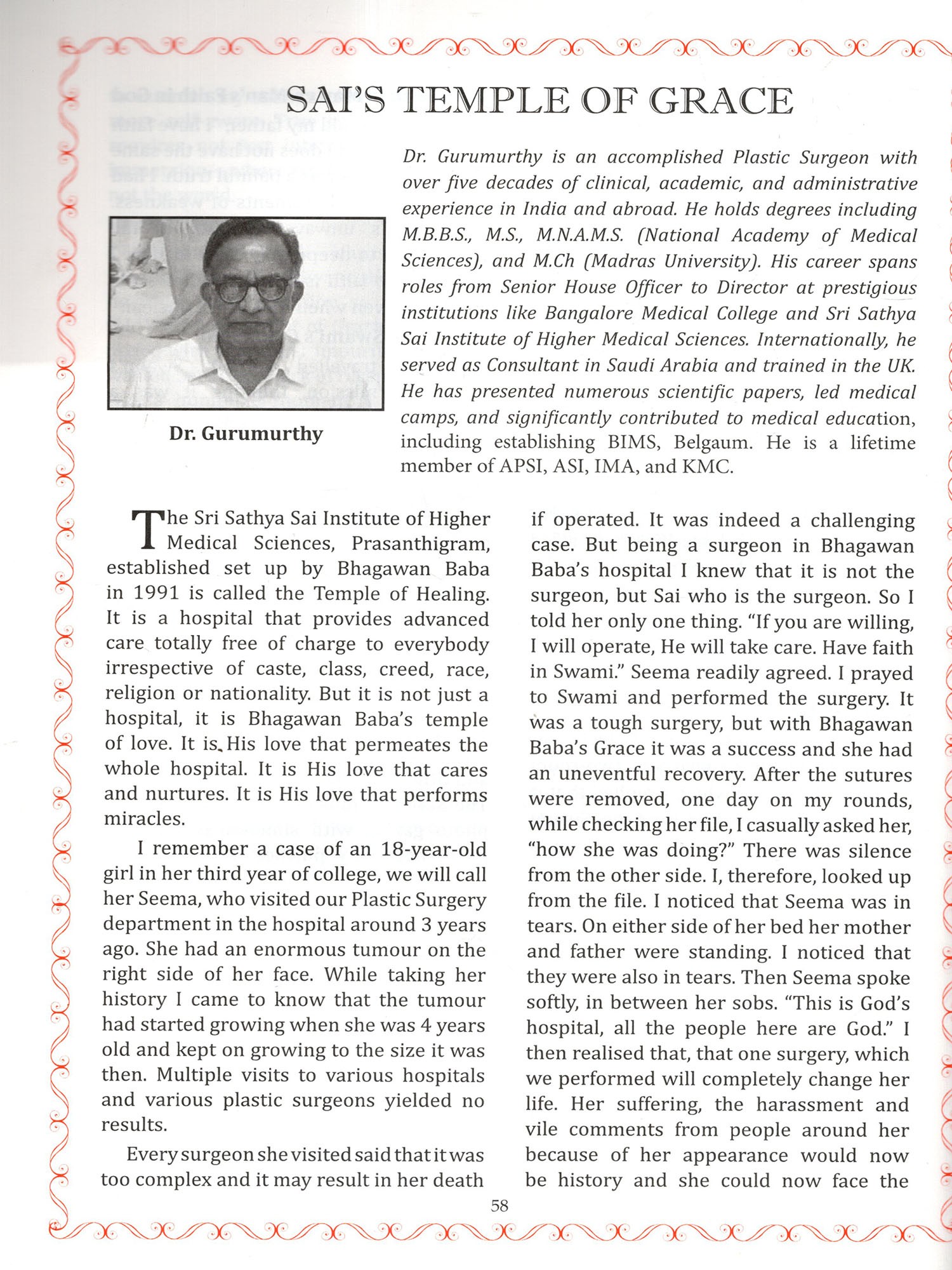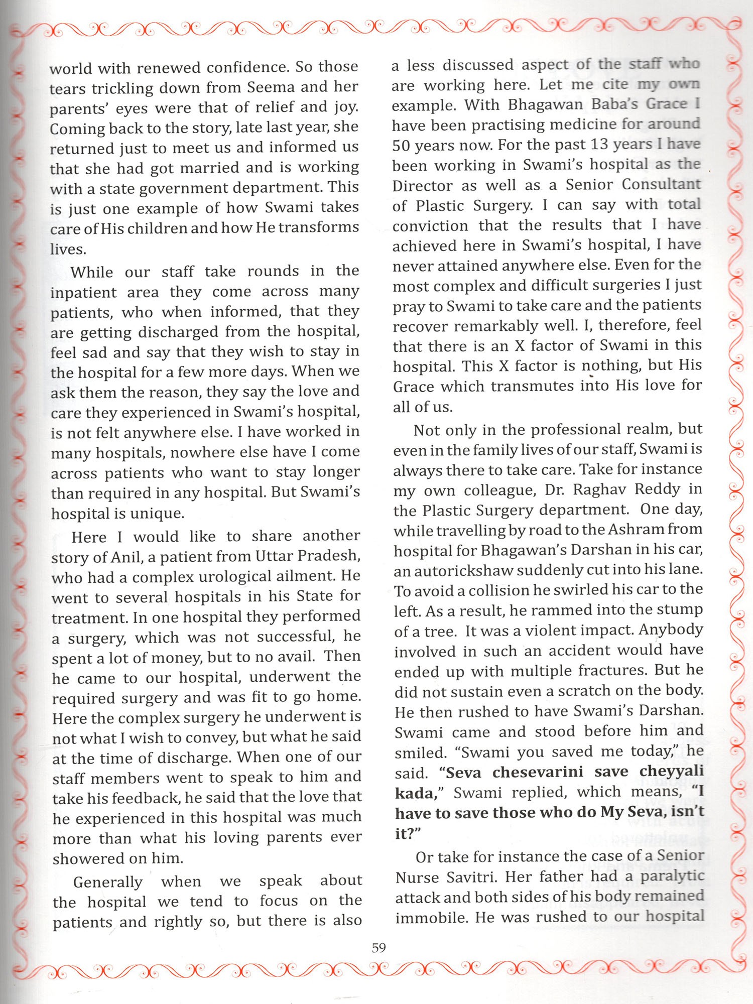 Global Testimonials: Featuring powerful messages from Her Excellency The President of India Smt. Droupadi Murmu, Honourable Prime Minister Sri. Narendra Modi, His Excellency The Governor of Andhra Pradesh Sri. S. Abdul Nazeer, Honourable Chief Minister of Andhra Pradesh, Sri. N. Chandrababu Naidu, Honourable Chief Minister of Telangana Sri. A. Revanth Reddy, and esteemed Religious Heads, alongside articles from former Chief Justice of India, Trustees, veteran politicians, cultural icons and others all sharing the transformative guidance they received directly from Bhagawan.