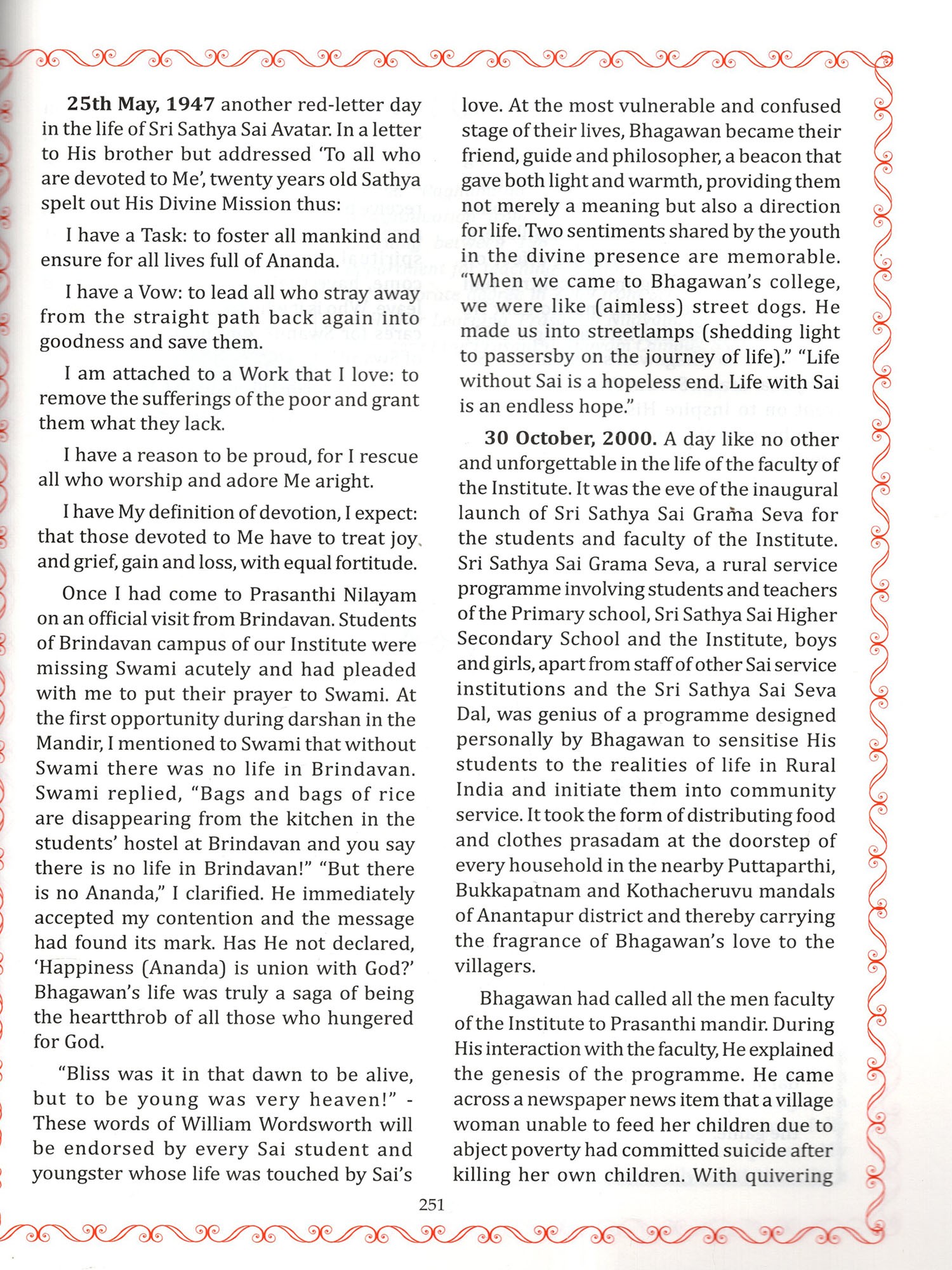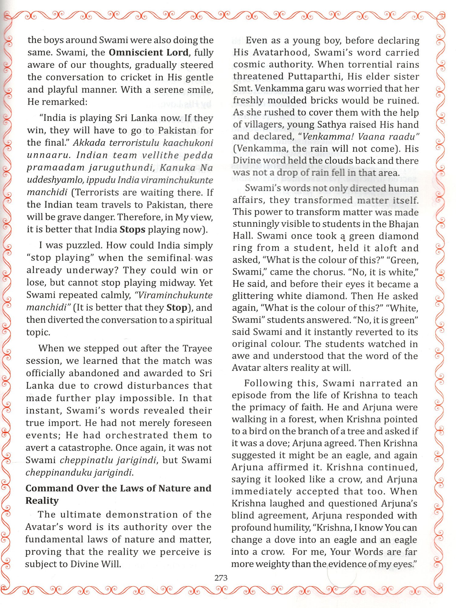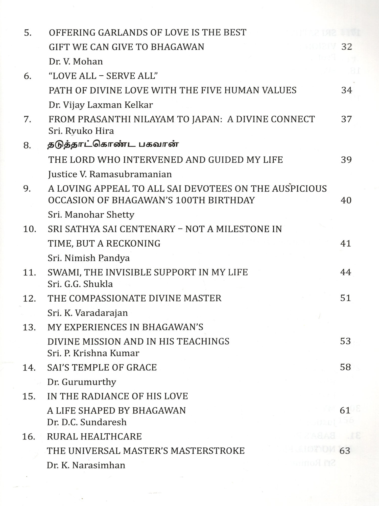 Articles from some of His students and devotees illuminate the beautiful, often unseen, relationship of Love and devotion that forms the heart of "Avatara Vaibhavam."